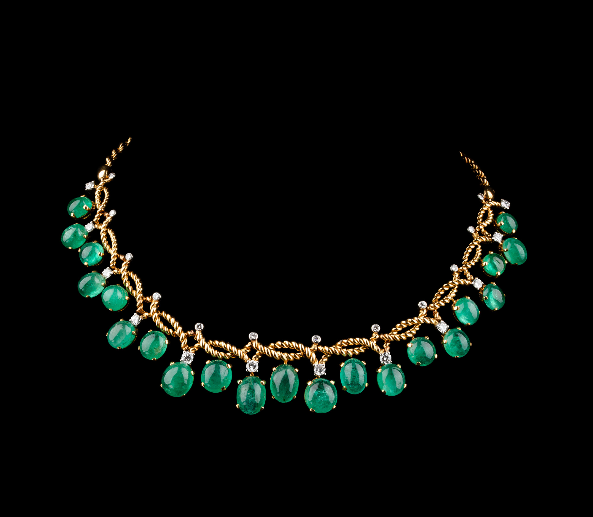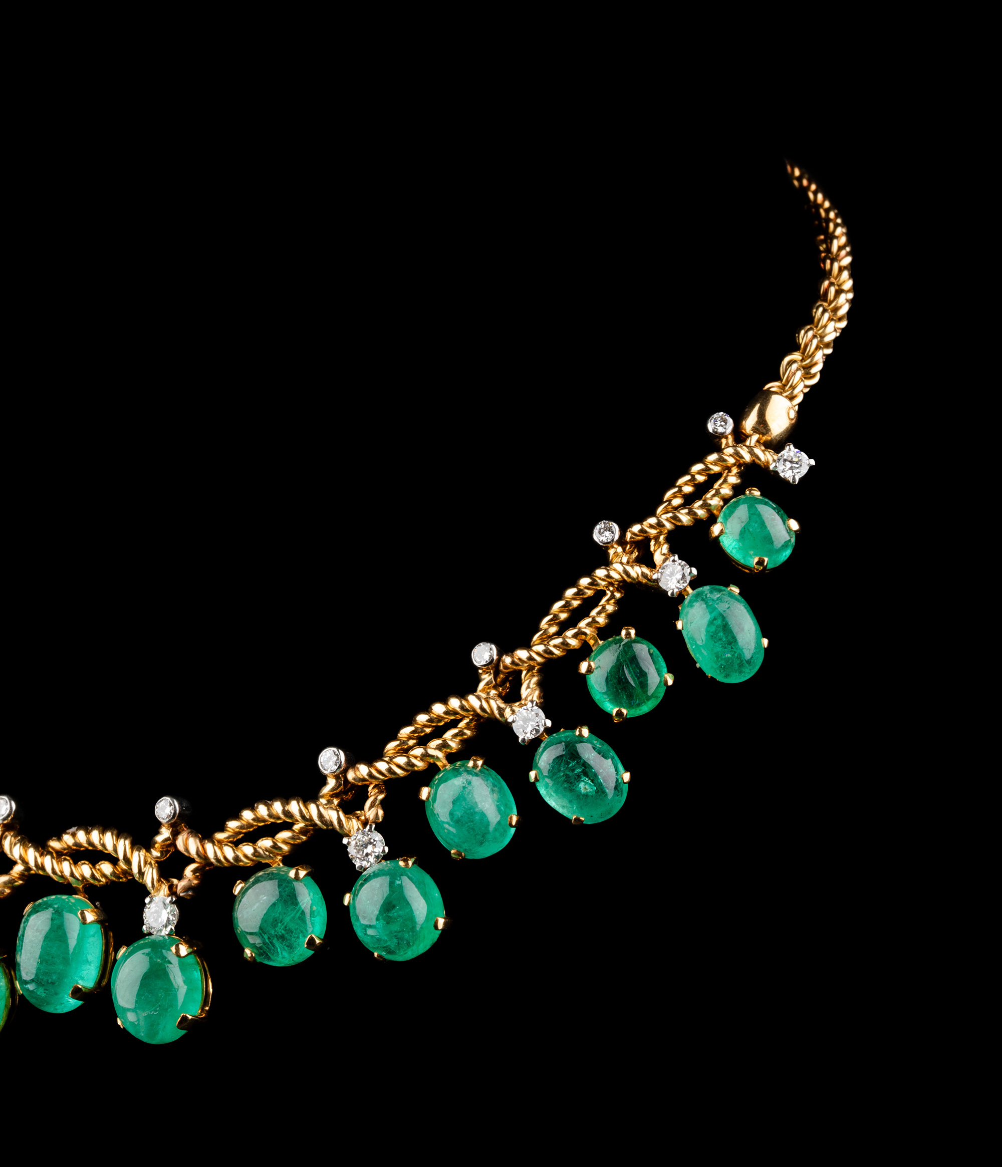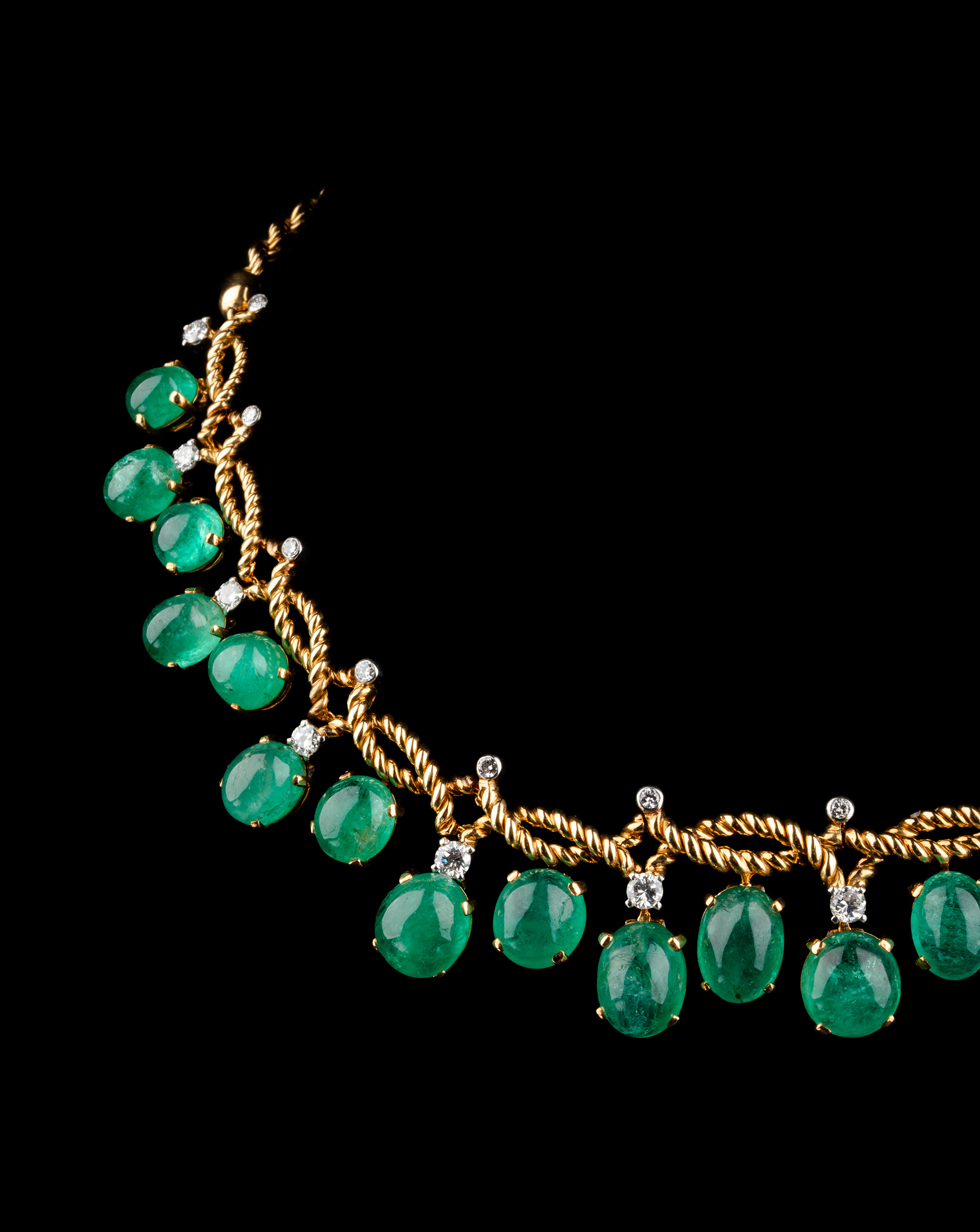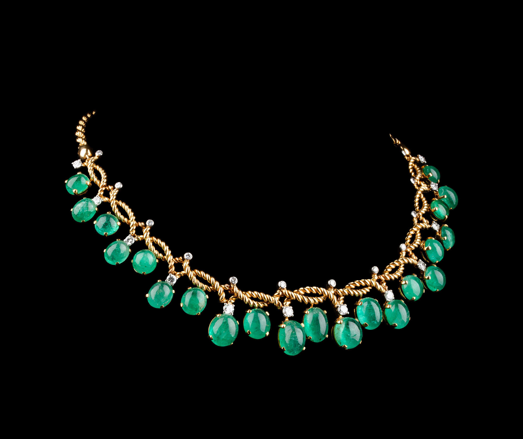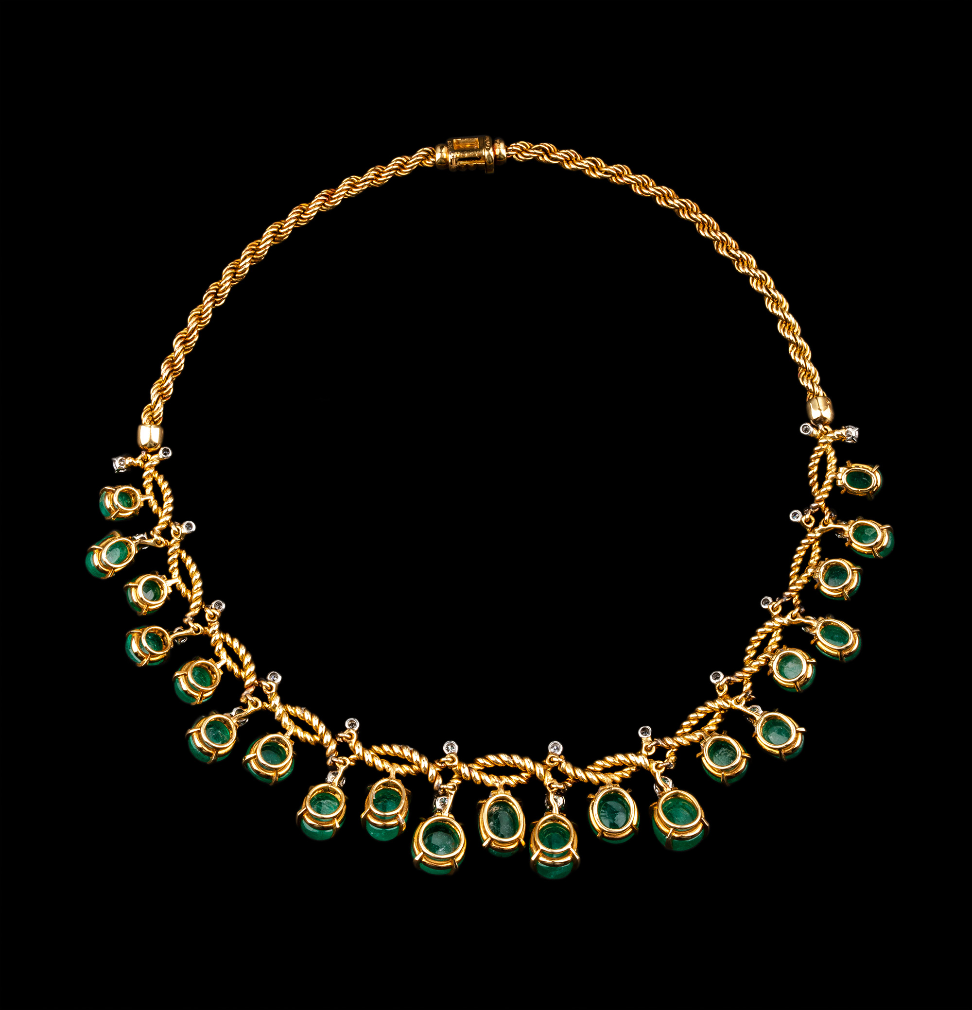 20世纪后期法国顶级珠宝品牌卡地亚出品18K黄金及铂金镶嵌钻石及祖母绿扭绳造型项链