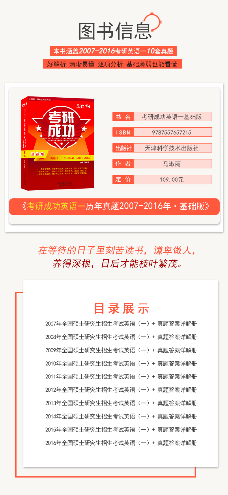2027考研成功英语一历年真题卷基础版2007-2016年10年考研英语一真题详细解析难句剖析