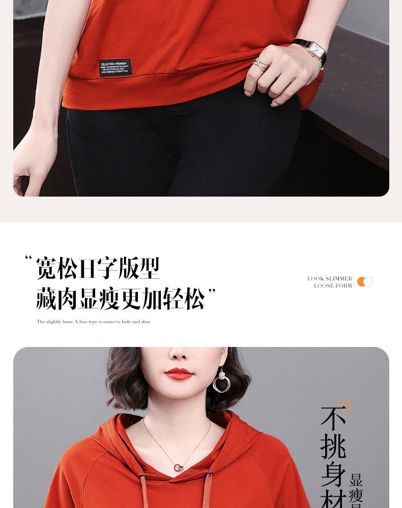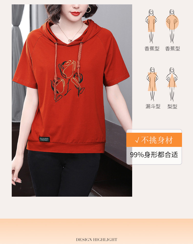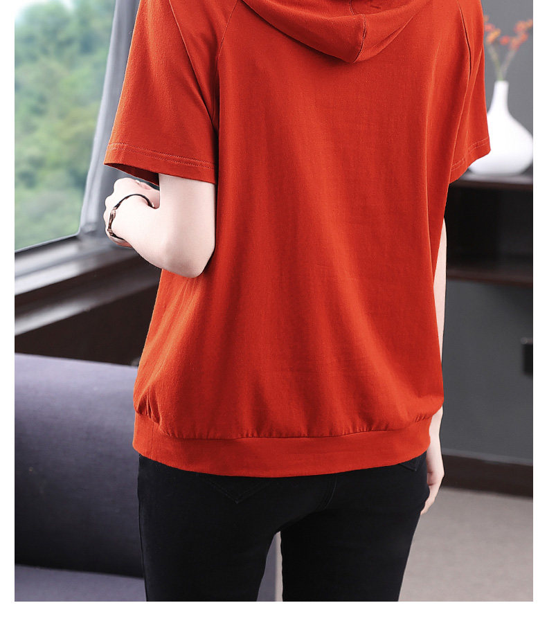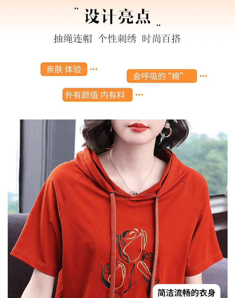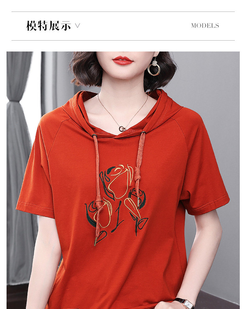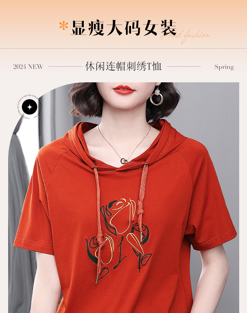 红色连帽短袖t恤女夏季2026年新款大码宽松休闲百搭半袖体恤上衣