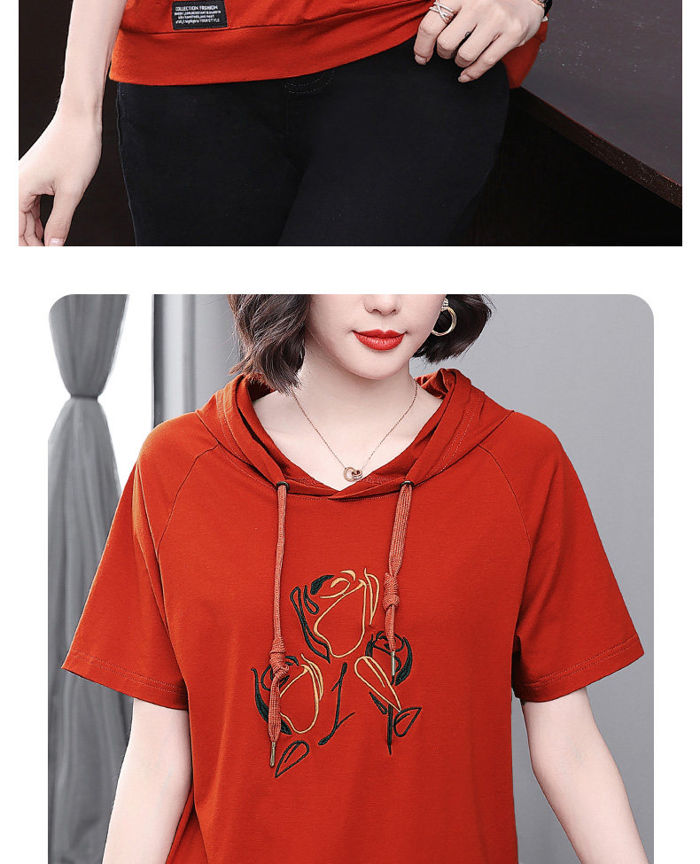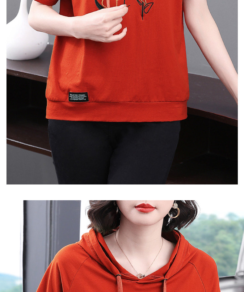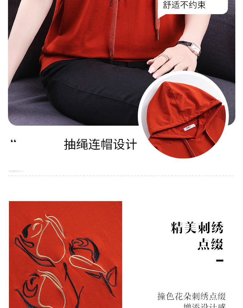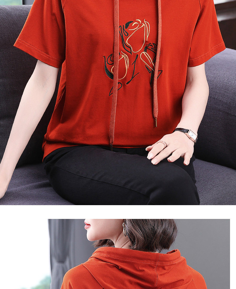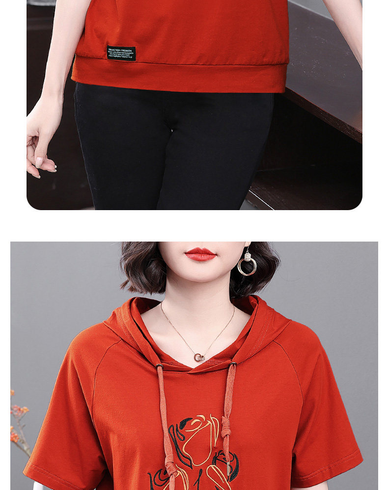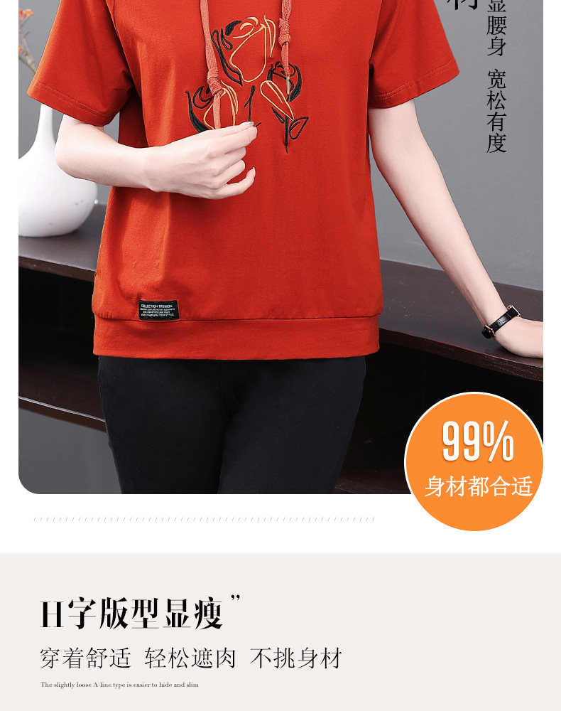 红色连帽短袖t恤女夏季2026年新款大码宽松休闲百搭半袖体恤上衣