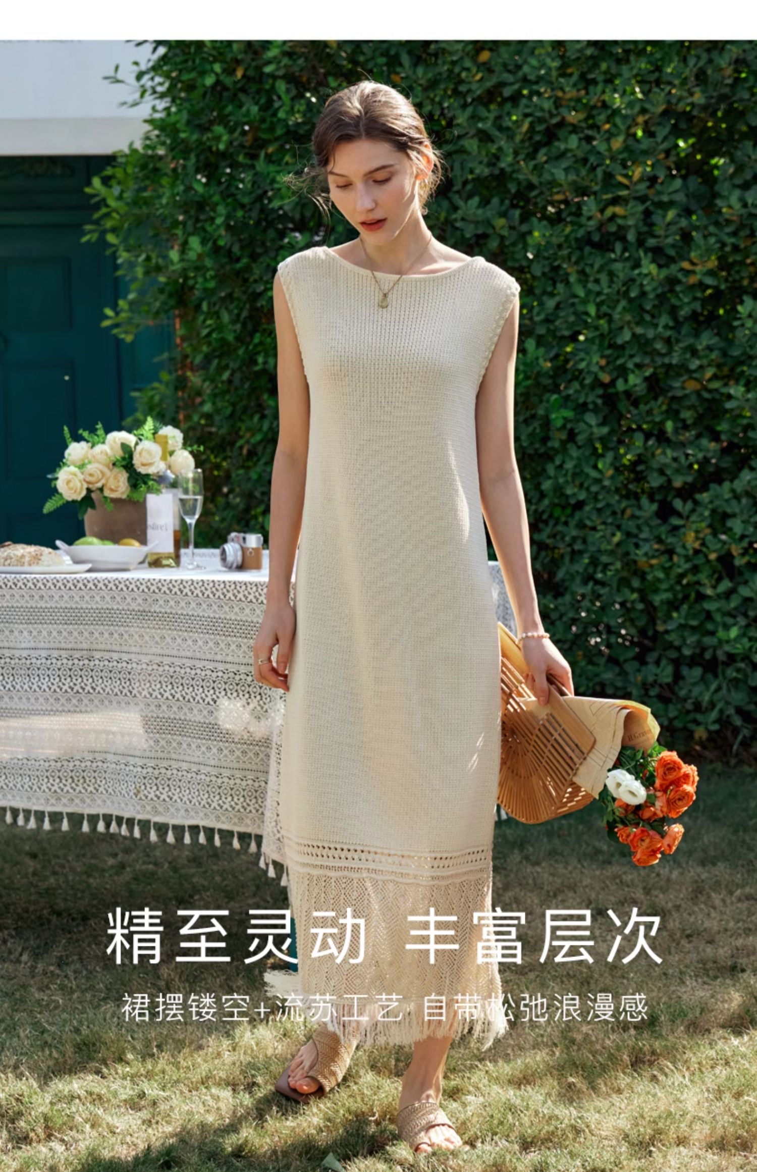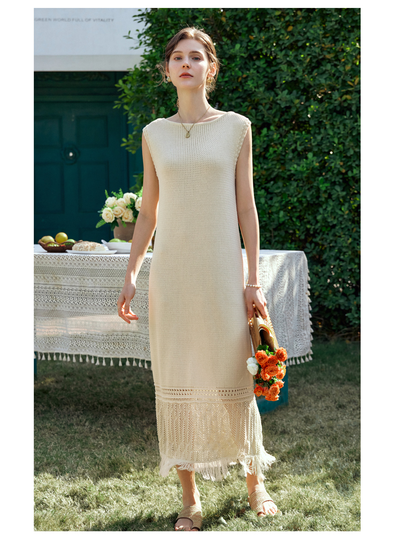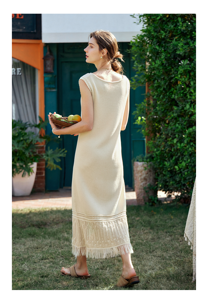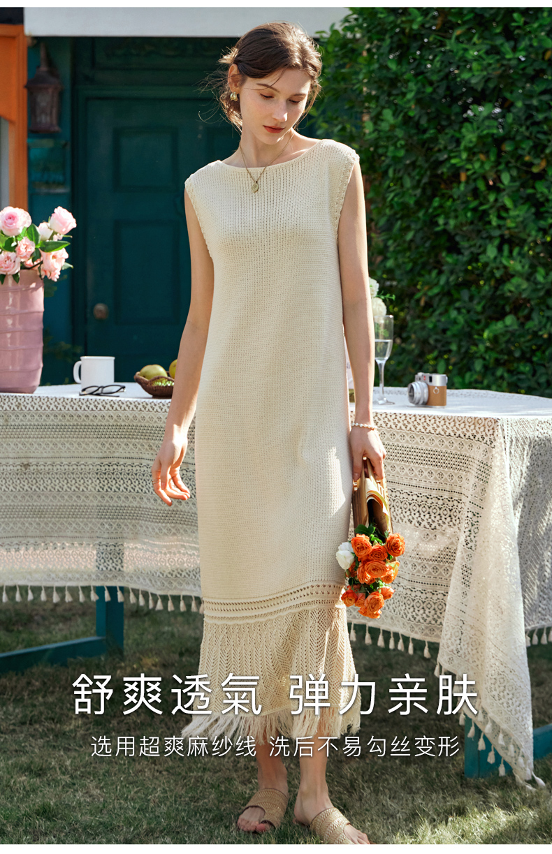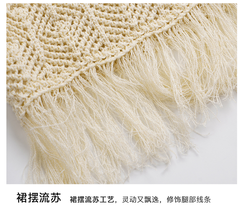 OLrain欧芮儿法式茶歇连衣裙女早春2024年新款镂空流苏无袖A字裙