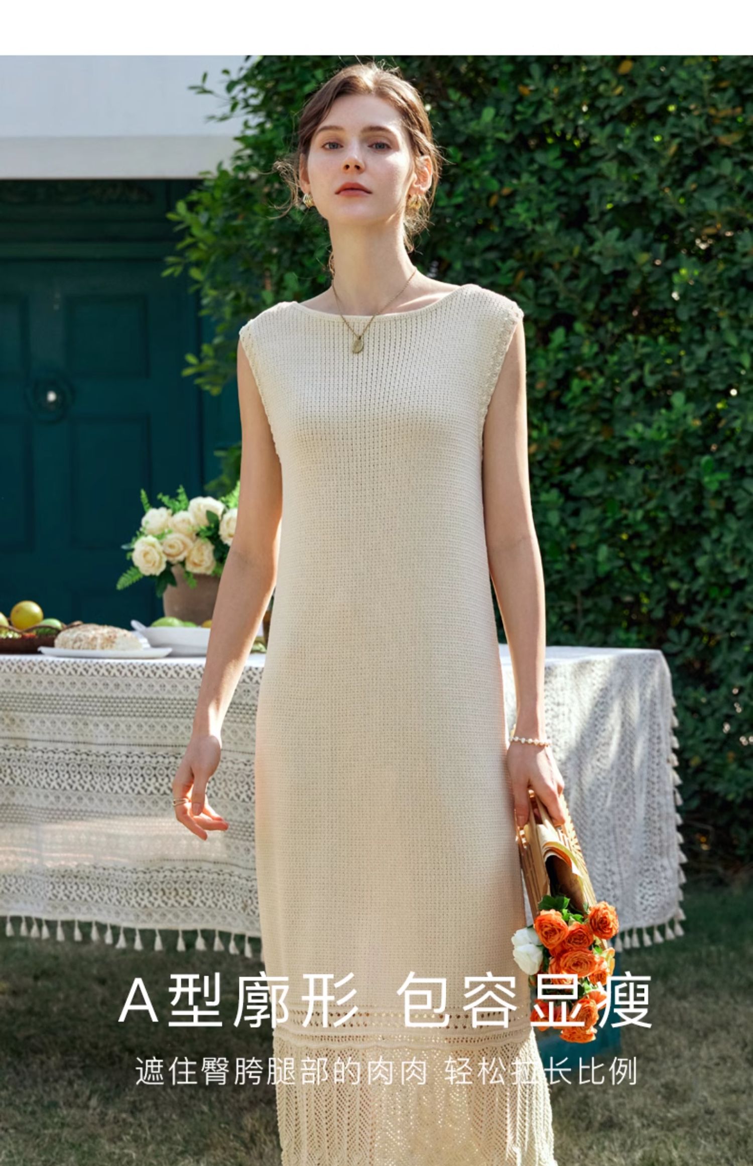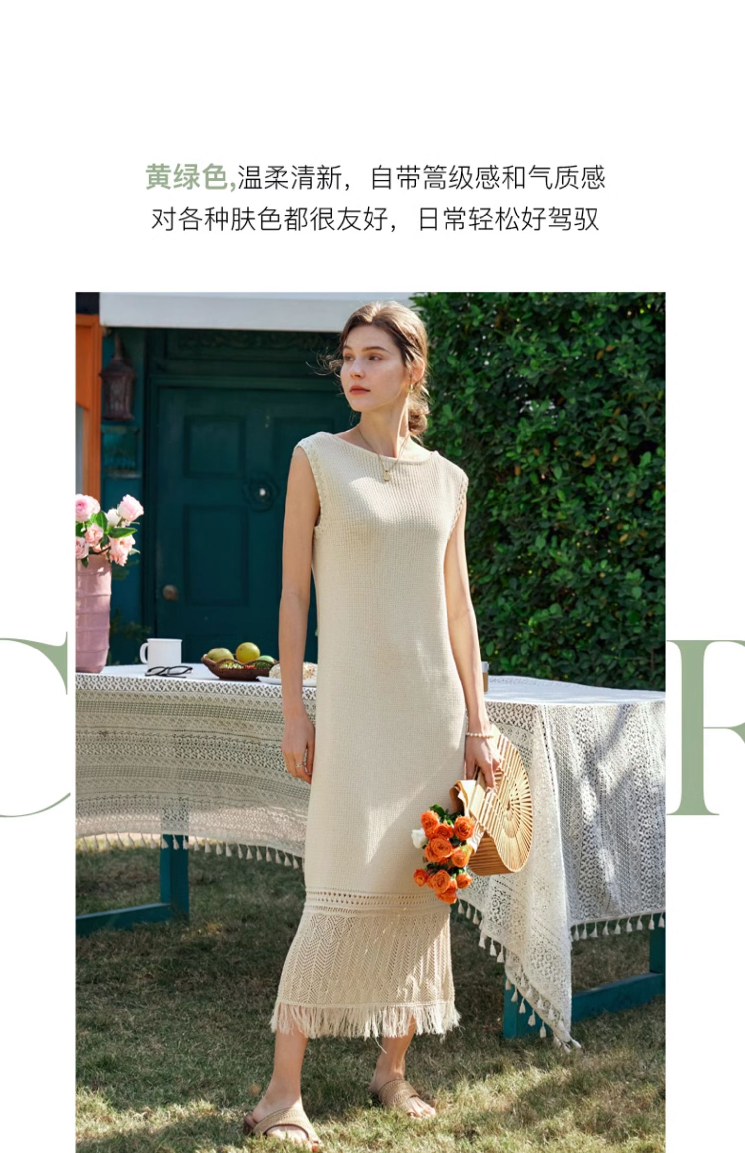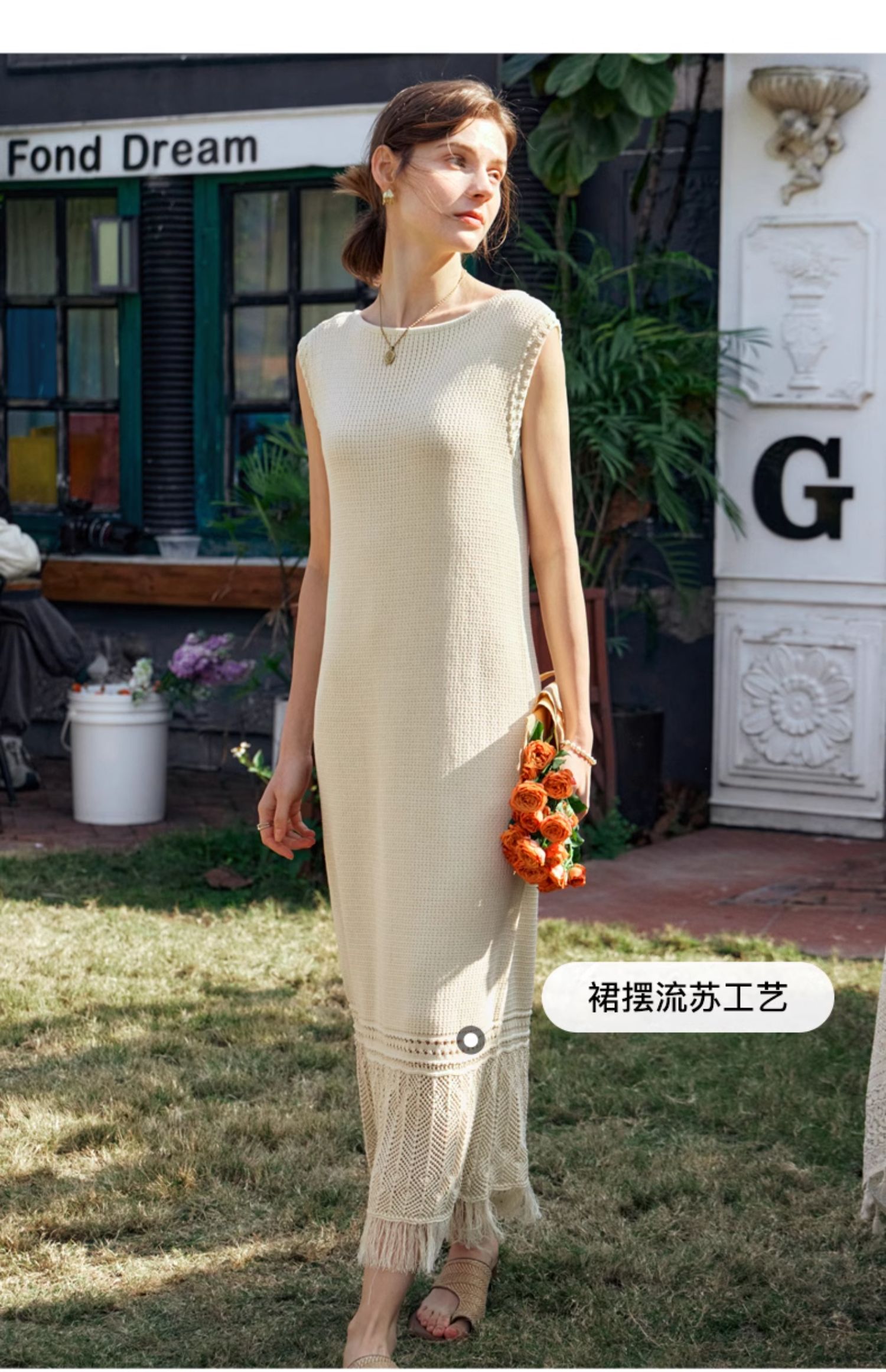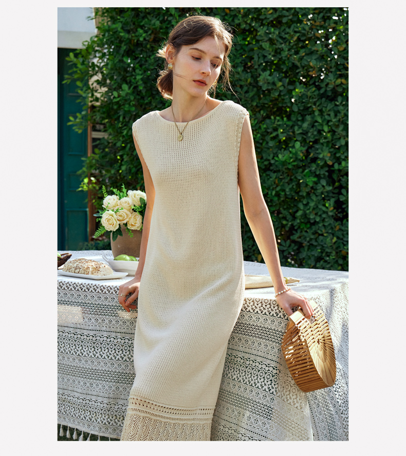OLrain欧芮儿法式茶歇连衣裙女早春2024年新款镂空流苏无袖A字裙