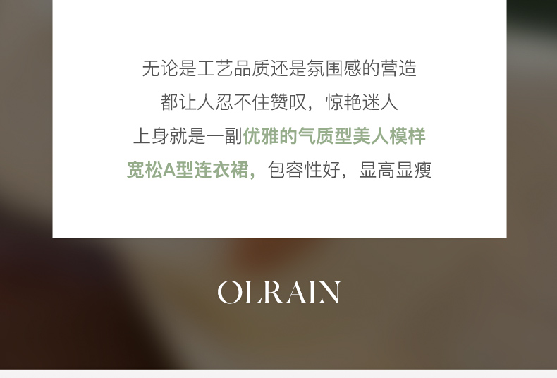 - “精致”是欧芮儿olrain品牌文化的核心,欧芮儿认为,精致的女人,不但要外在动人,更要内在迷人,内外兼修,有魅力、有气质、有内涵,自信而不自傲,优雅而不矫揉,自有万种风情而不轻浮,更不故作矜持。