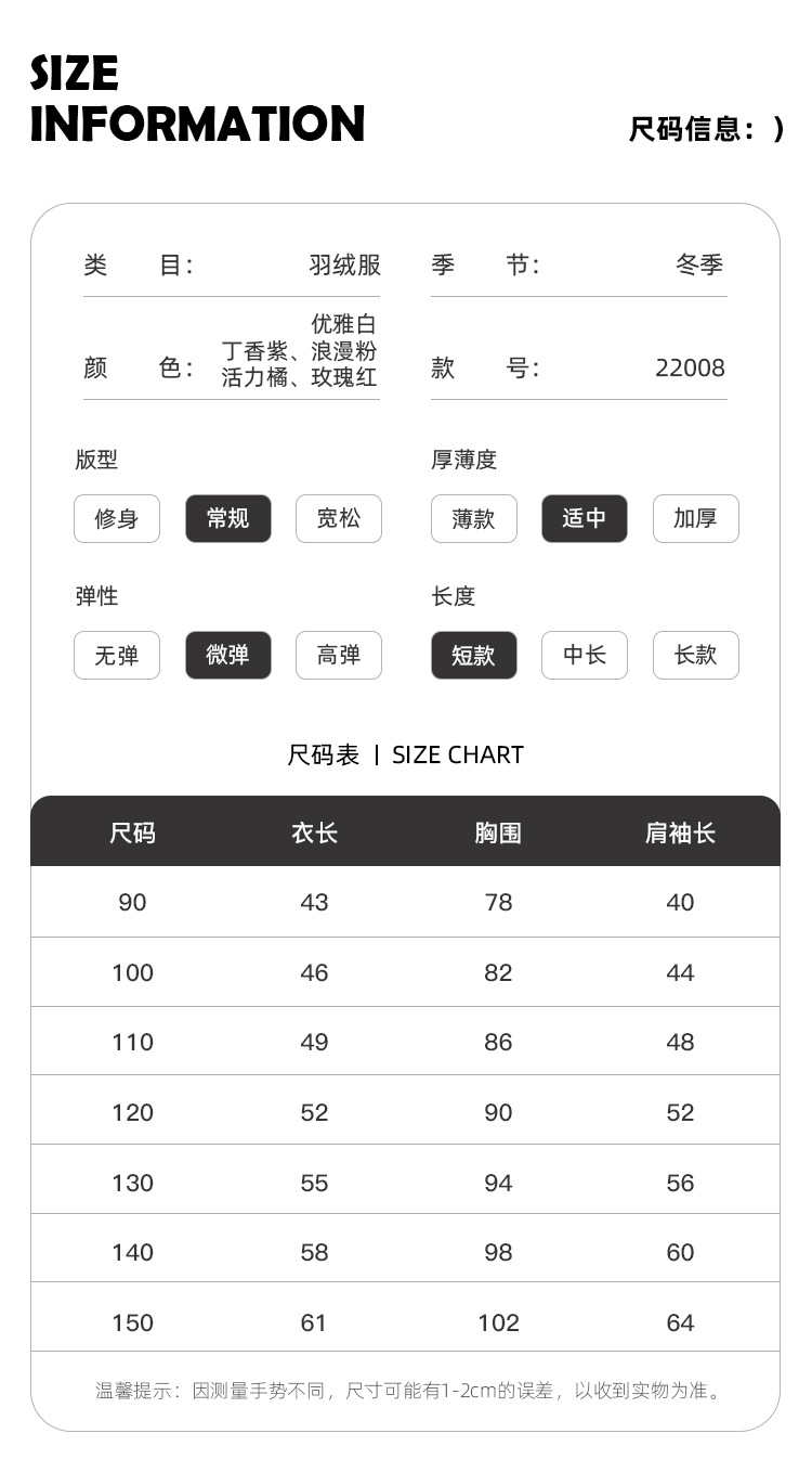 「五款配色!90白鸭绒」呦奇新款韩版短款羽绒服 纯色5色加厚时尚轻薄羽绒服外套童装