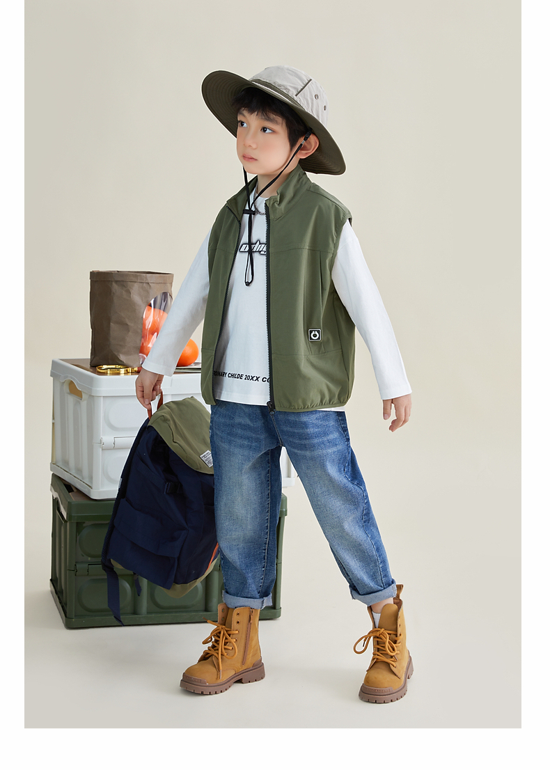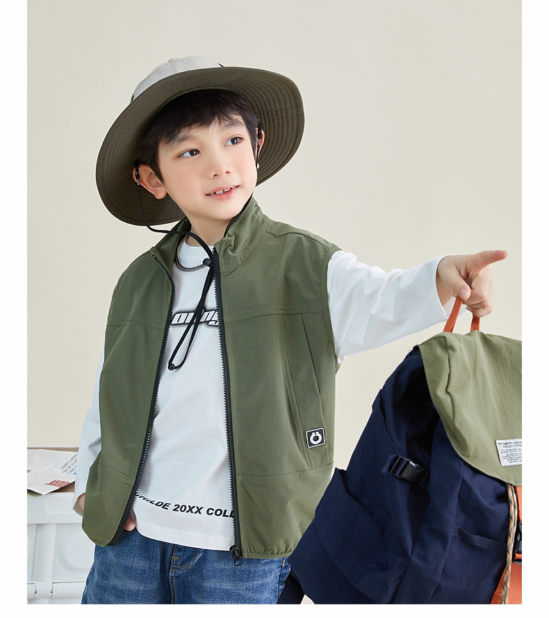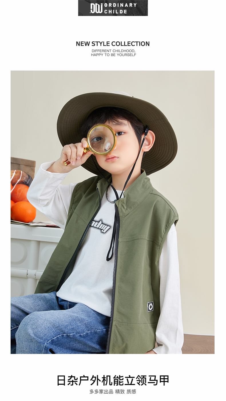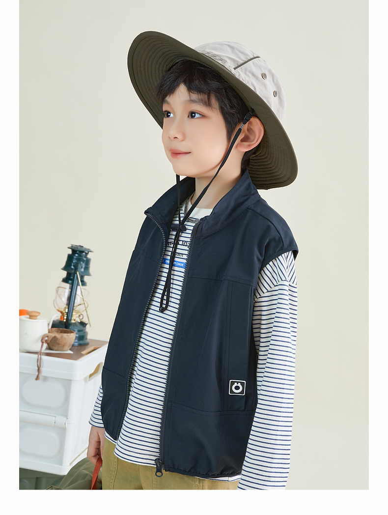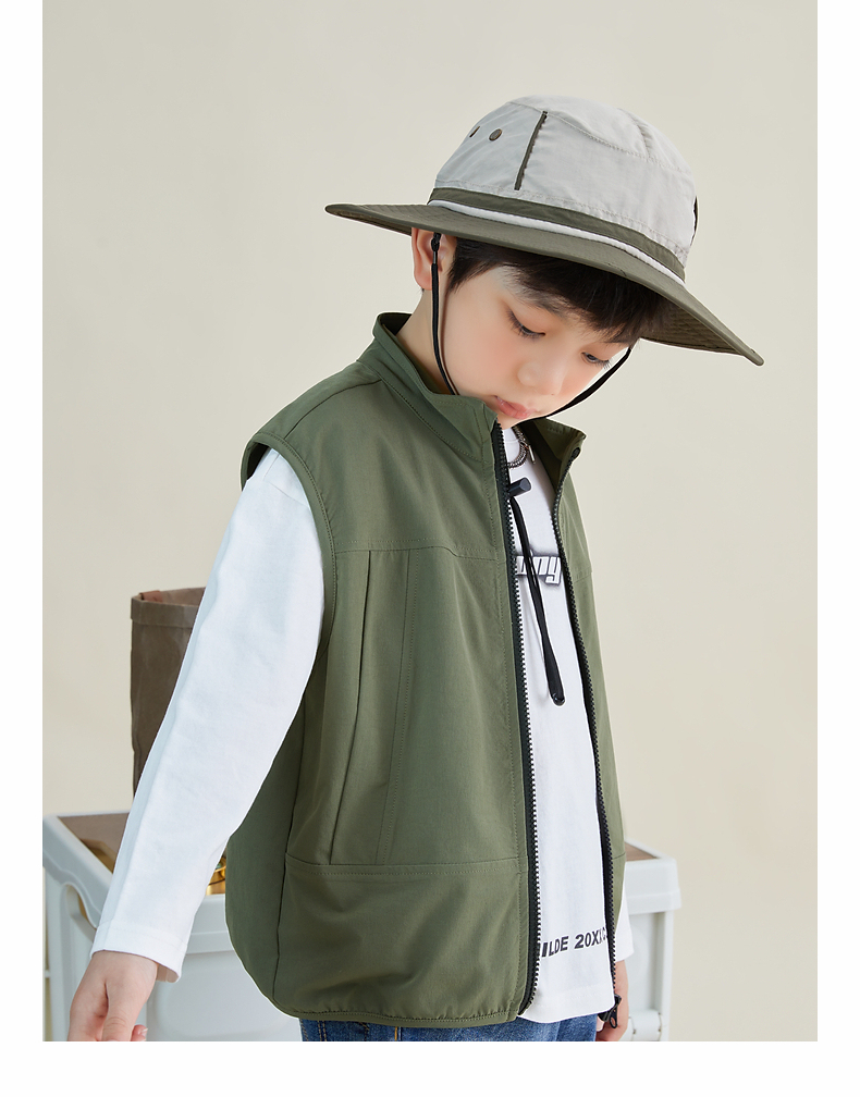 【团购价69.9元】多多家 男童马甲春秋日系风立领儿童背心户外机能中大童马夹帅6051
