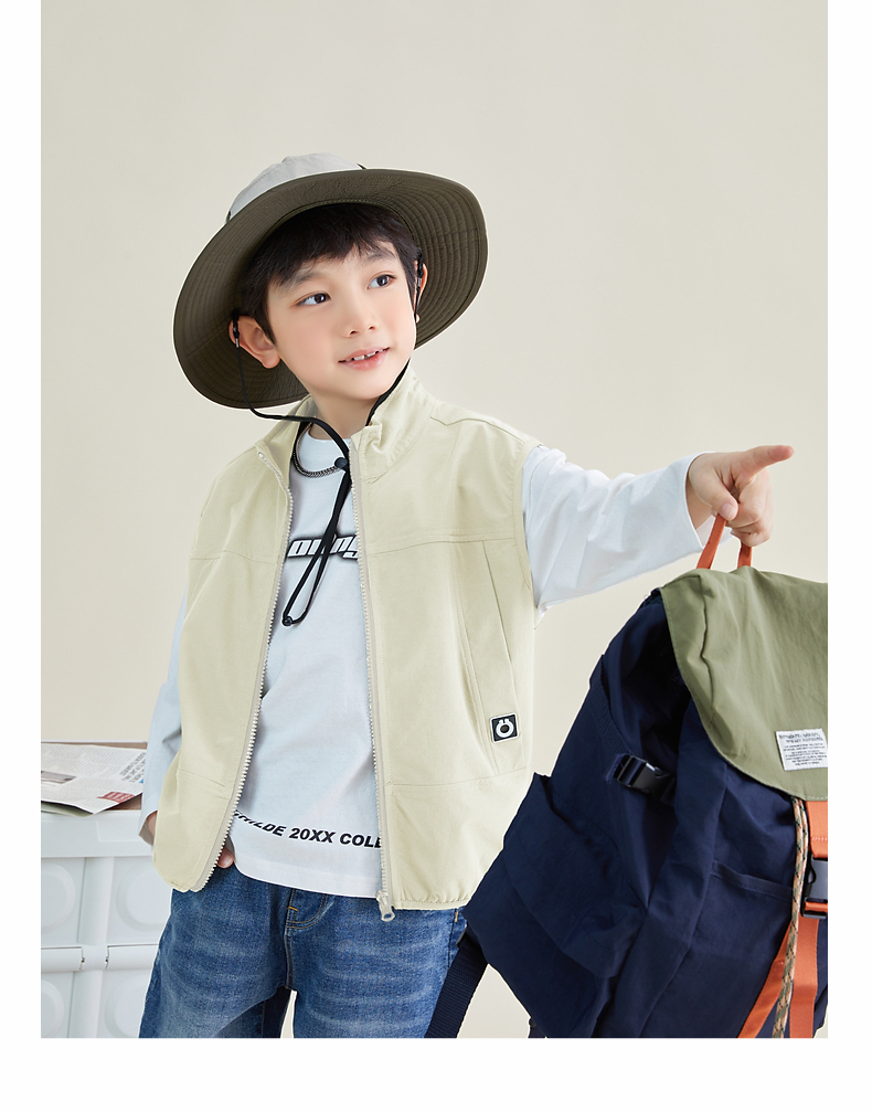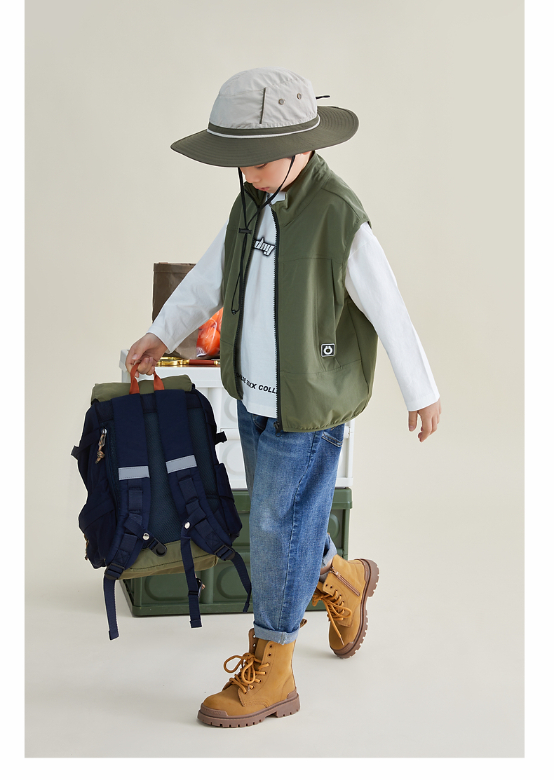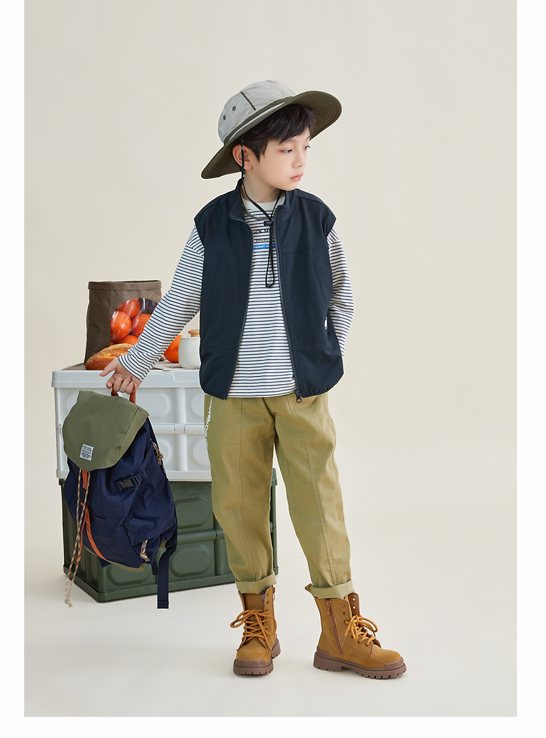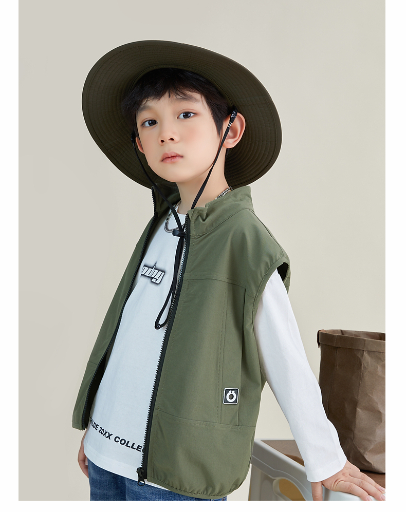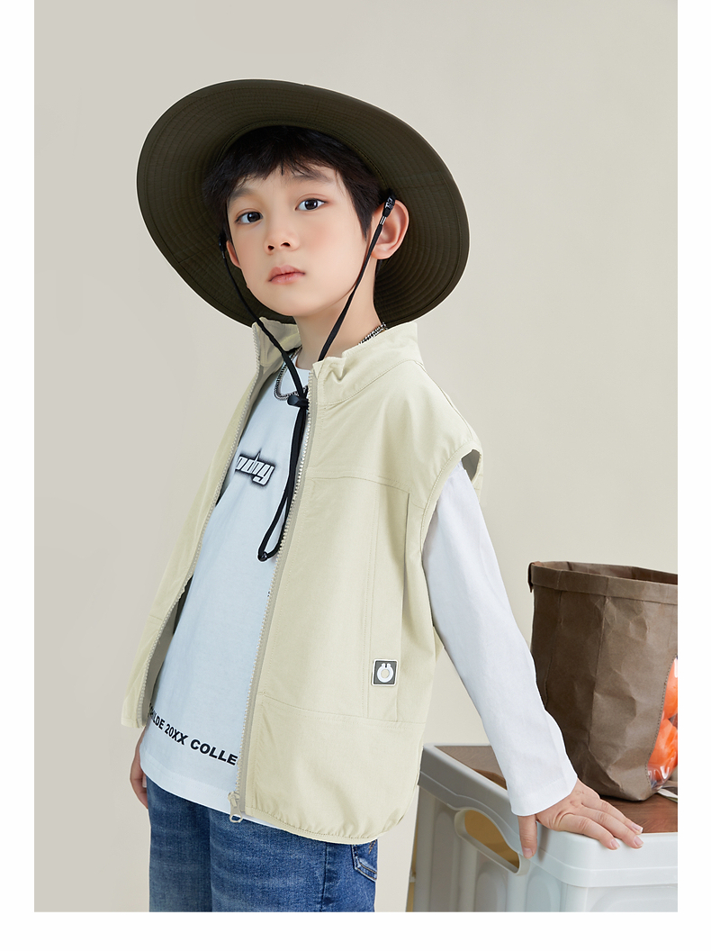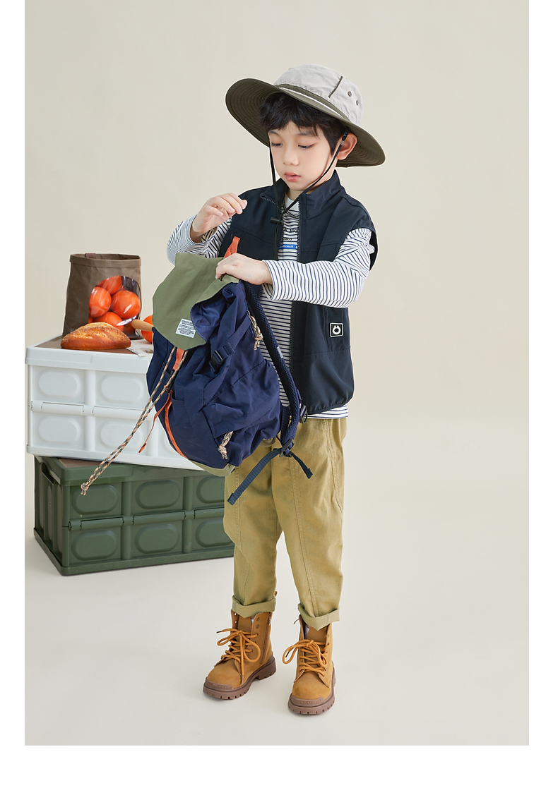 【团购价69.9元】多多家 男童马甲春秋日系风立领儿童背心户外机能中大童马夹帅6051