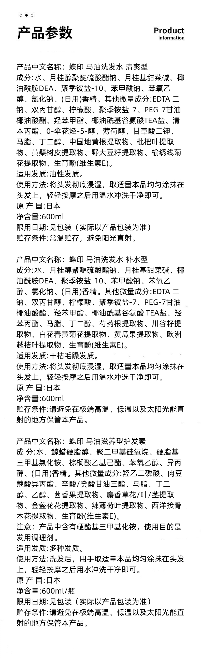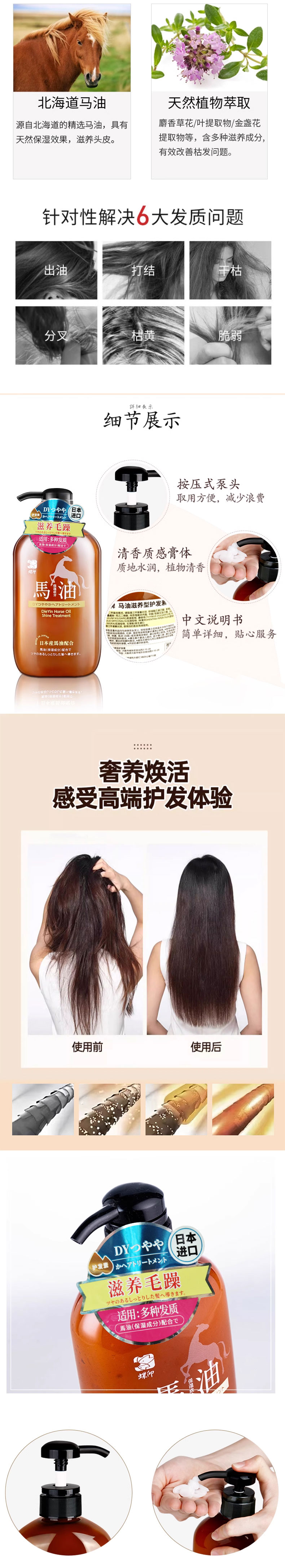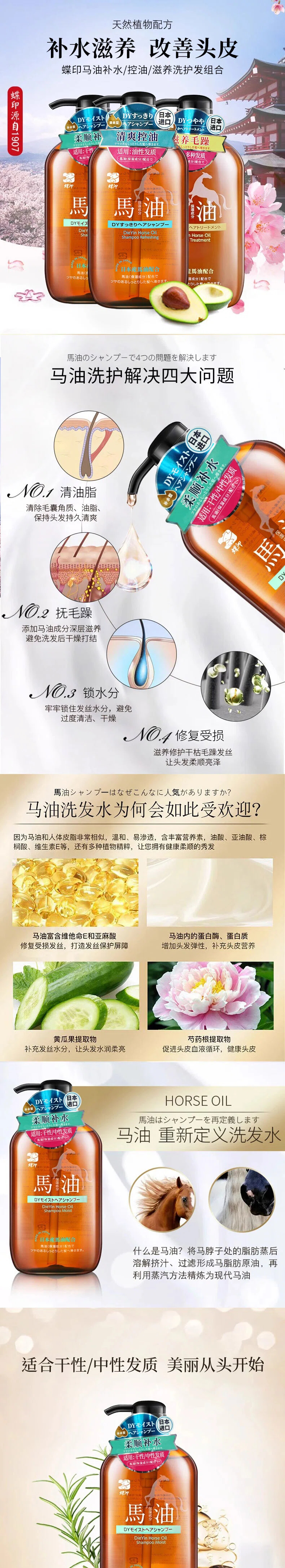 日本进口蝶印牌马油洗发水丨护发素600ml【清爽丨补水丨滋养型】
