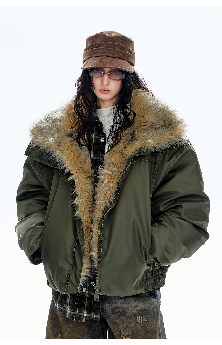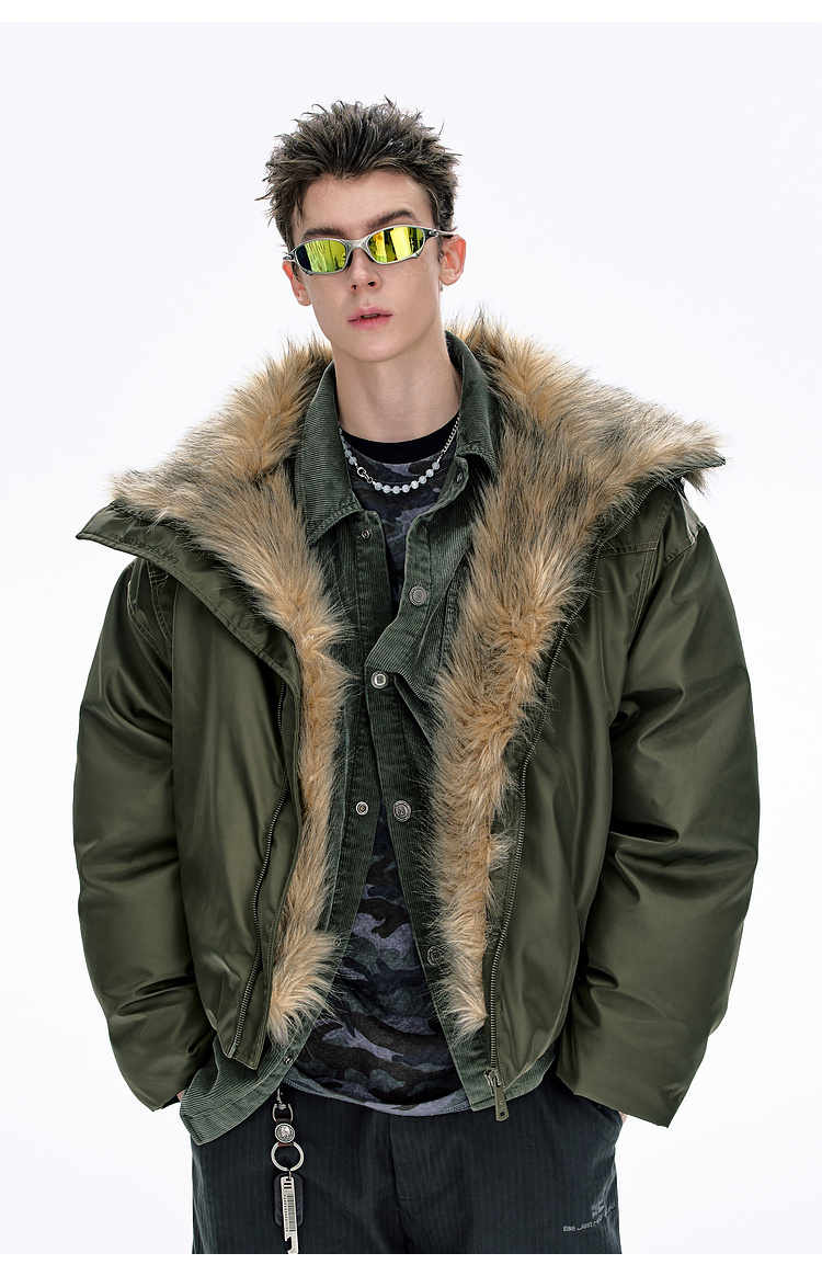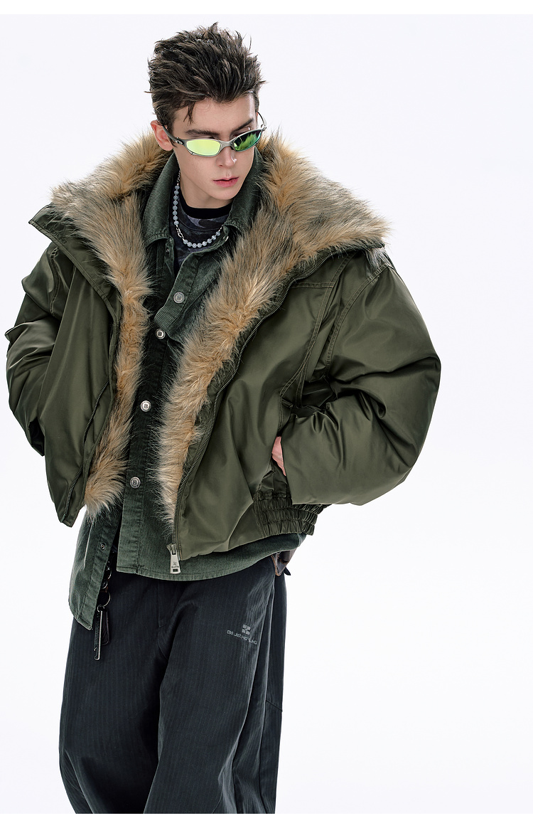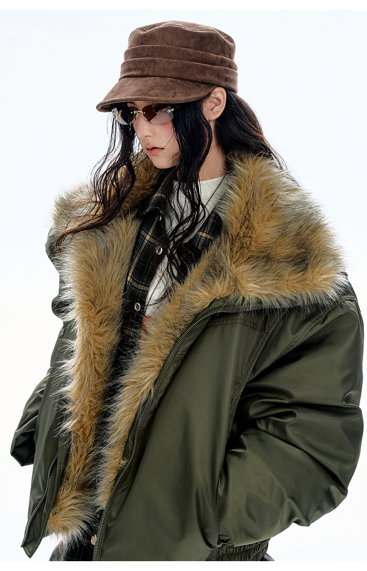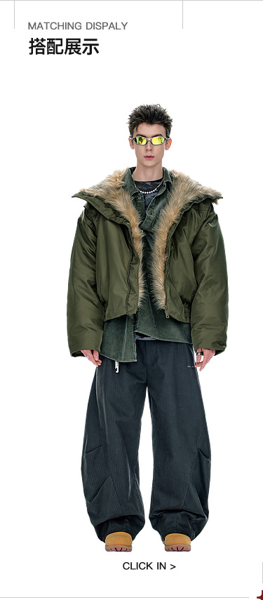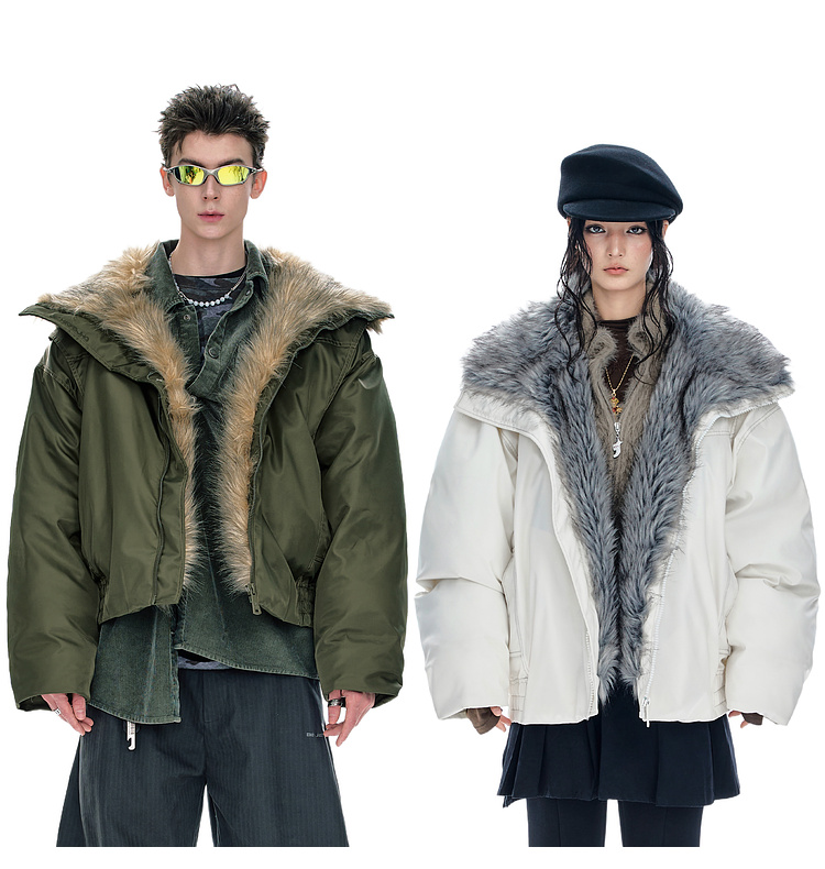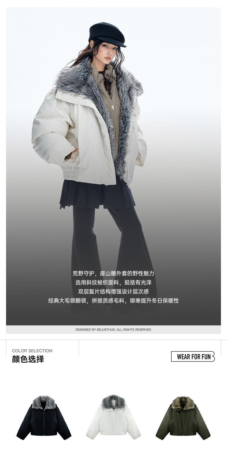 BJHG不计后果座山雕棉服外套男款冬季潮牌翻领大毛领防寒服棉袄女