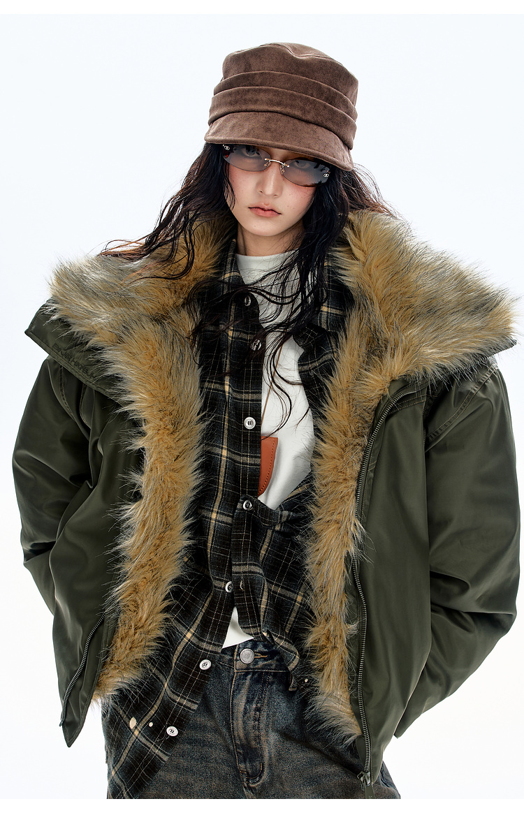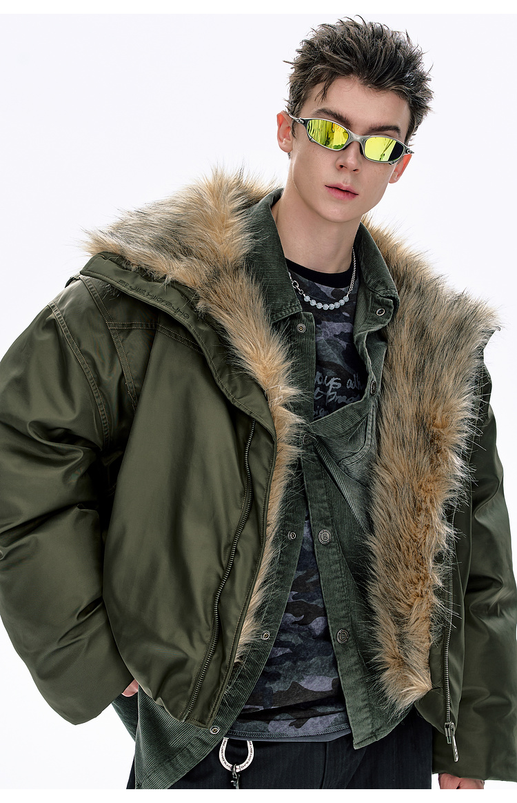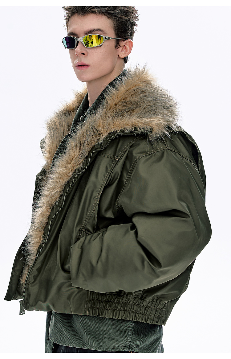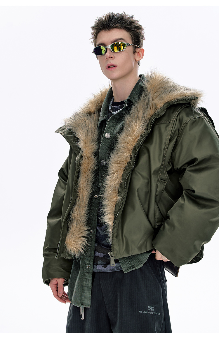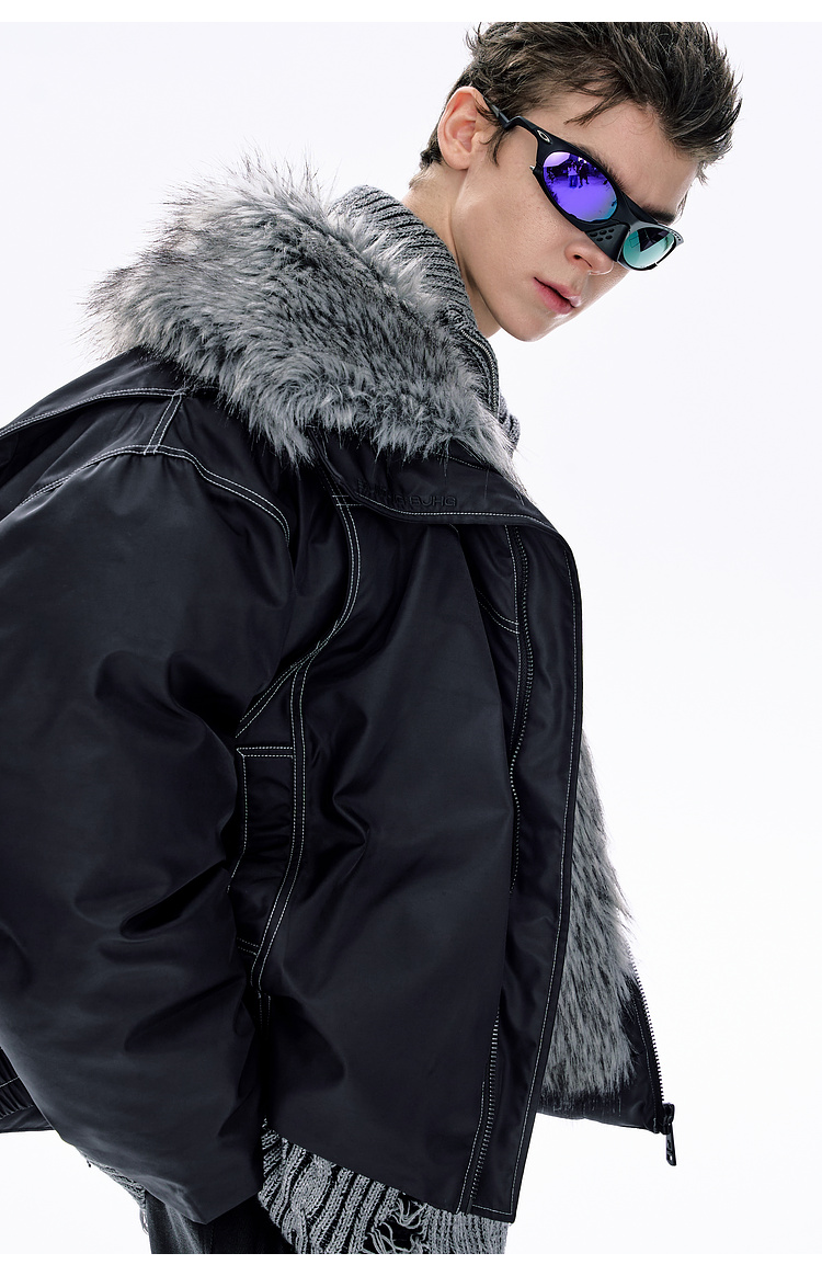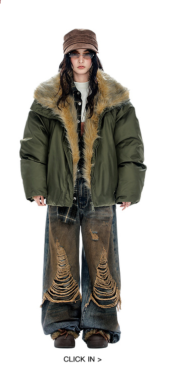 BJHG不计后果座山雕棉服外套男款冬季潮牌翻领大毛领防寒服棉袄女