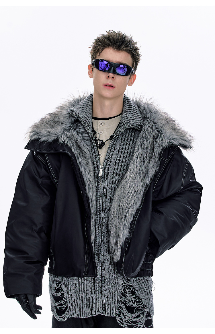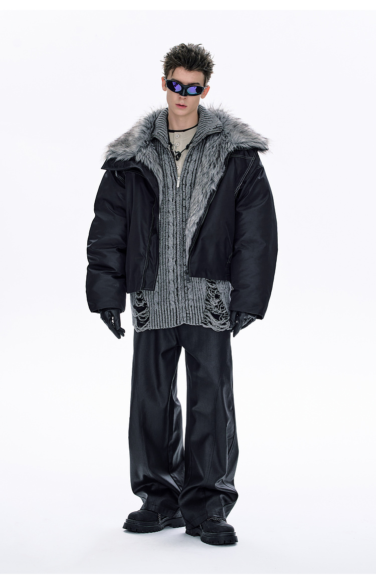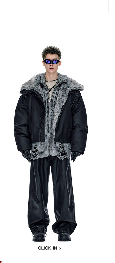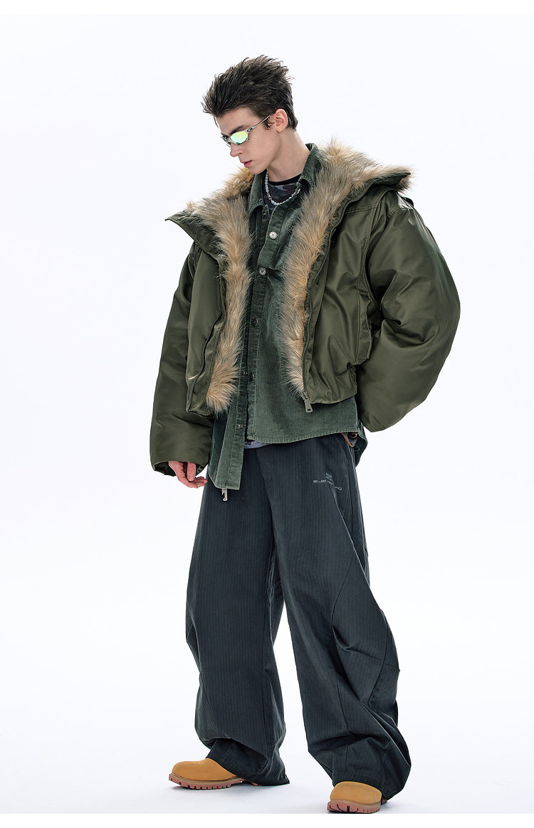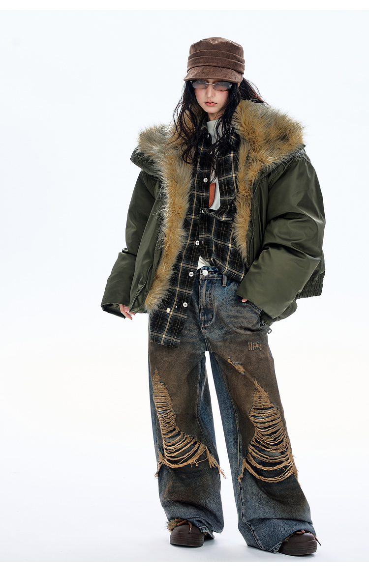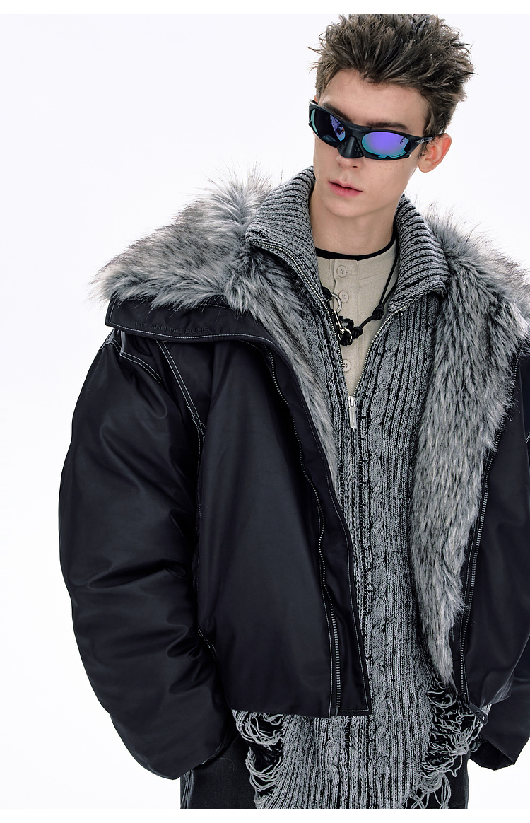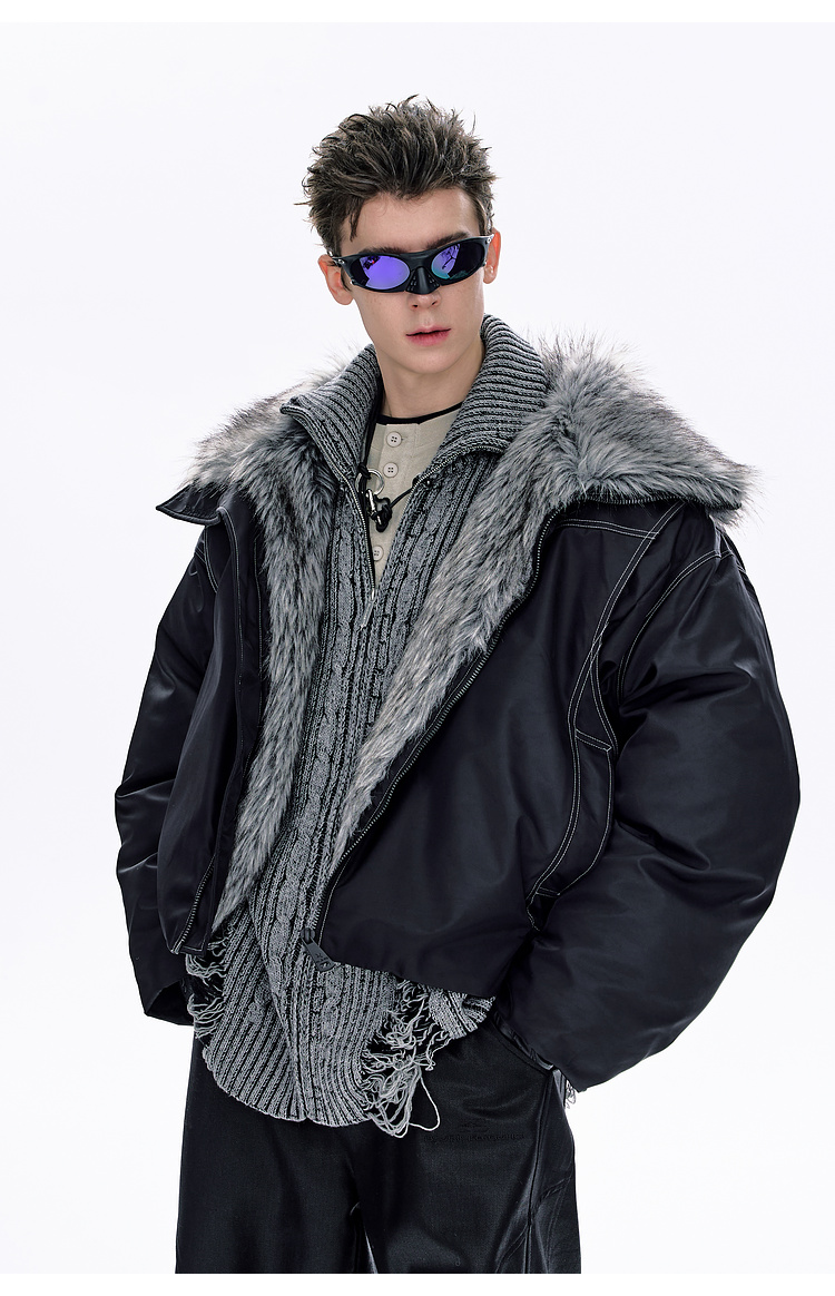 BJHG不计后果座山雕棉服外套男款冬季潮牌翻领大毛领防寒服棉袄女