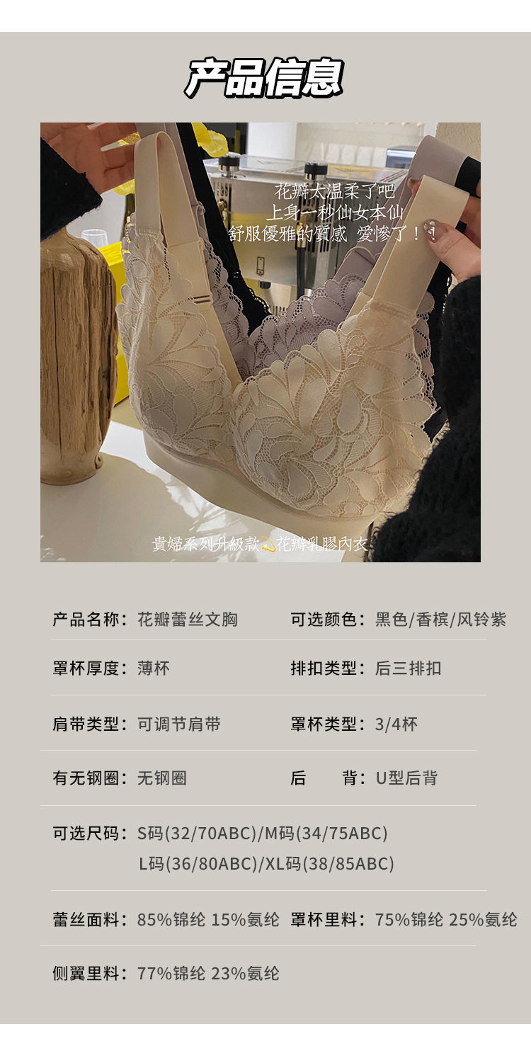 【超薄无钢圈性感文胸】防下垂聚拢上托舒适学生胸罩