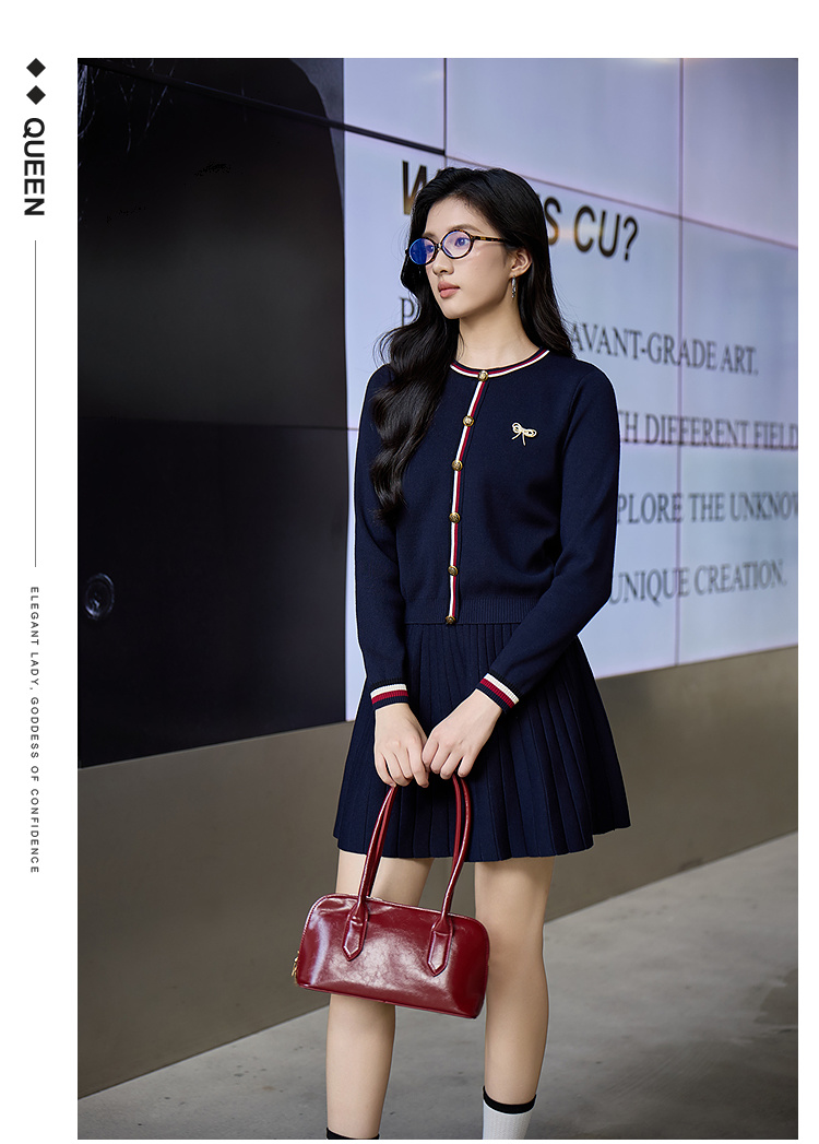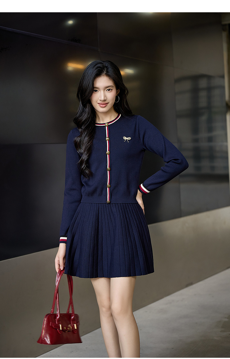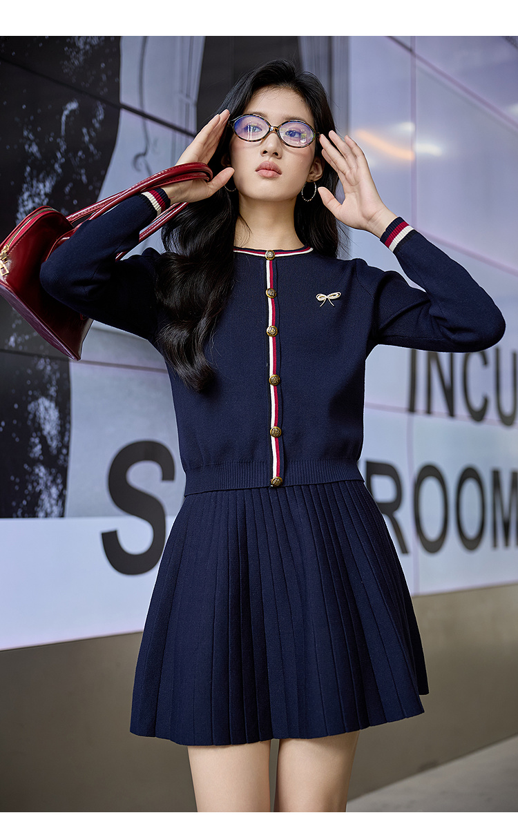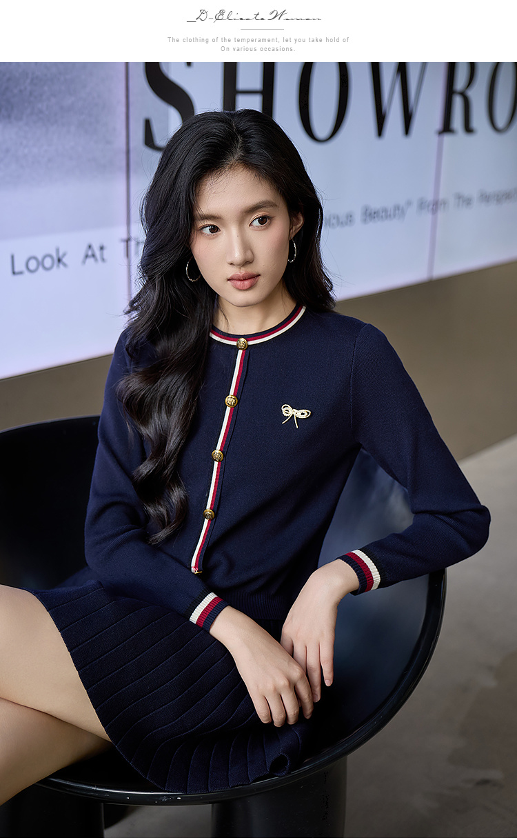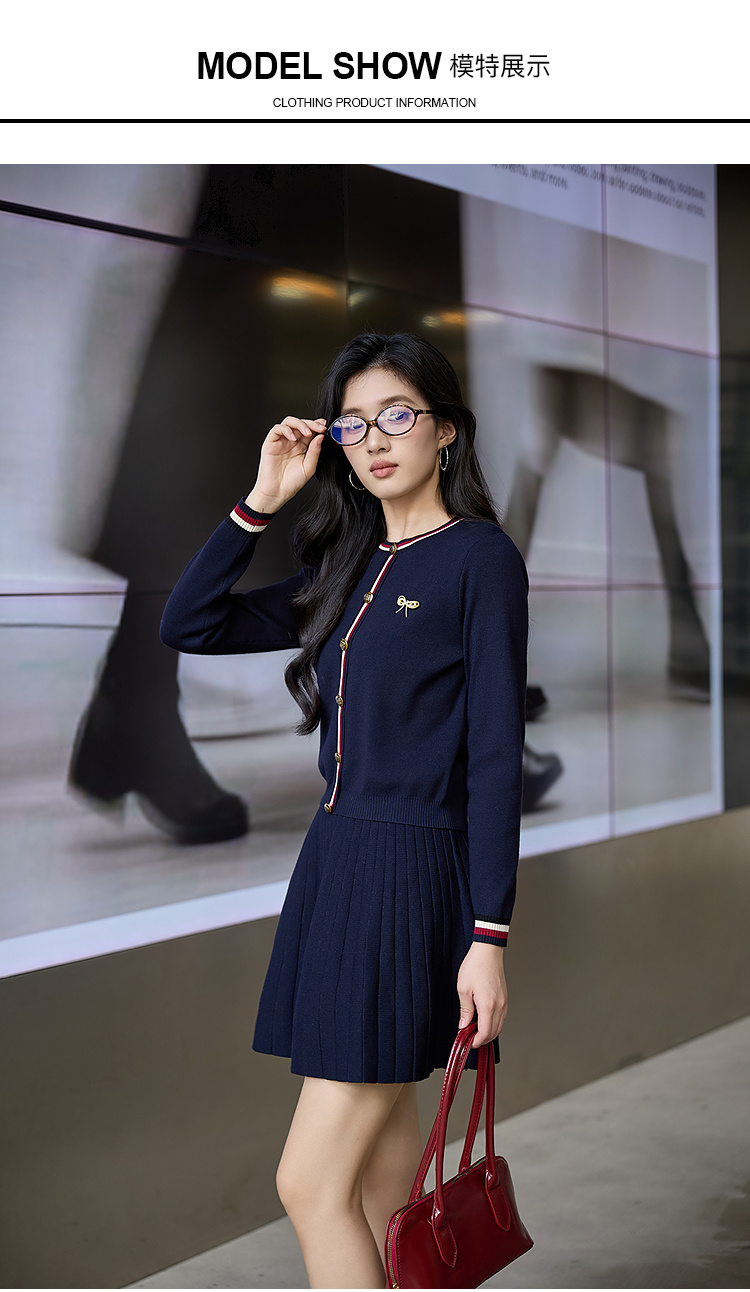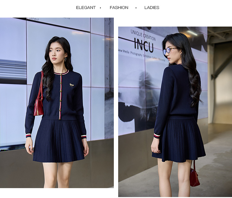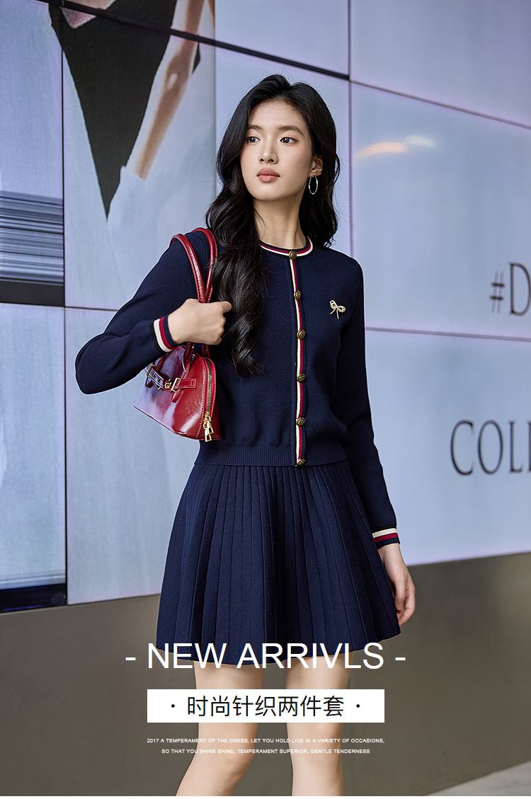 奢姿大码女装2025秋季减龄坑条设计时尚两件套胖妹妹圆领针织套装9853994218