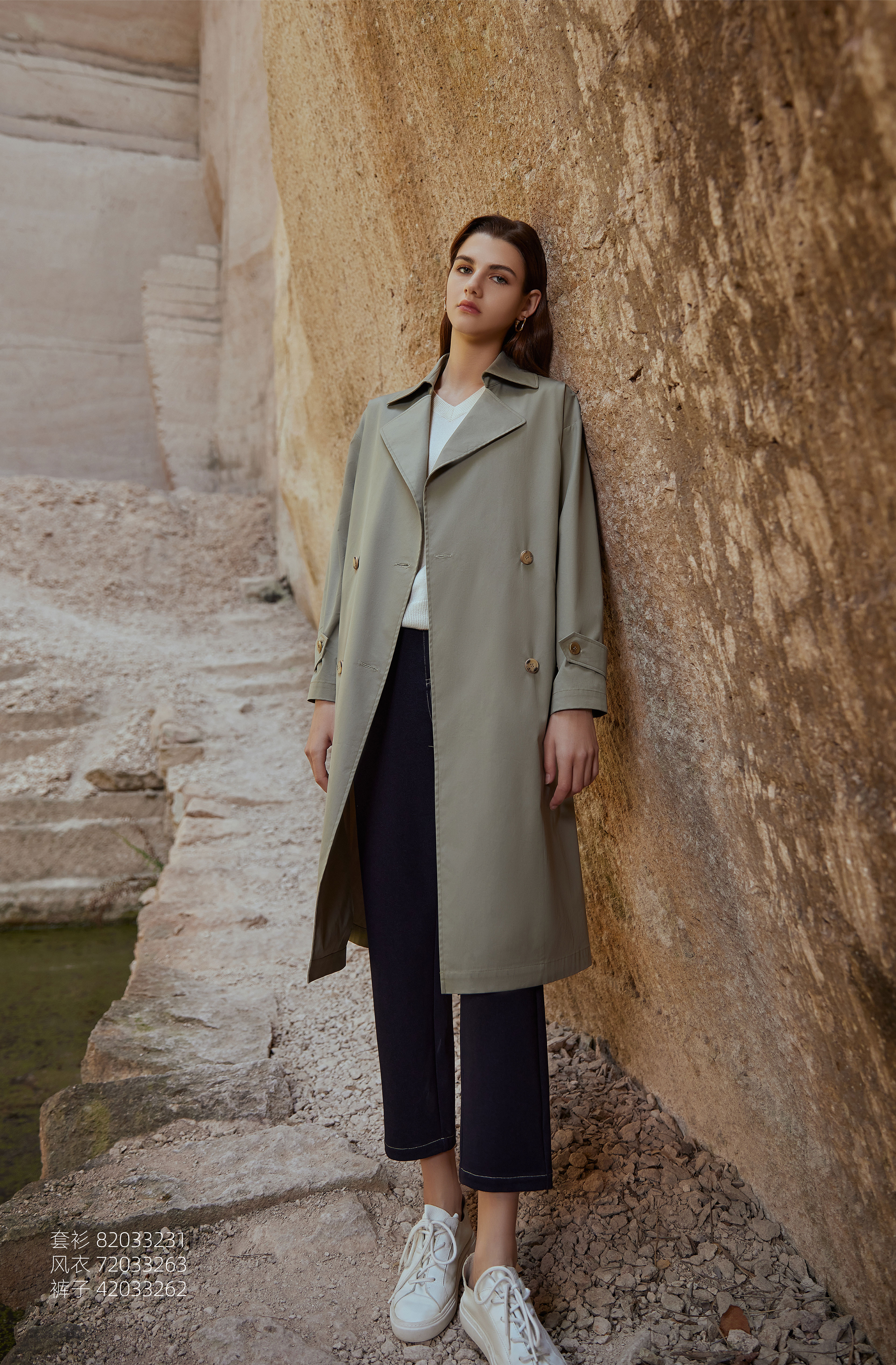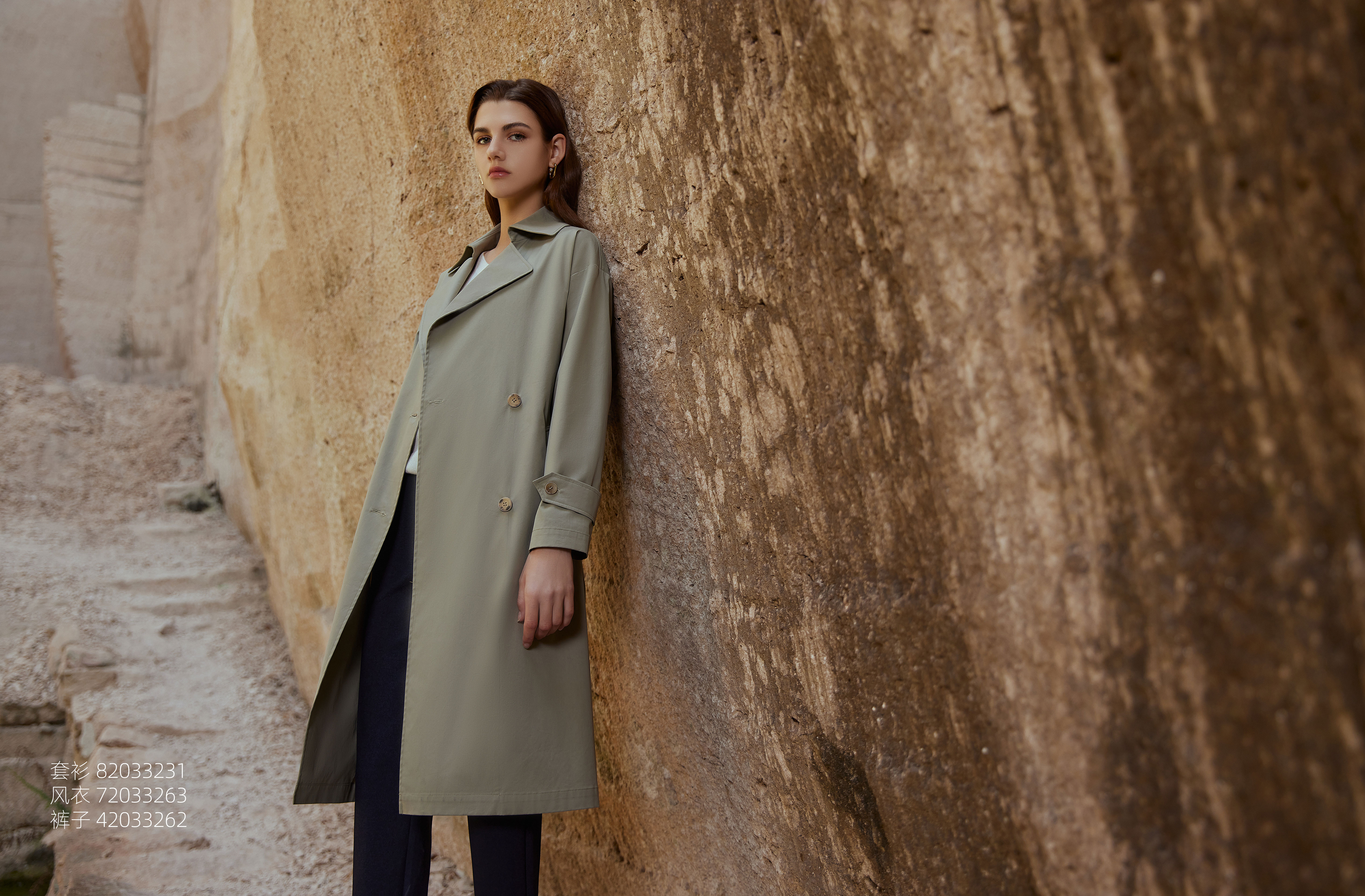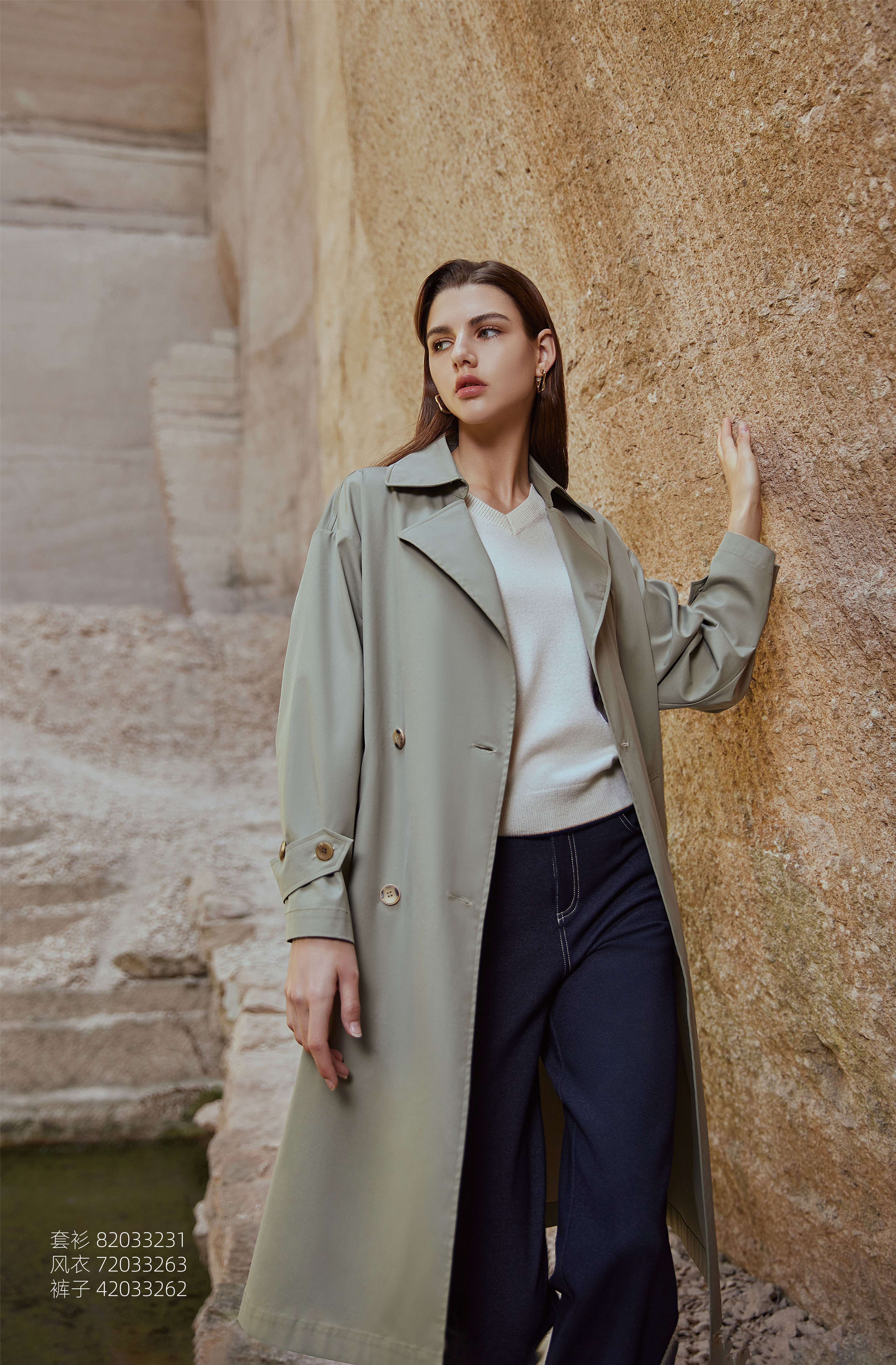 【女士风衣外套】23年秋冬新品女士中长款双排扣风衣时尚直筒外套