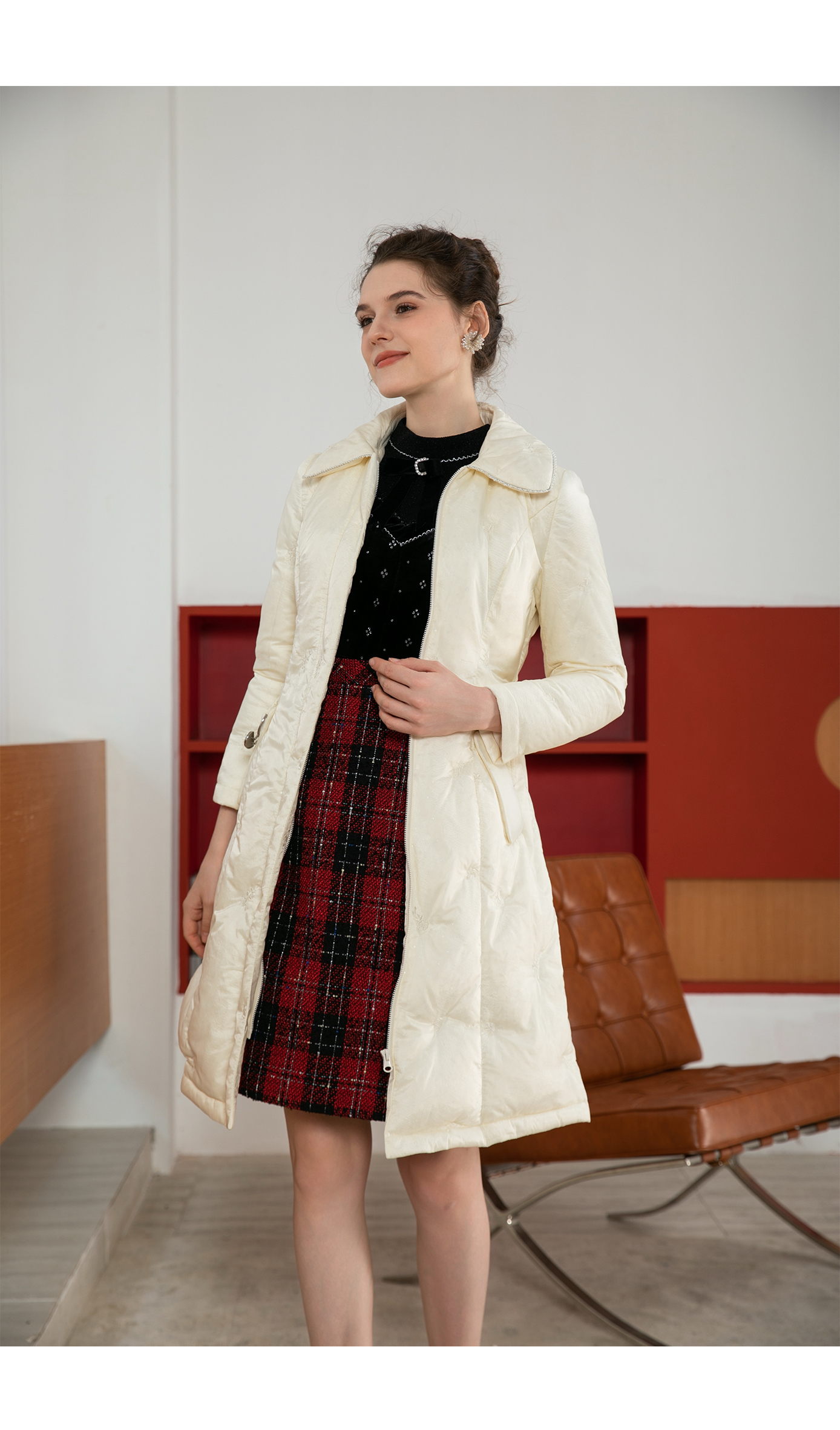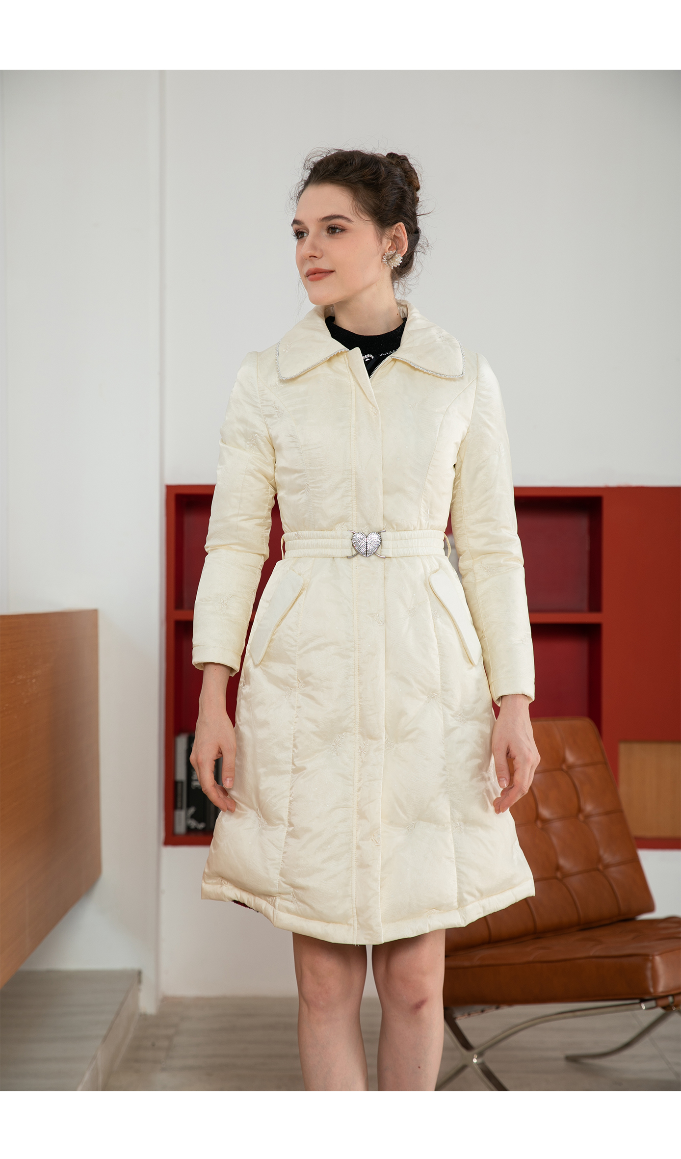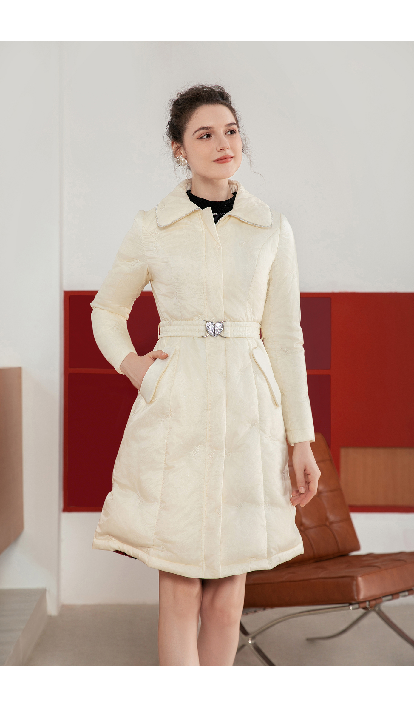 司歌绣花显瘦外套羽绒长袖中长袖Y901278X