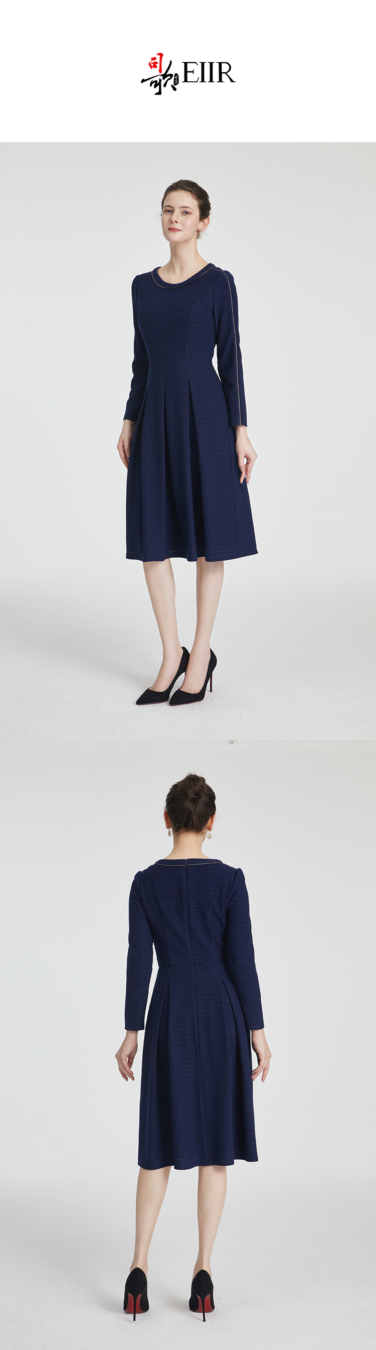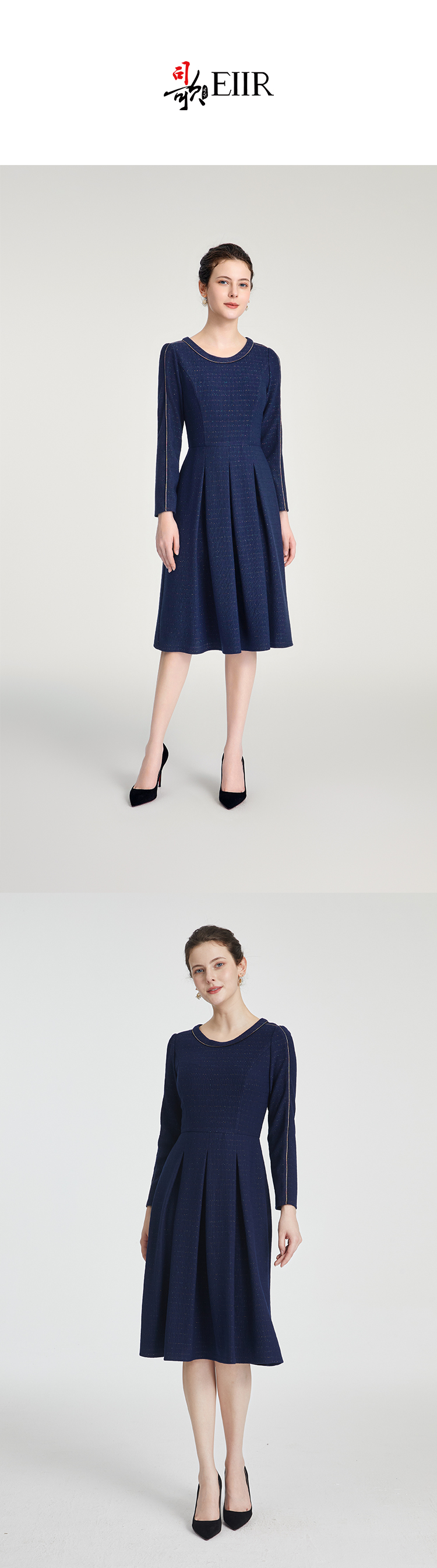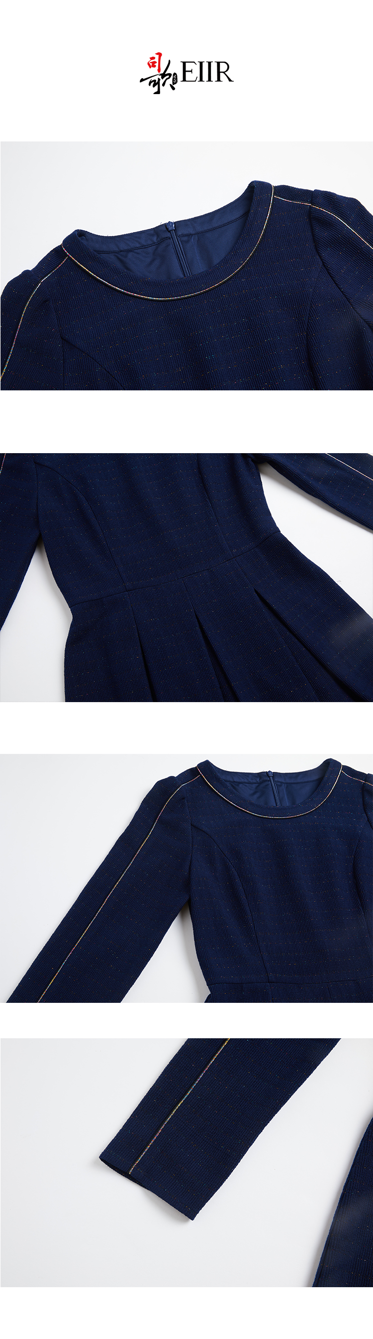 司歌长袖圆领冬连衣裙弹力收腰百搭净色气质A881025