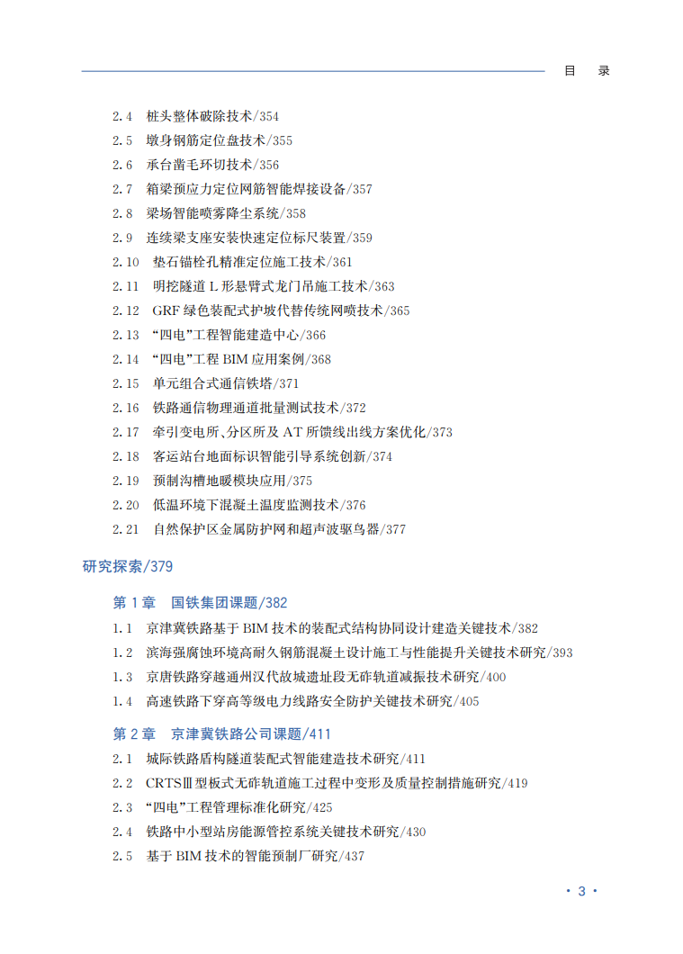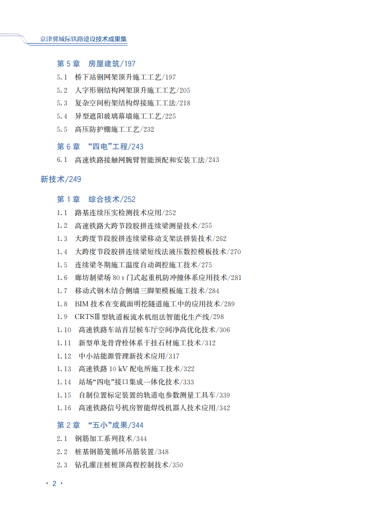 本书共四篇,主要围绕工程建设现场问题,分别介绍了路基、桥梁、隧道、轨道、“四电”、房建等工程建设过程中采用的成熟适用工艺工法、新技术,以及依托建设项目开展的科技创新工作。“工艺工法”篇,将经过实践验证适宜京津冀区域、取得良好应用效果的工艺工法进行了系统总结,提炼经验,升华实践,为类似工程工艺工法比选提供借鉴。“新技术”篇,将项目建设中运用的新技术、“五小革新”、典型做法等进行了总结,固化创新成果,提升整体技术水平。“研究探索”篇立足工程实践中发现的问题,对标全路技术创新趋势,通过理论和实践结合的方式,研究解决现场实际问题的方法,以期对区域城际铁路建造水平和行业技术发展起到一定程度探索作用。“成果展示”篇,通过已建成的工程实例,展现了“轨道上的京津冀”日新月异的新面貌。另有京津冀城际铁路网规划(2015—2030年)示意图、参建单位、视频资源3个附录。