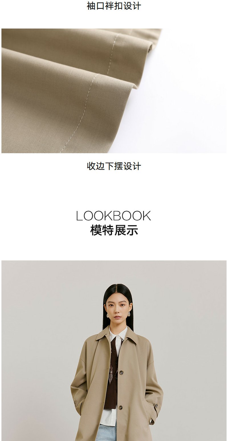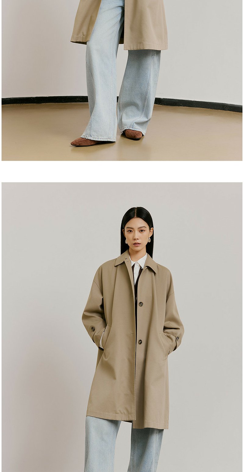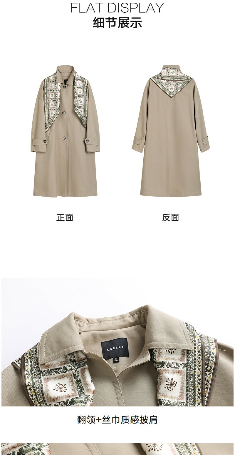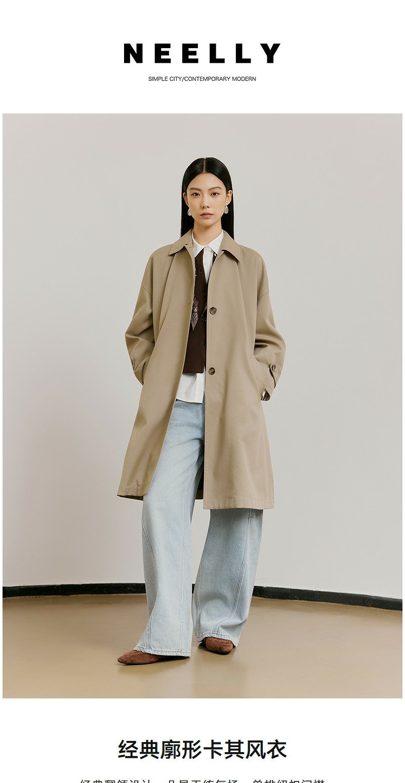 NEELLY纳俪商场同款春新款经典廓形休闲长风衣女宽松舒适百搭外套N26021F01071