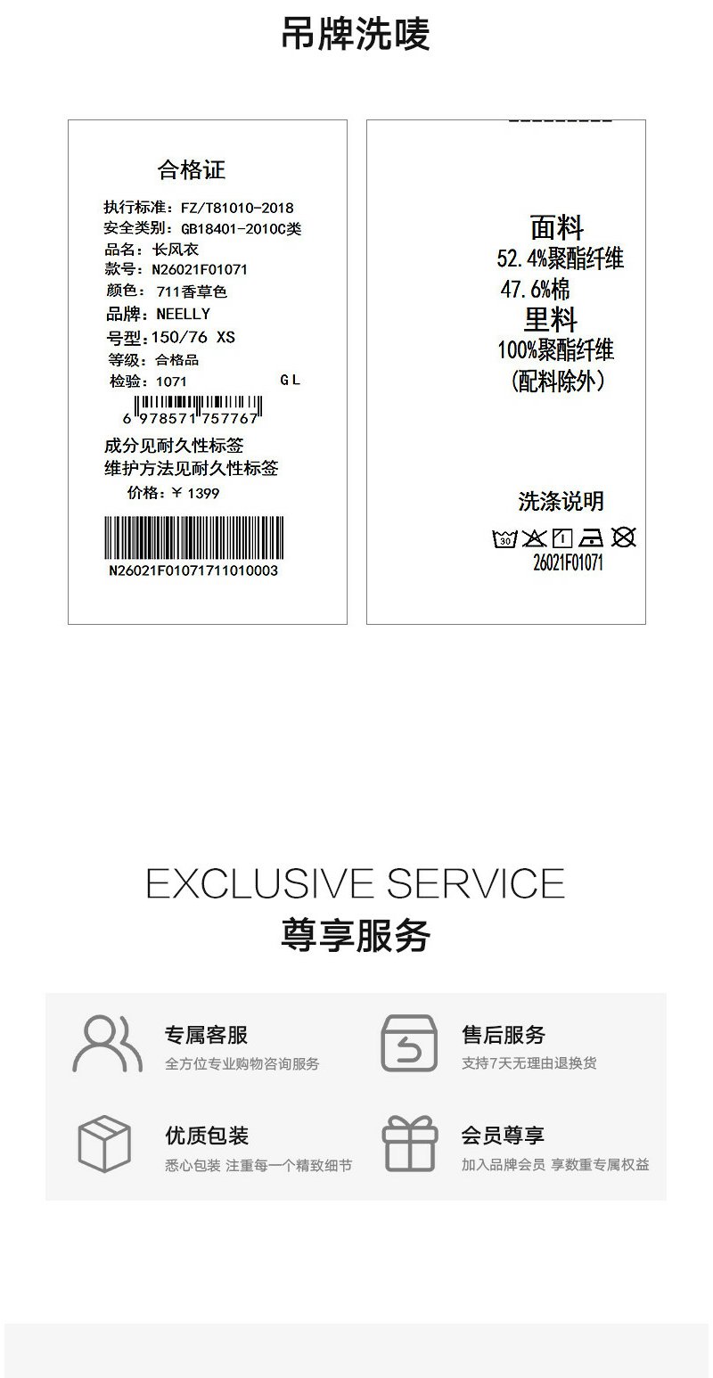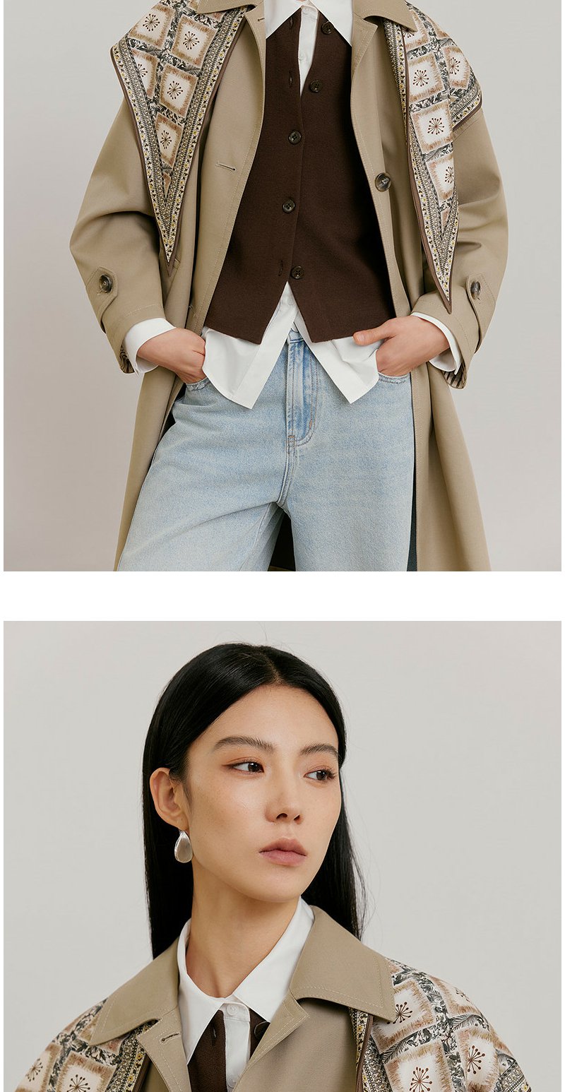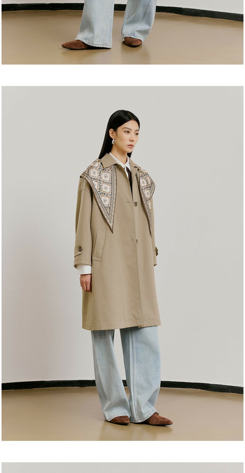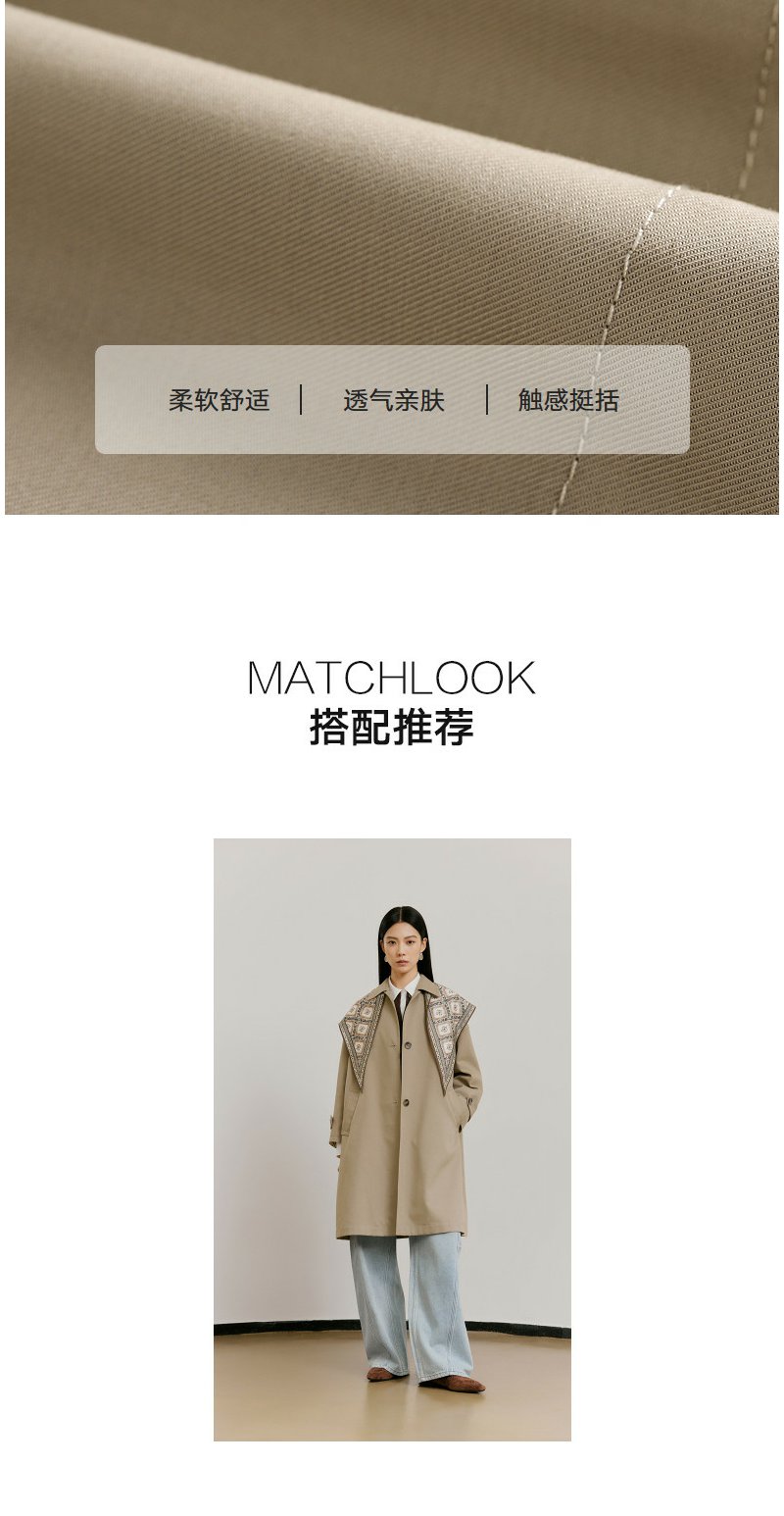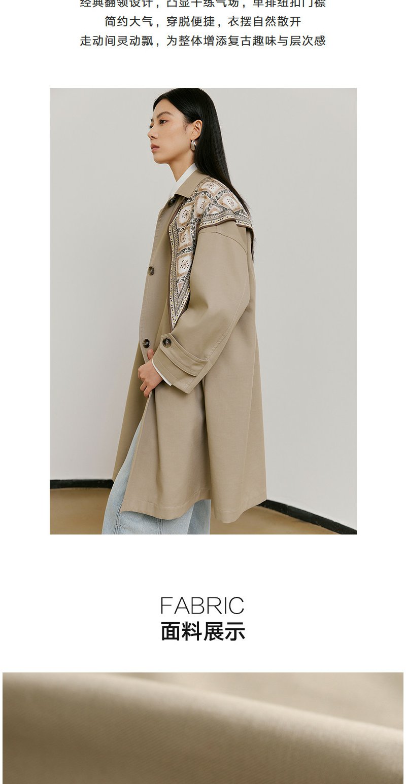 NEELLY纳俪商场同款春新款经典廓形休闲长风衣女宽松舒适百搭外套N26021F01071