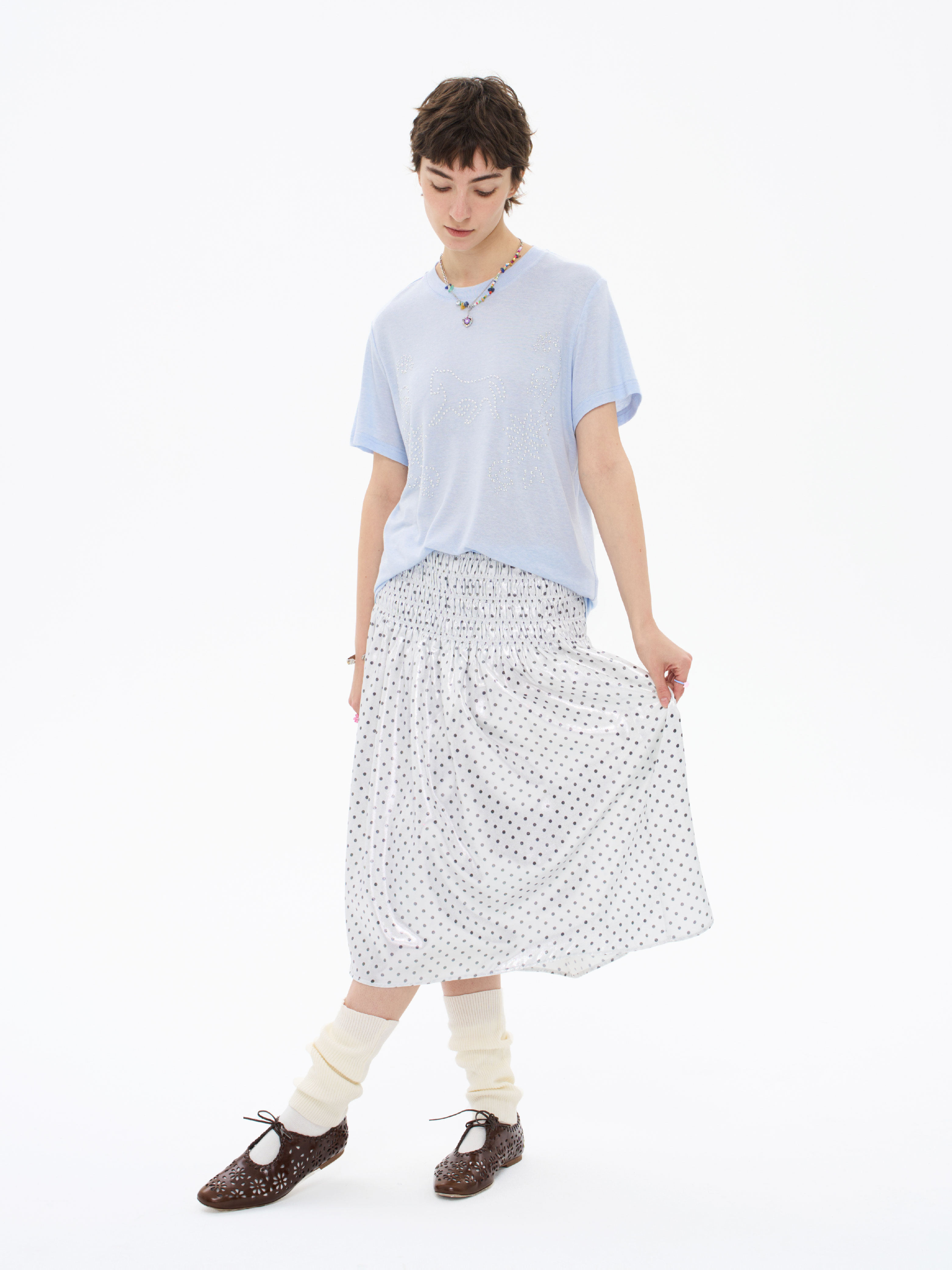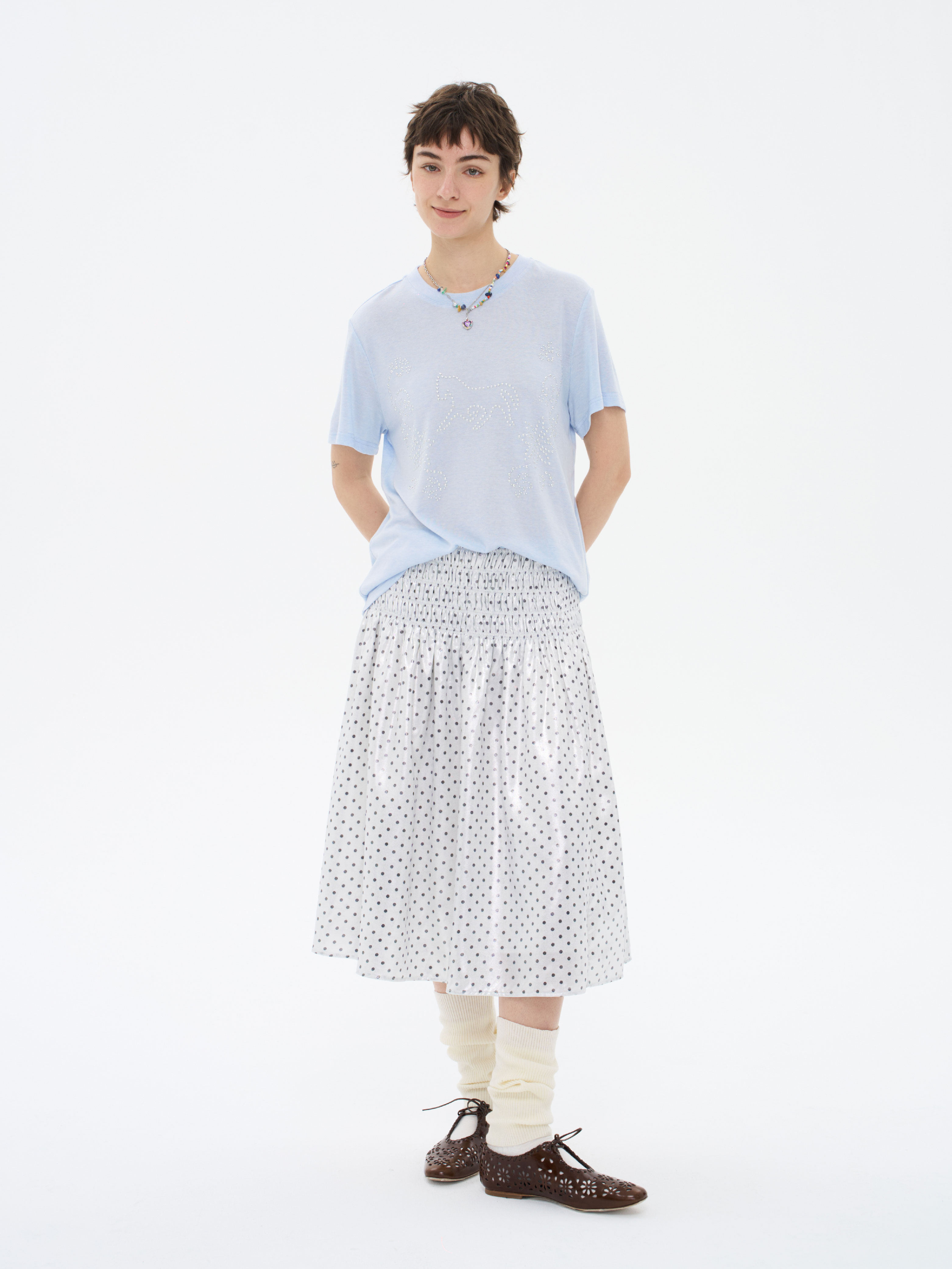 local tag/lt26ssk29/闪光波点 缩褶绣重工半裙