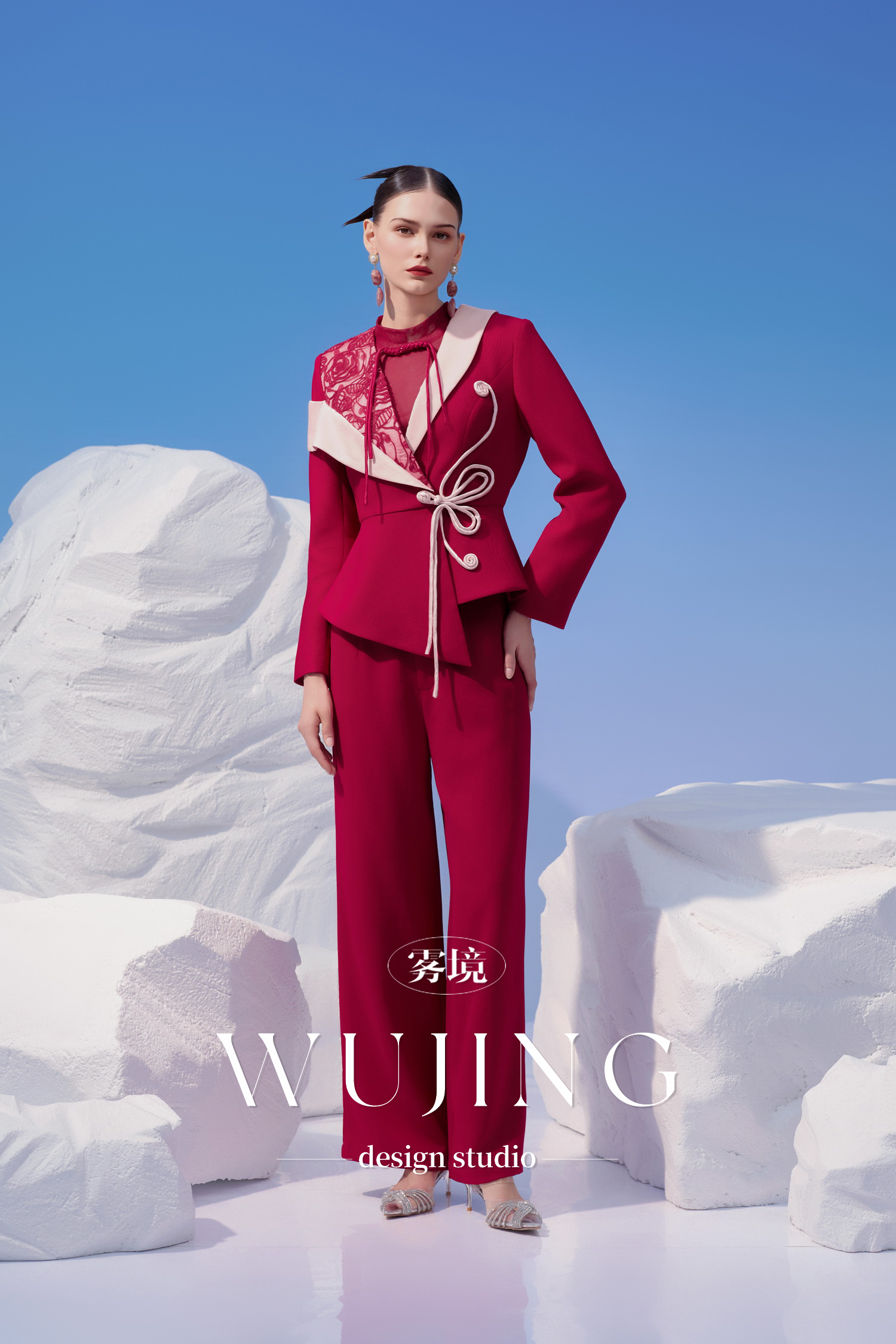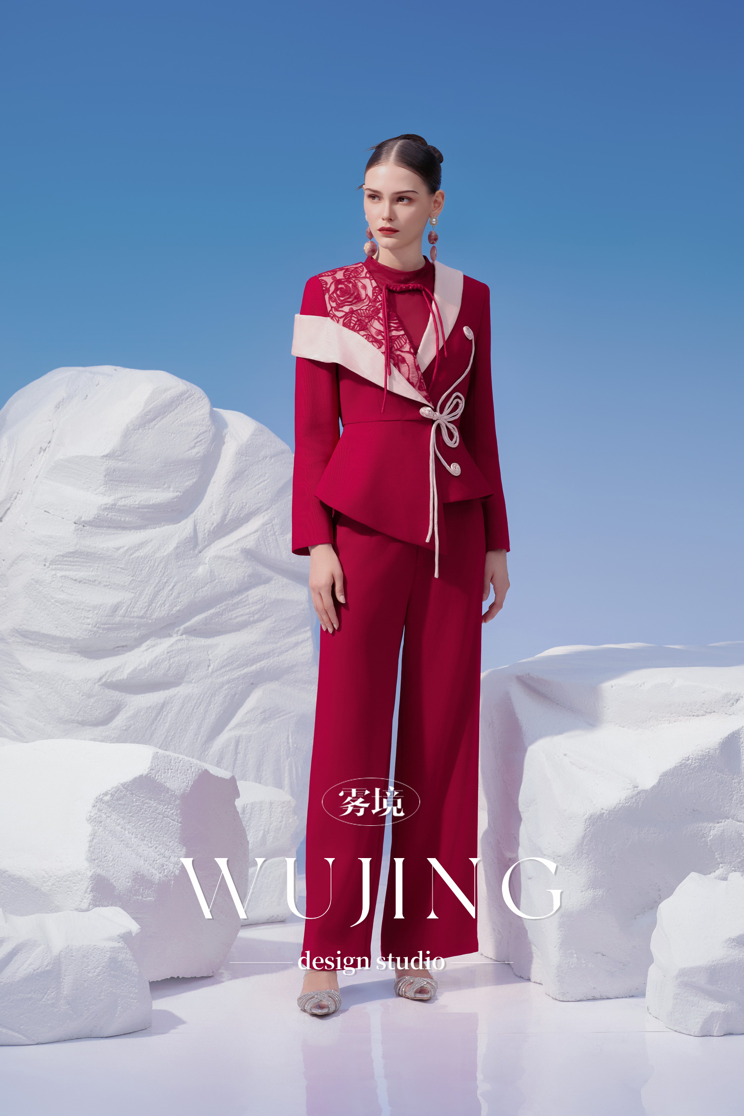 3205056 烟岚云岫 进口纹理蜂窝缎定位印花裤子 雾境