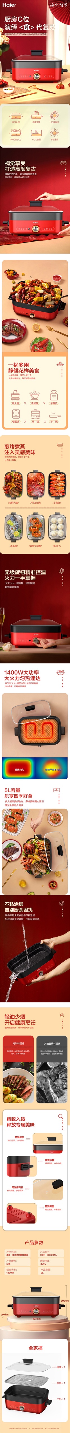 海尔多功能料理锅HDR-BX5201A 盖子发货为红色