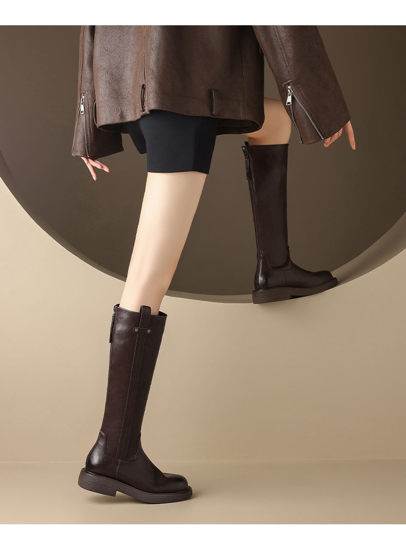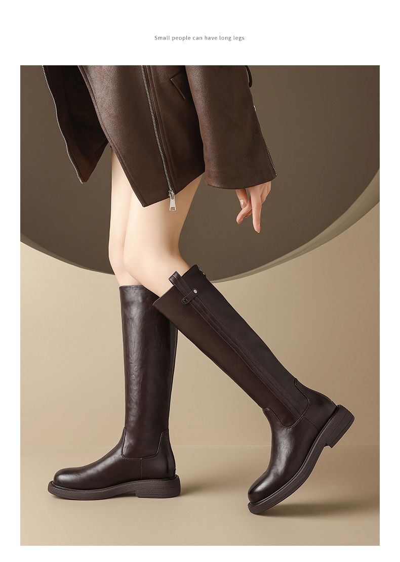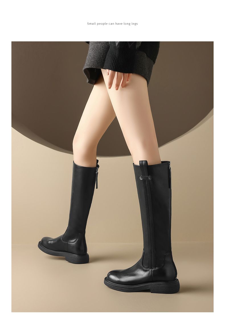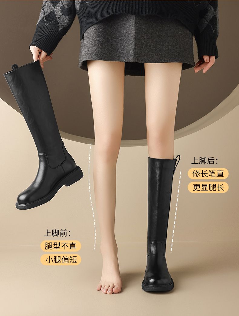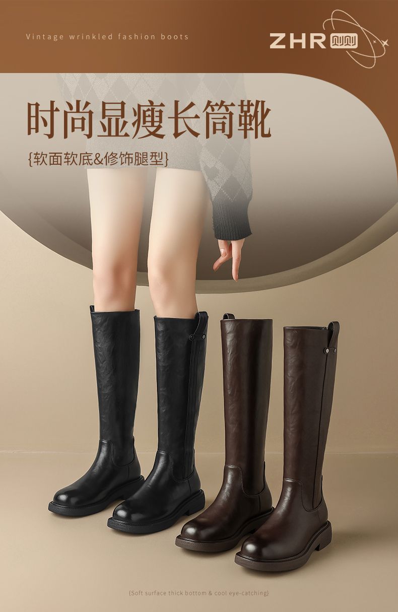 ZHR则则甜酷洋气长筒靴加绒保暖长靴2024秋冬新款百搭厚底骑士靴