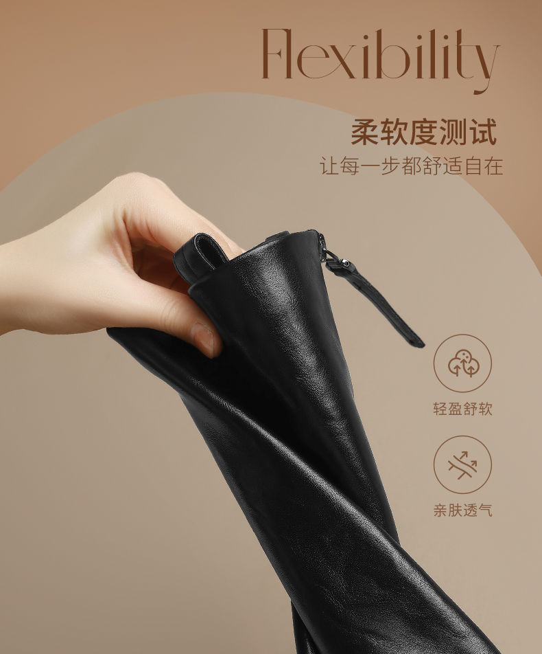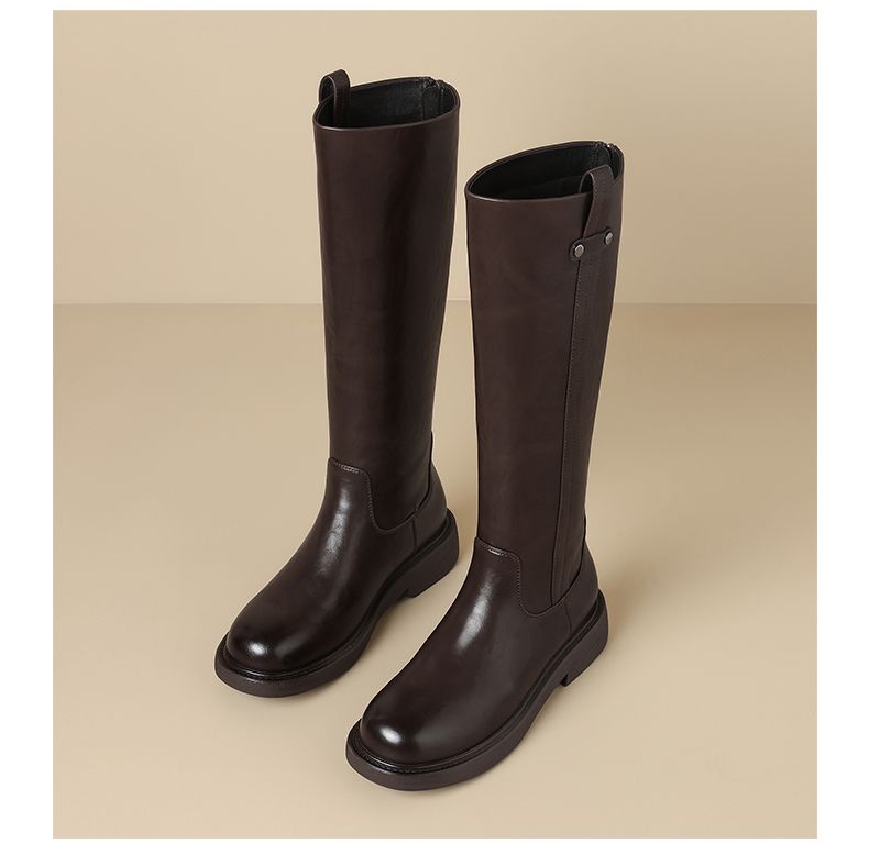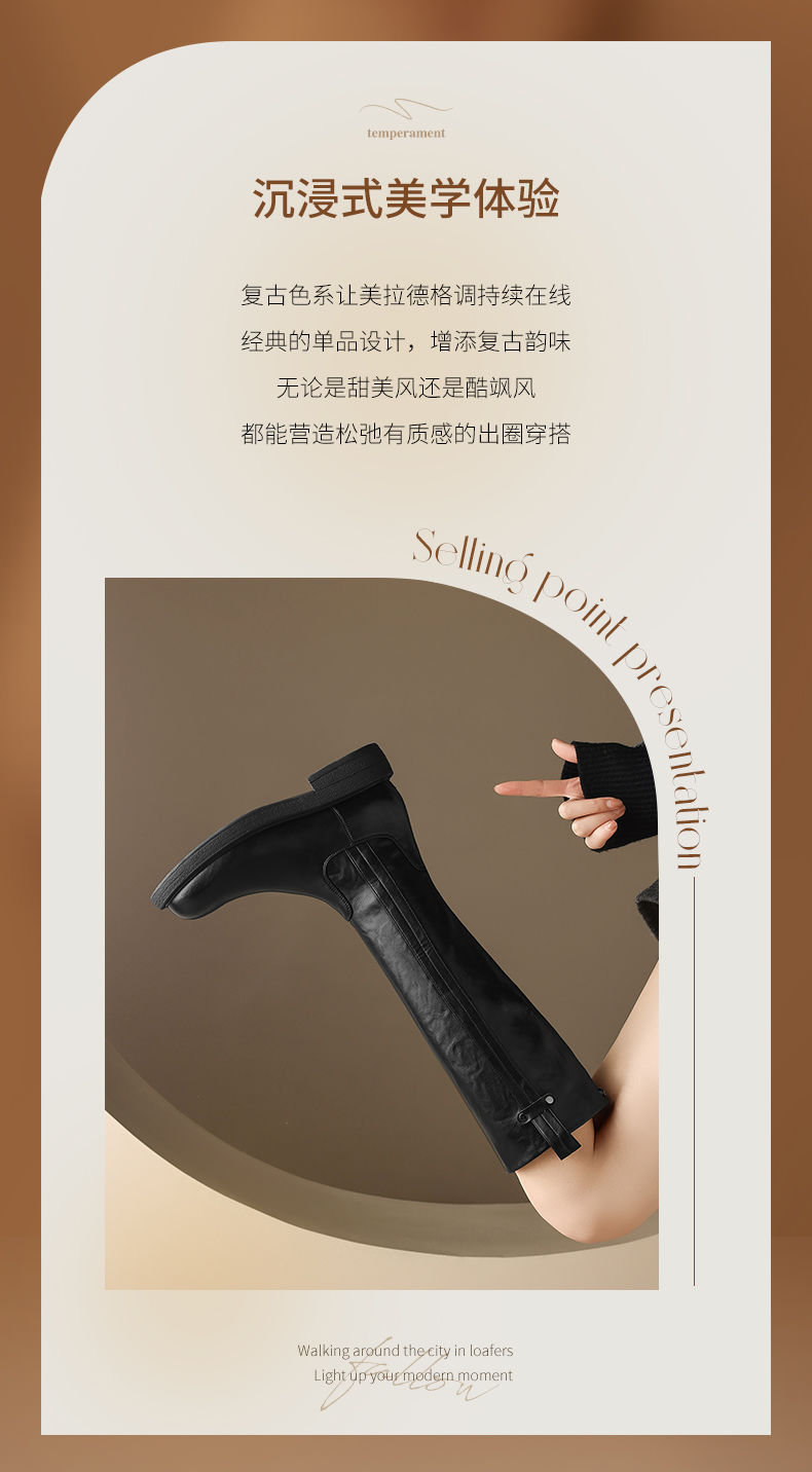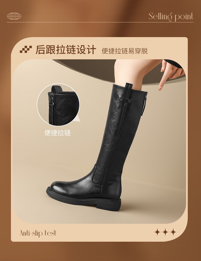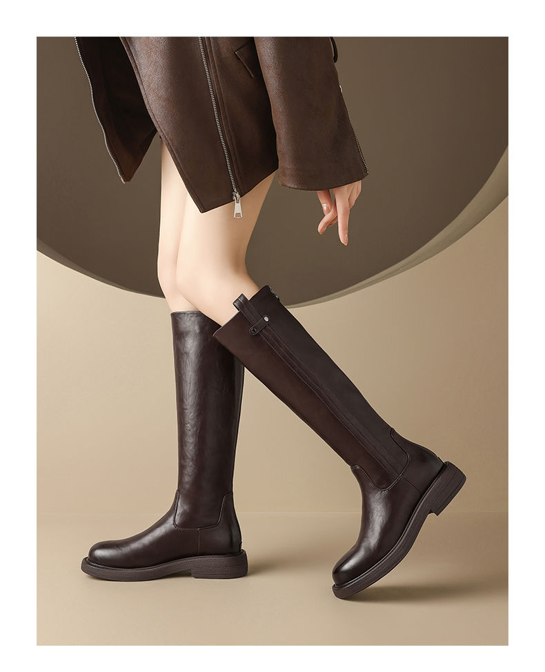 ZHR则则甜酷洋气长筒靴加绒保暖长靴2024秋冬新款百搭厚底骑士靴