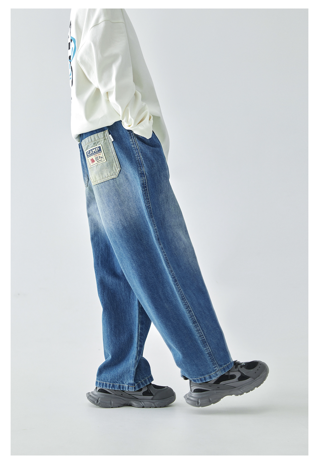 【代发】男款休闲牛仔裤 蓝汽水童装宽松休闲牛仔裤男童松紧腰撞色裤子做旧口袋印标长裤