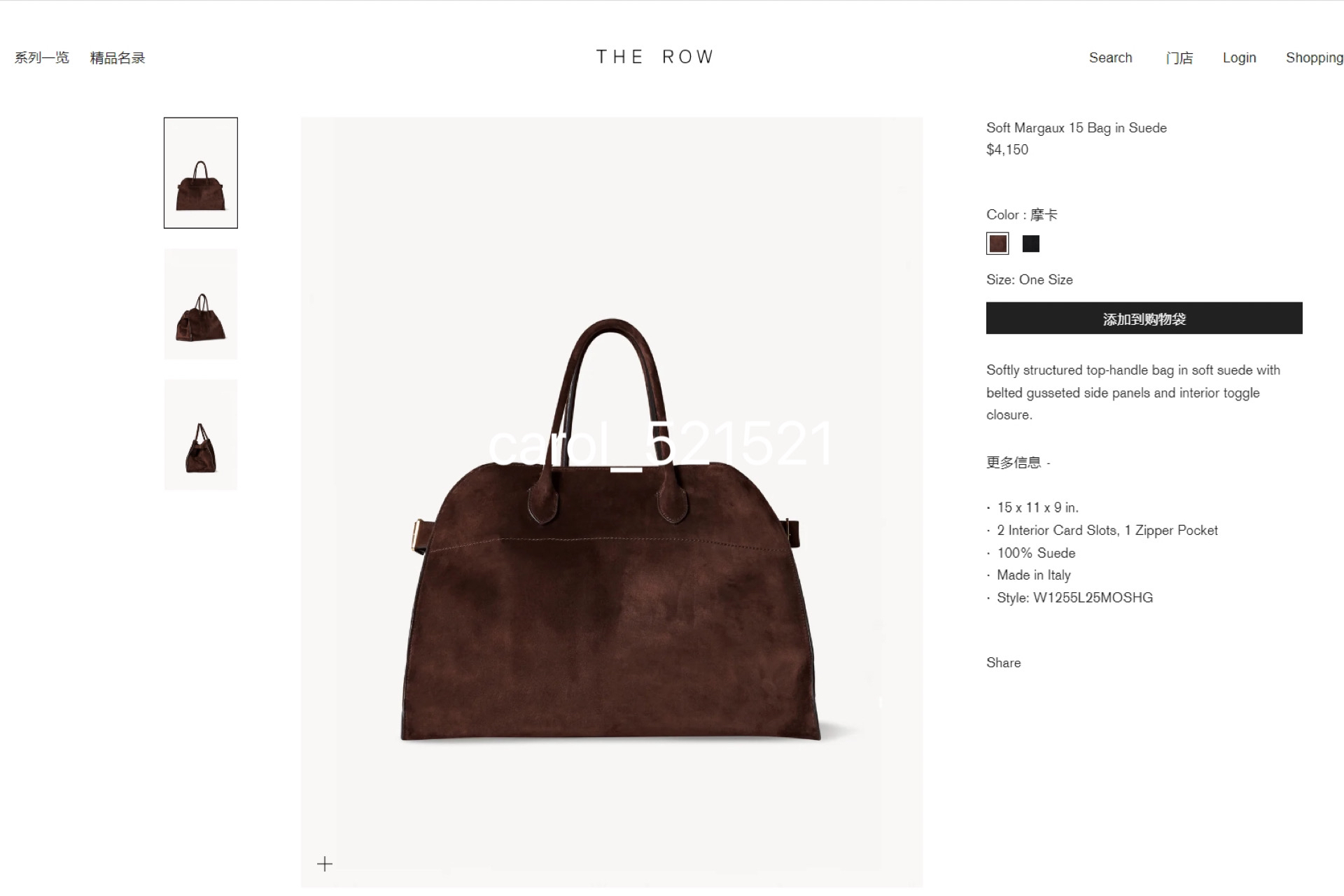 尺寸:Depth23cm x Height26cm x Width40cm目前只有这枚麂皮深摩卡15,客单没有下其他色