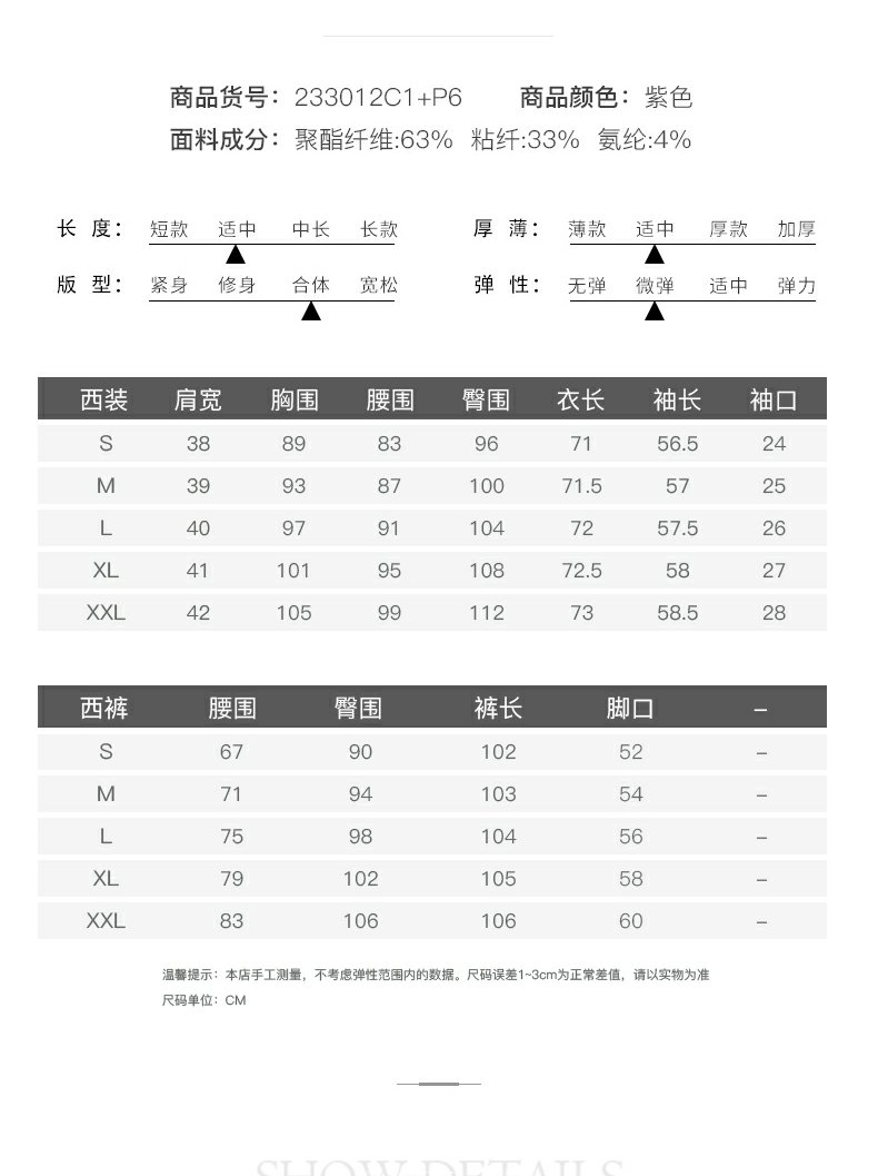 IWY/紫色西装外套女长袖气质高端时尚职业装套装233012C1+P6