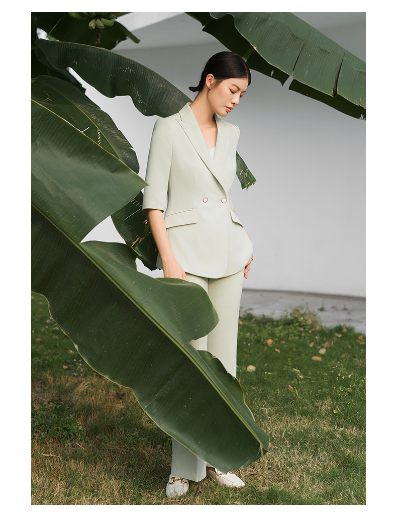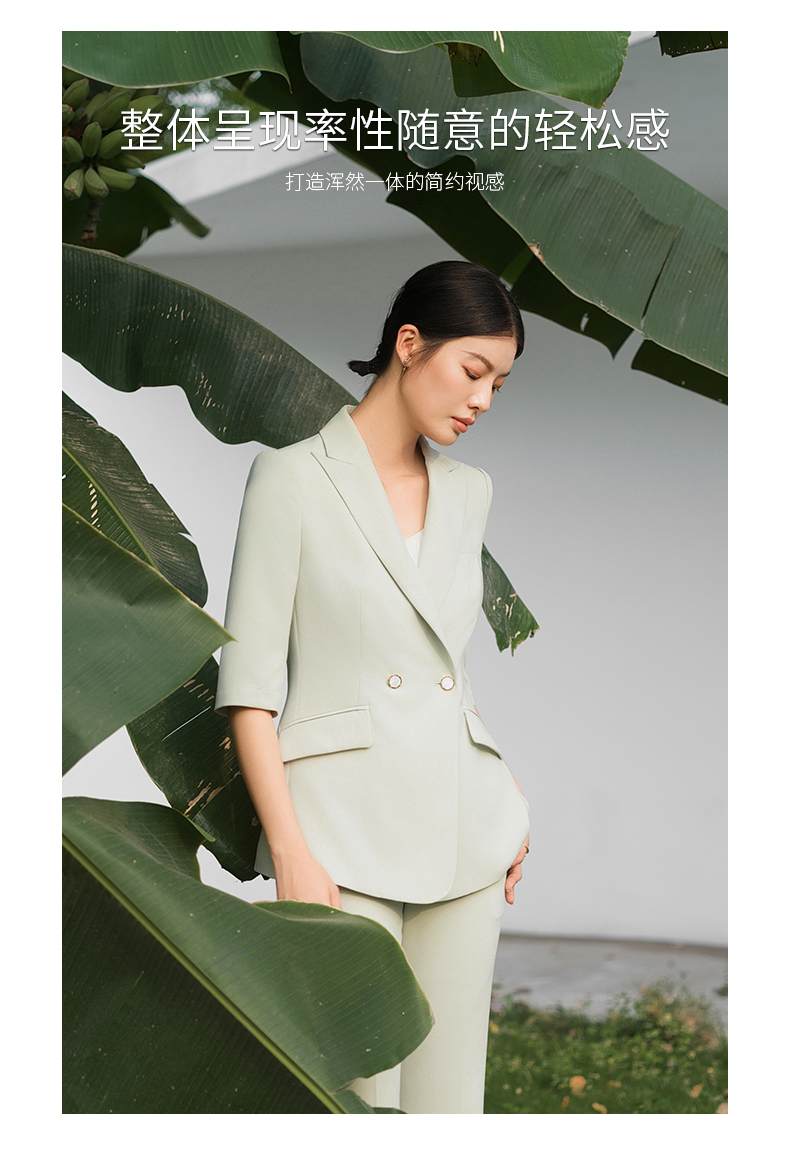 IWY/宽松休闲西装套装绿色2024新款西服七分袖宽松通勤高级女神范C13510+P33510绿色
