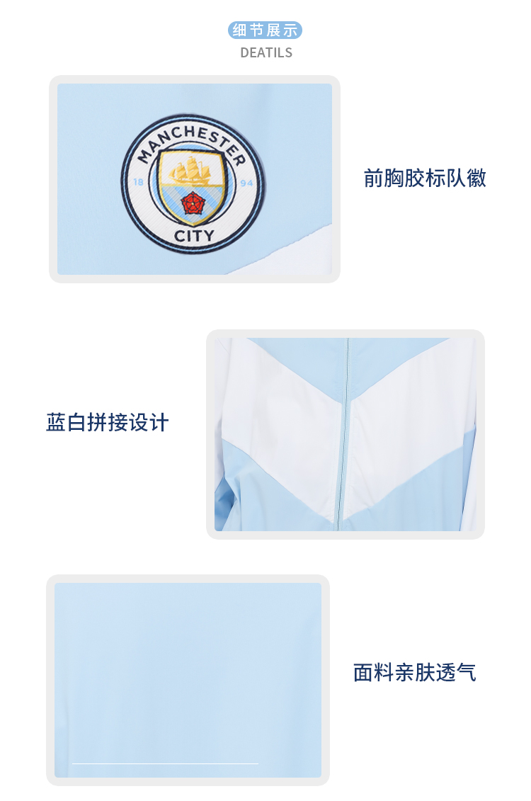 【官方正版】曼城俱乐部 | 休闲外套球迷蓝白拼色印花户外男女同款
