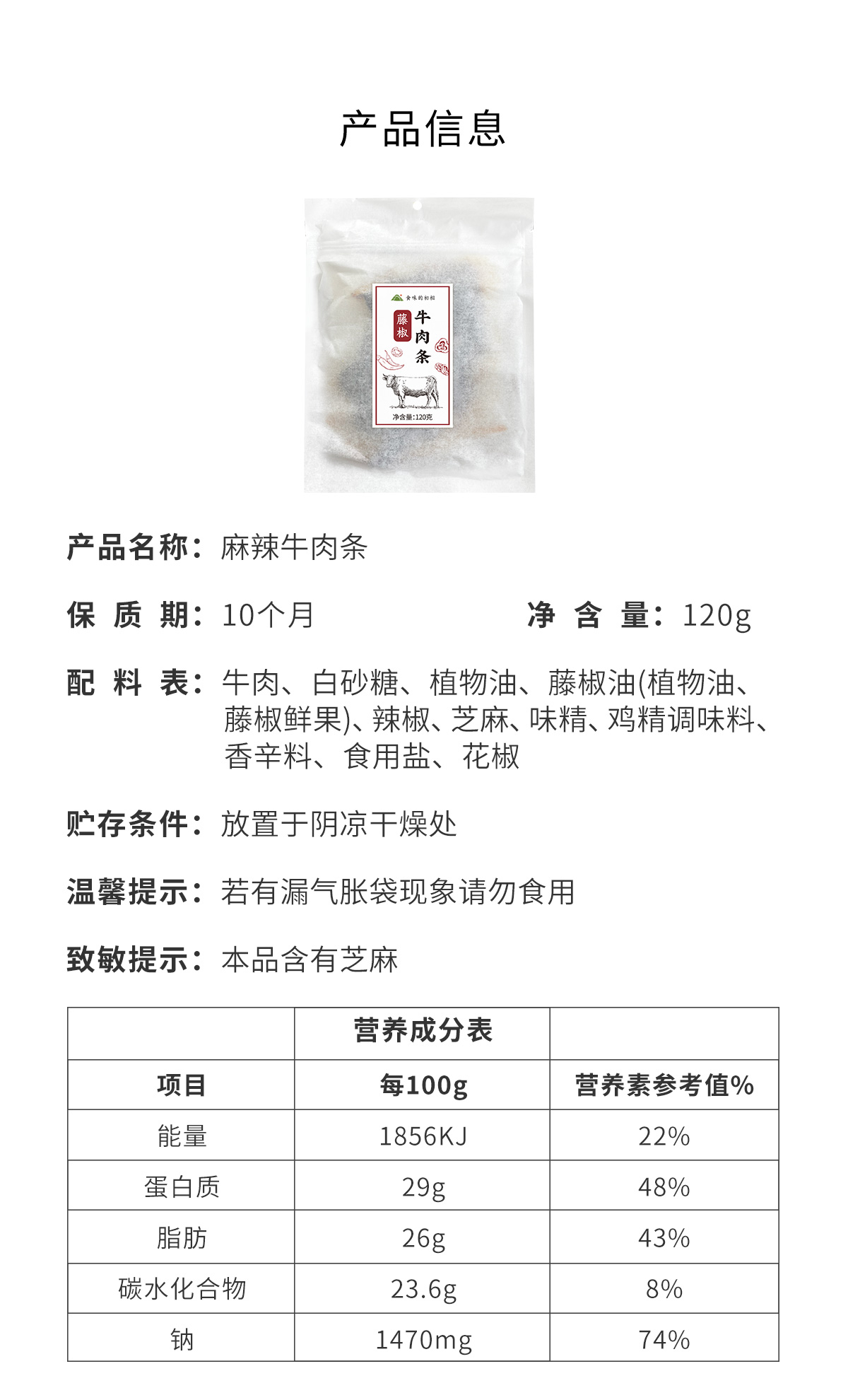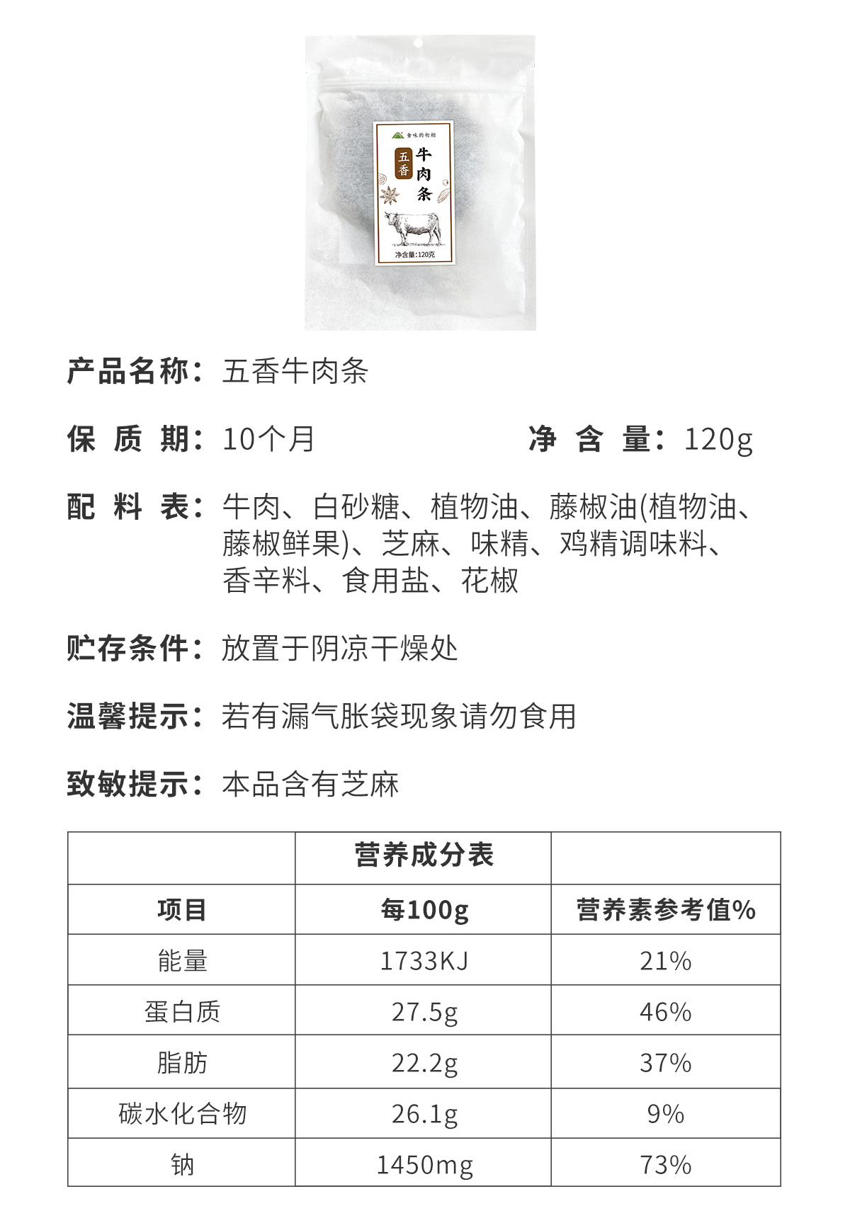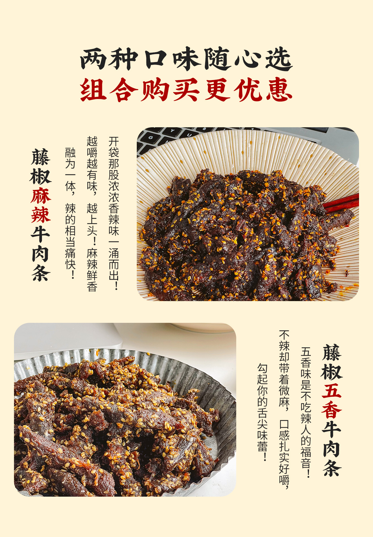 【亲妈精选】超好吃的牛肉干 食味的初相*藤椒牛肉条120g*2袋/4袋 五香麻辣两口味可选