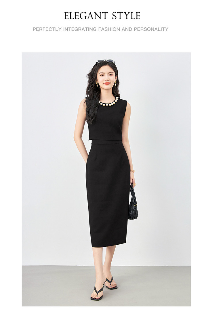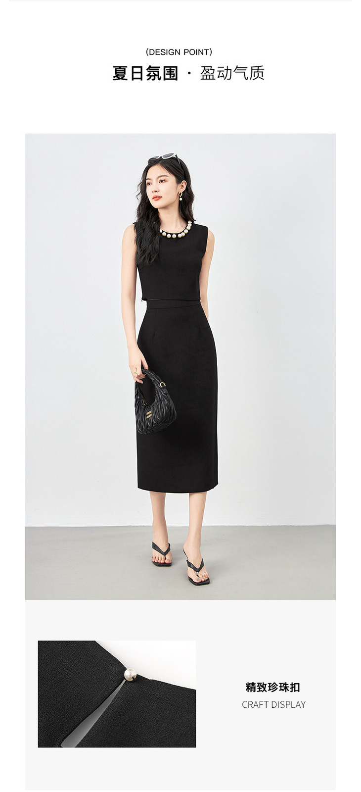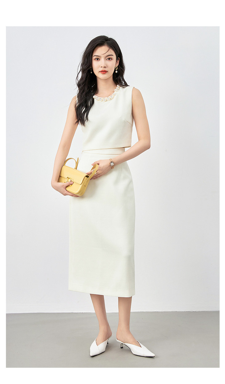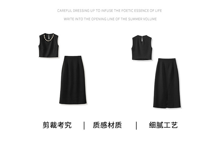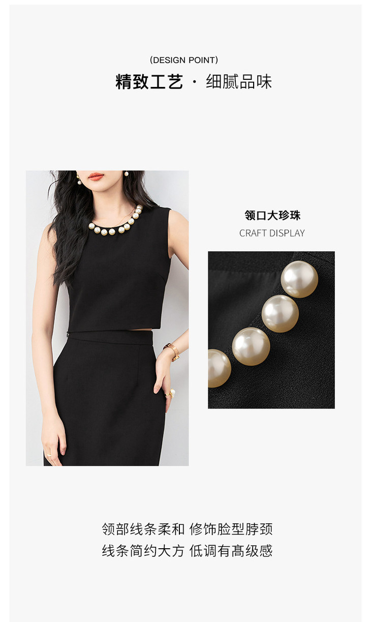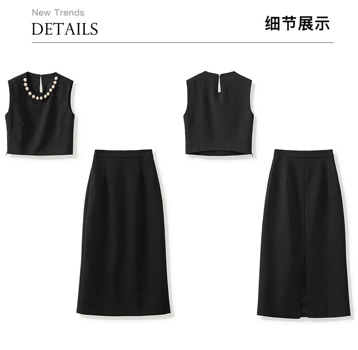 时髦珍珠领无袖背心短上衣+包臀半裙两件套装WLZD2419210