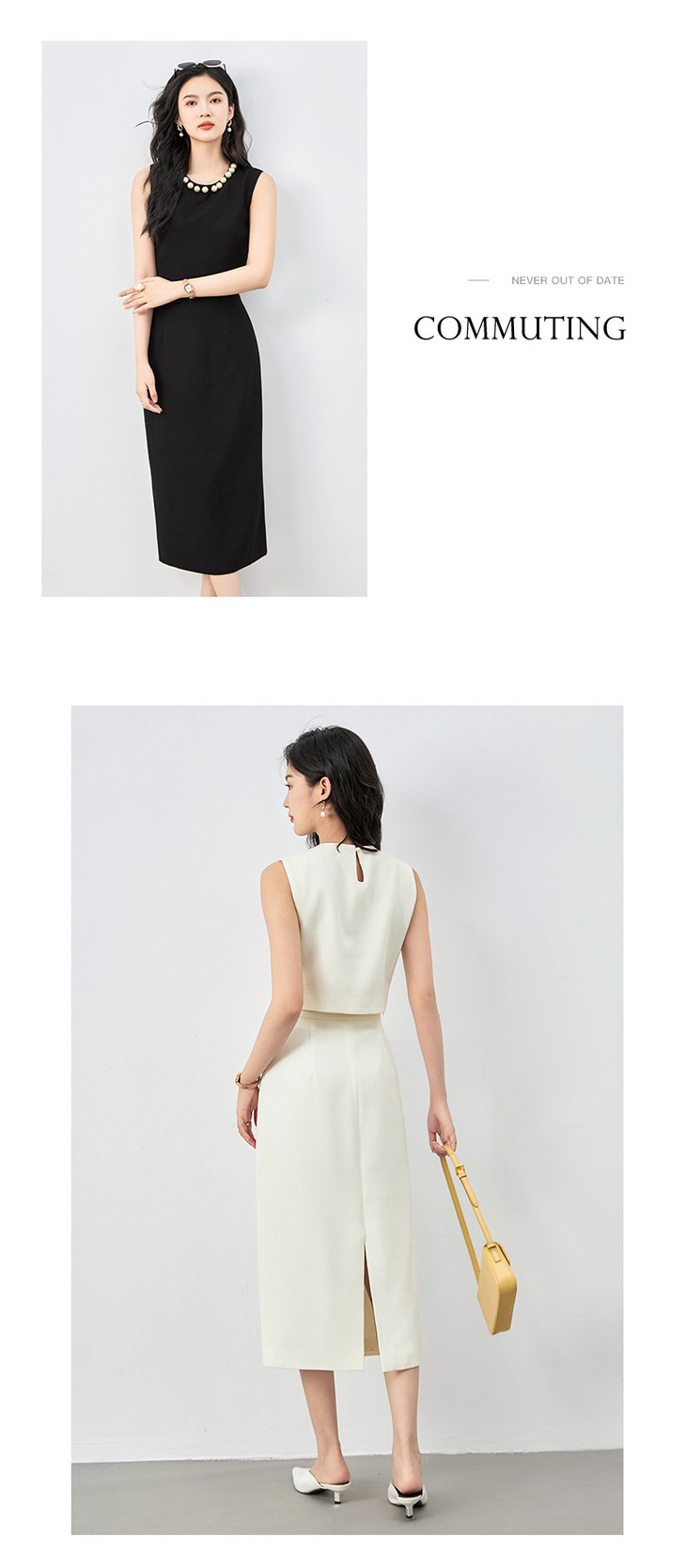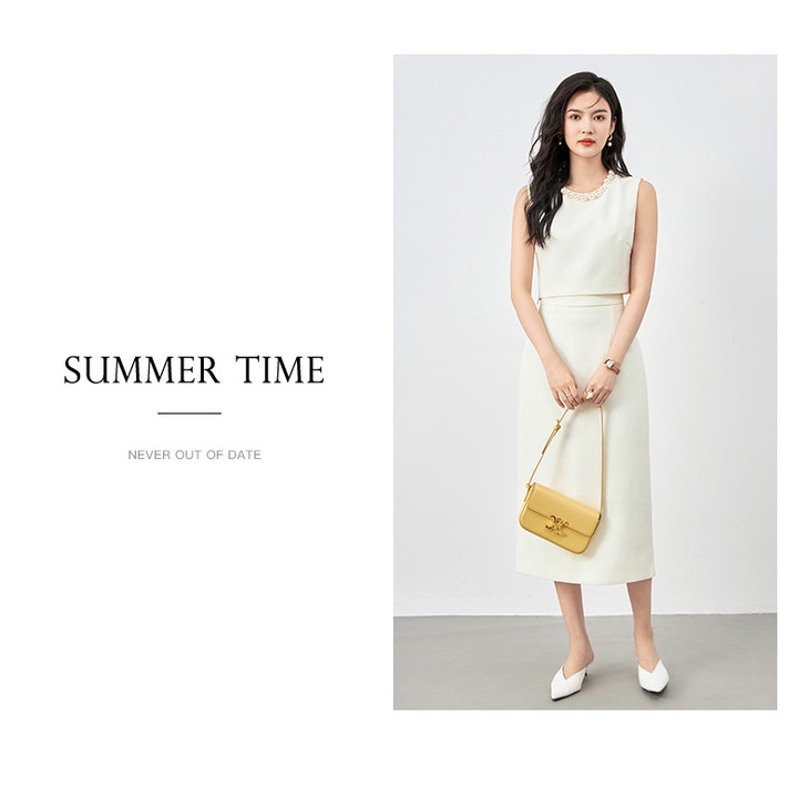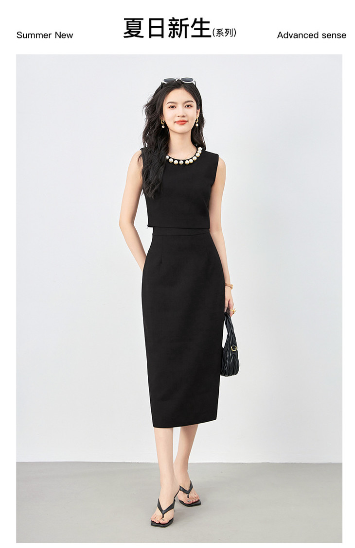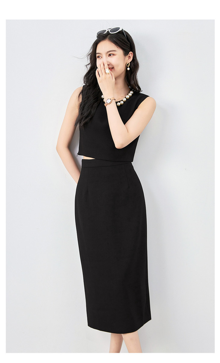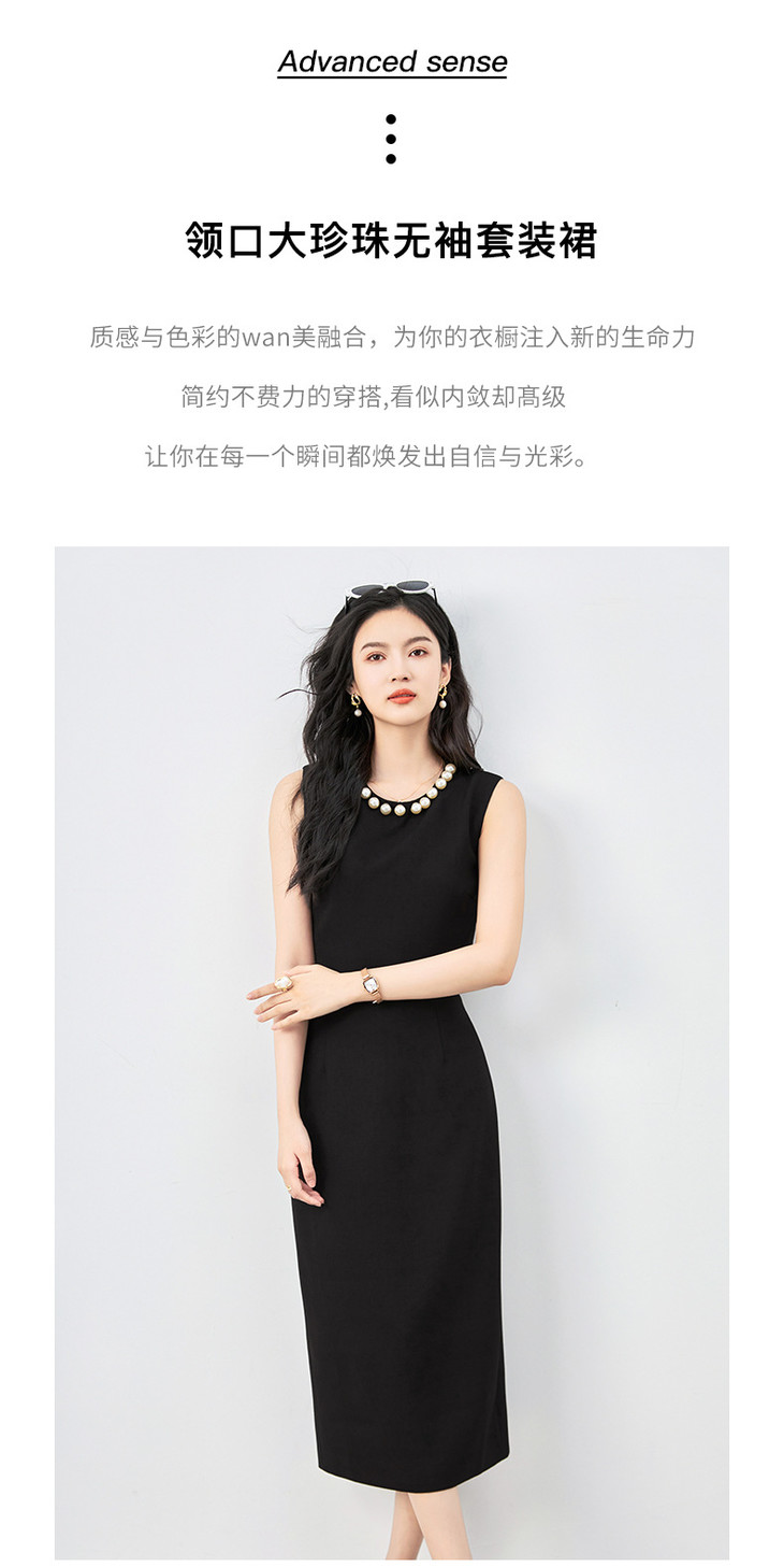 时髦珍珠领无袖背心短上衣+包臀半裙两件套装WLZD2419210