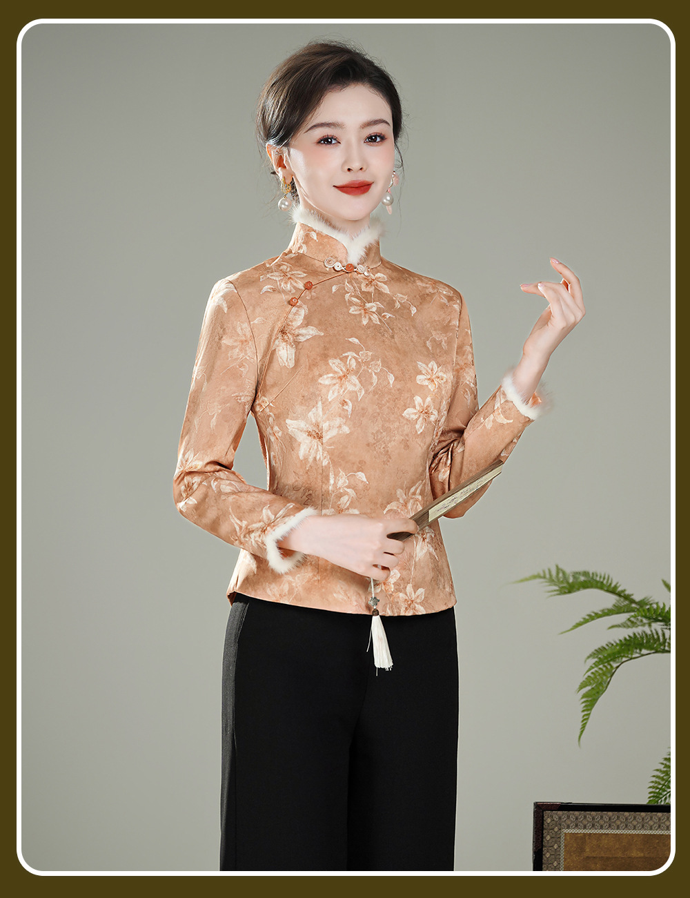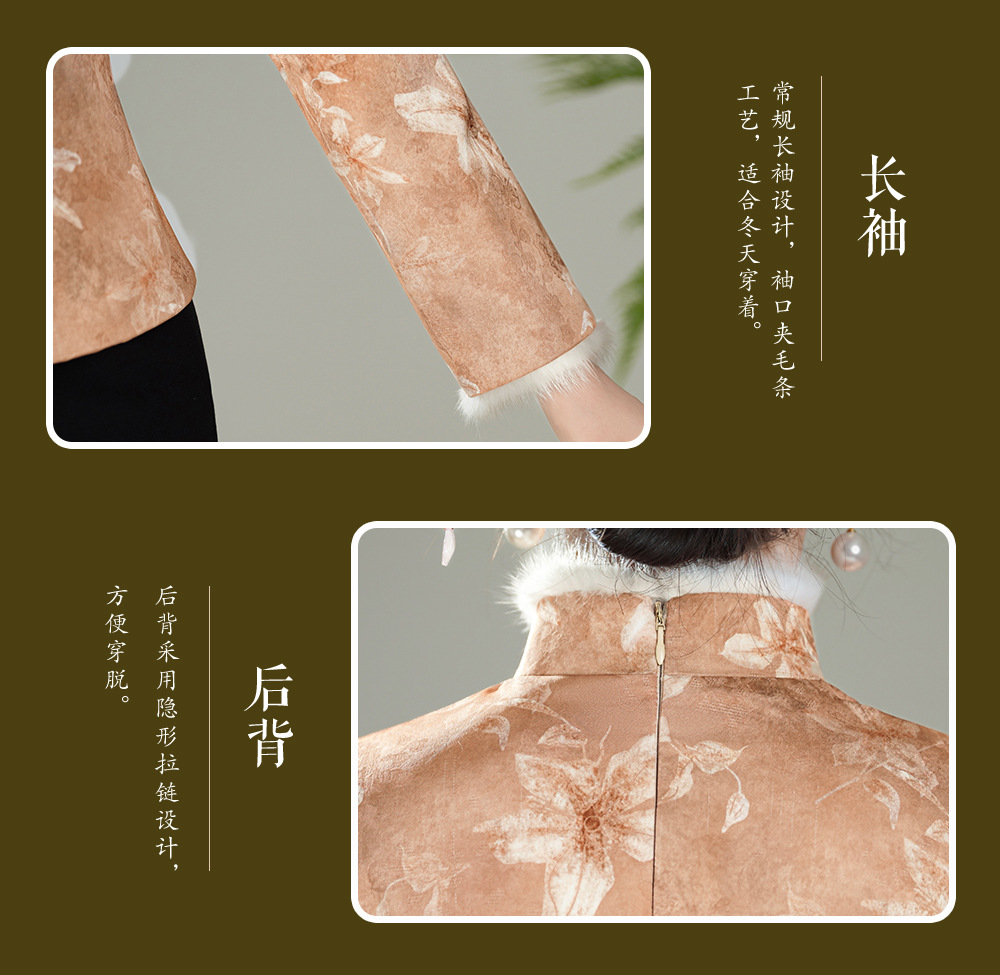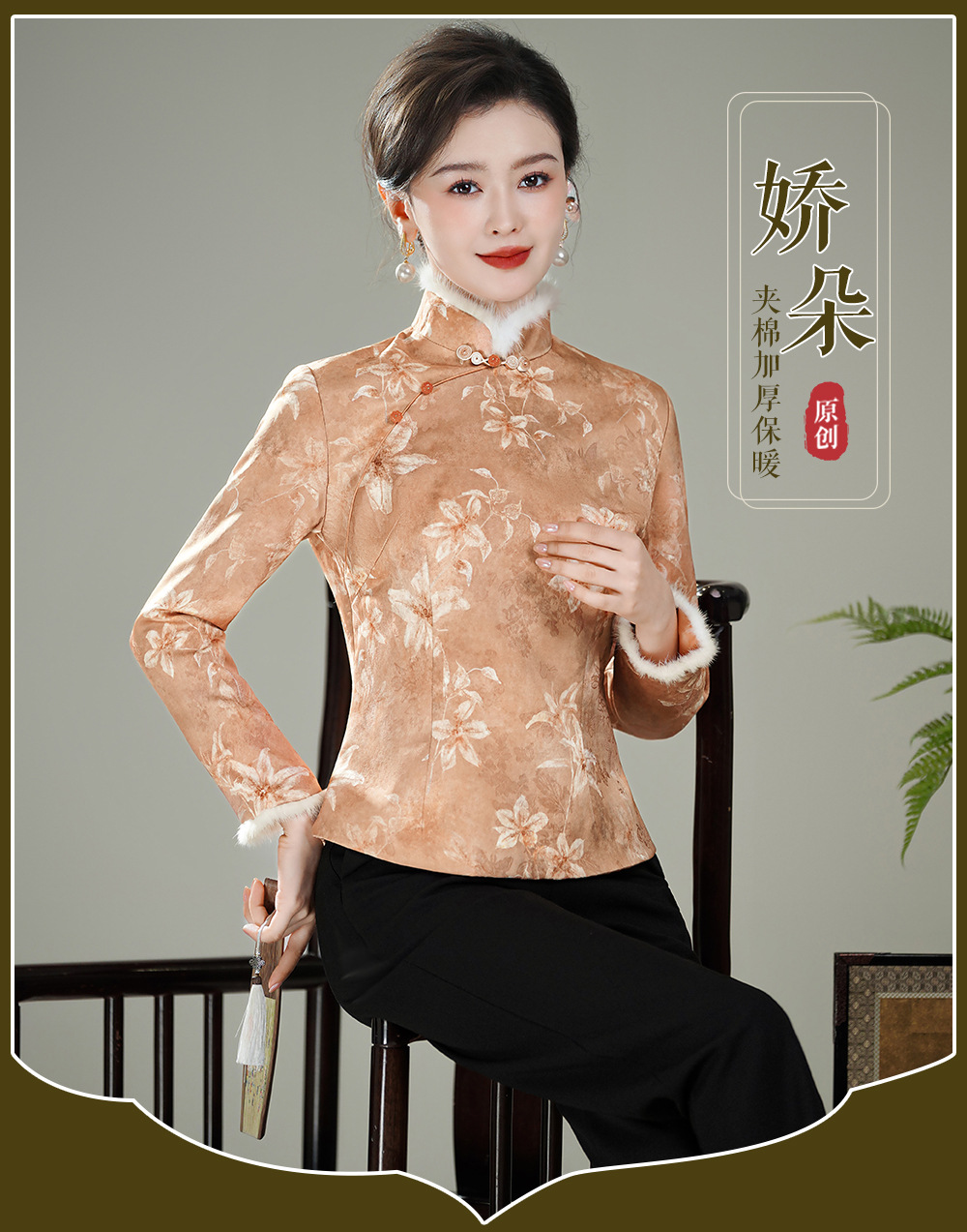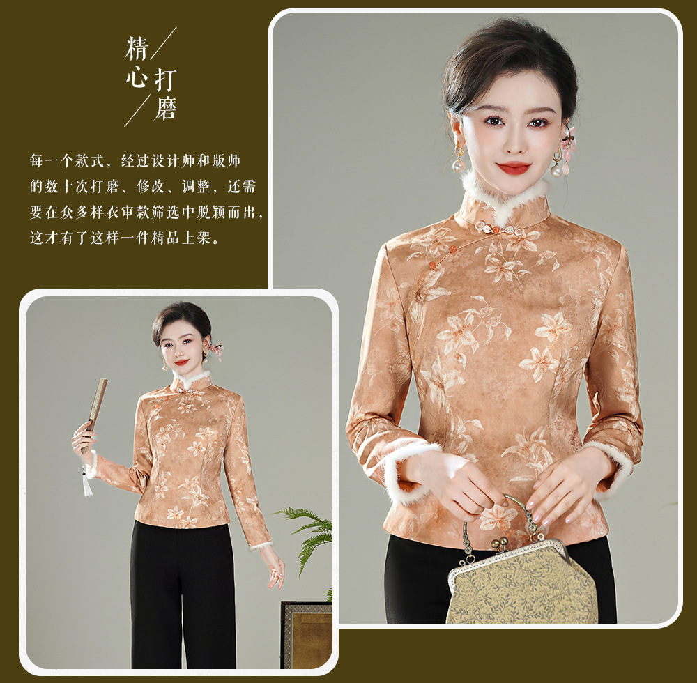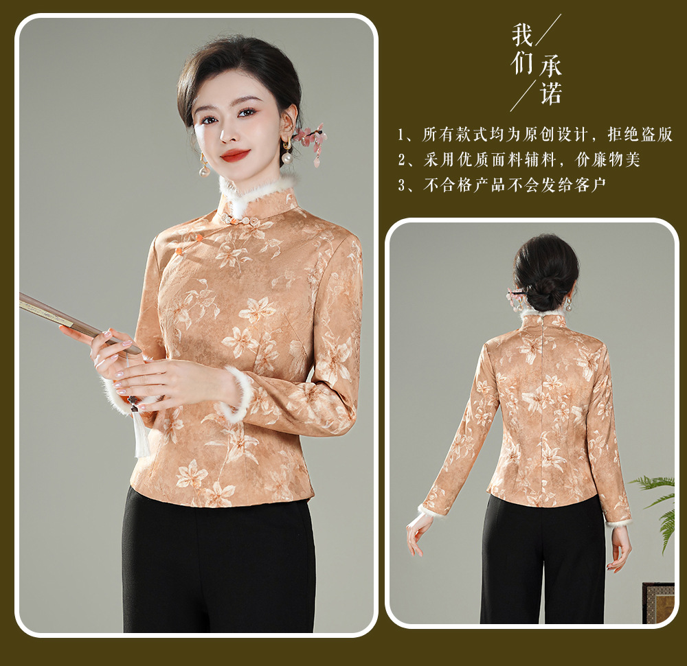 【娇朵】水貂毛领新中式,夹棉加厚保暖唐装旗袍上衣XGT-T25129
