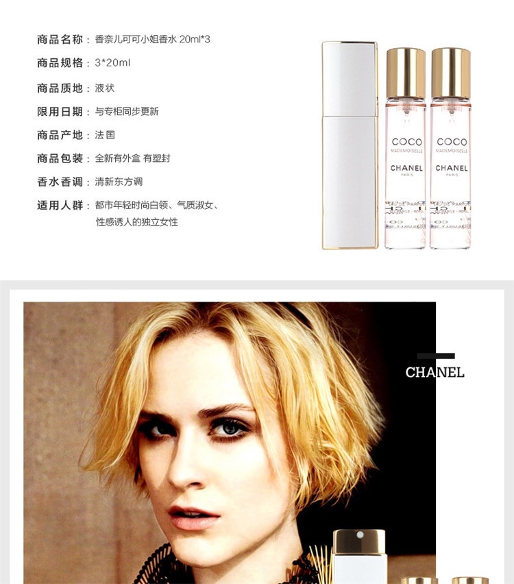 Chanel香奈儿可可小姐女士浓香水20MLx3 便携装「替换装」