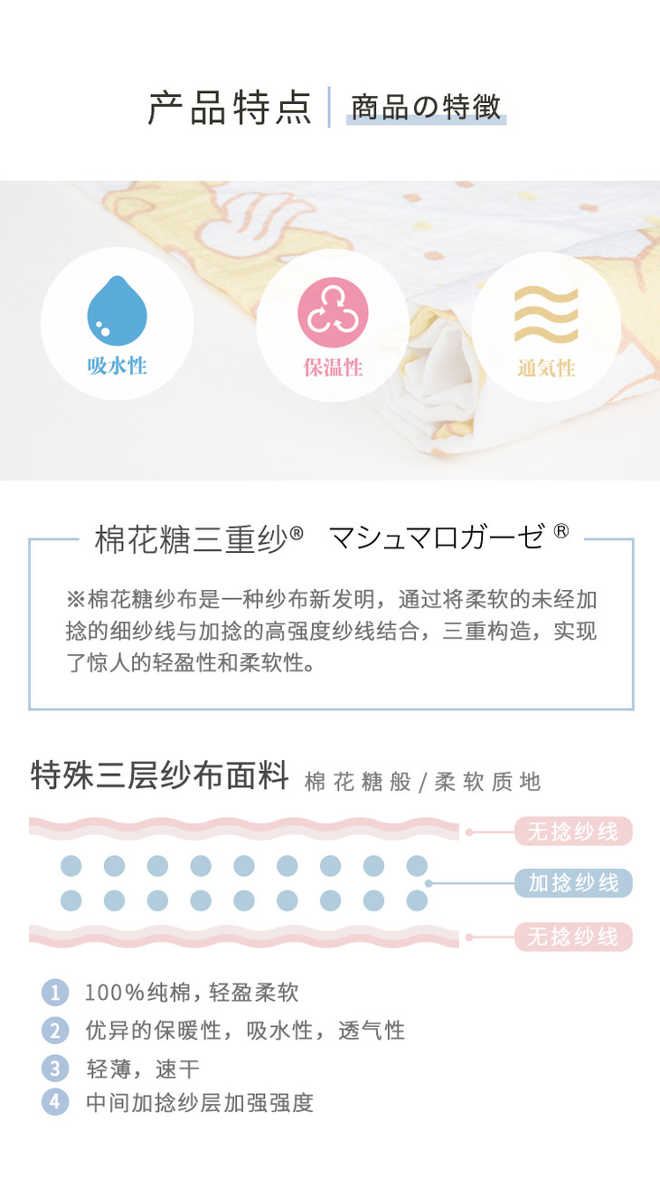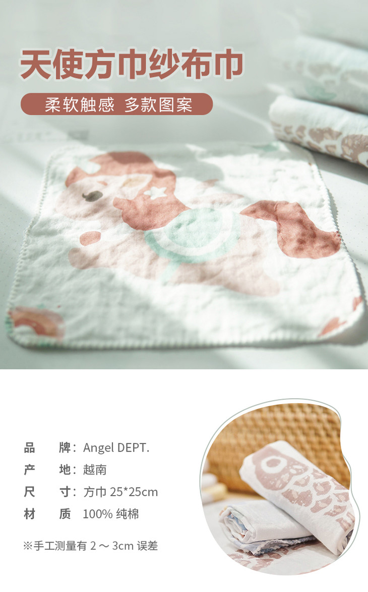 【代发】Angel DEPT.天使三重纱布巾【方巾】云朵手感棉花糖25*25cm