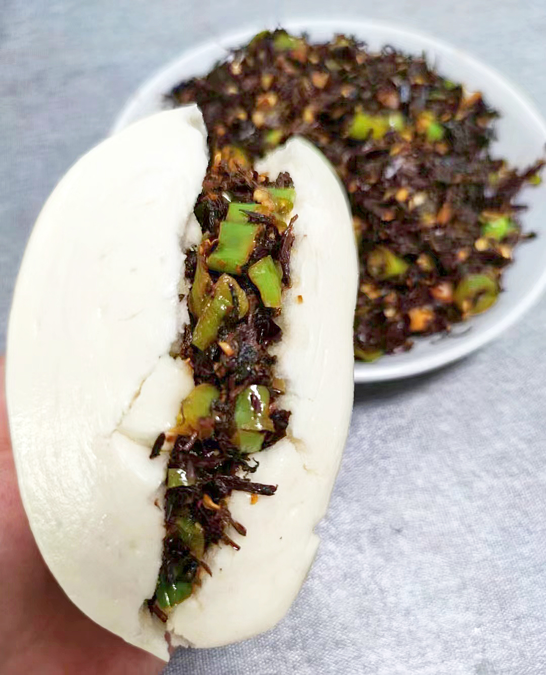 北方的朋友也可以试试用梅干菜炒制臊子,夹在馒头里吃,太香了!