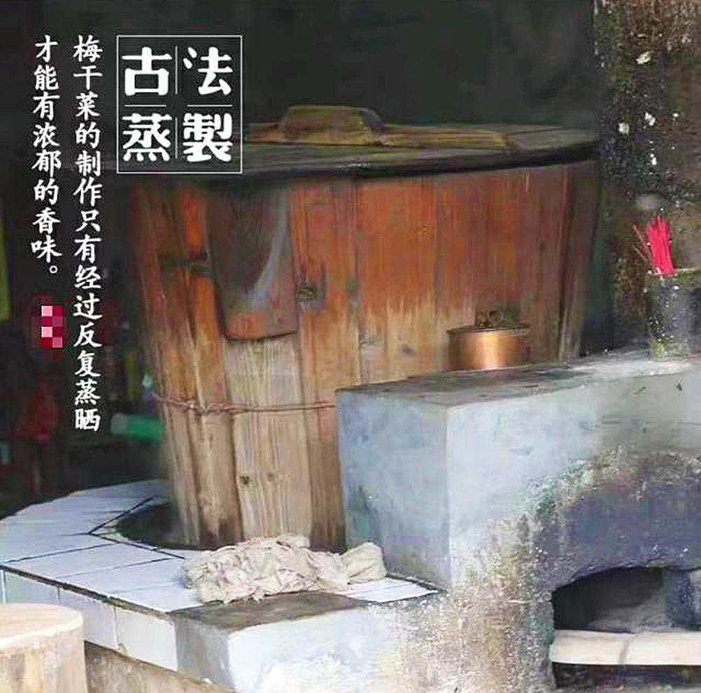 传统工艺三蒸三晒,反复蒸与晒,加上时间的发酵,才有梅菜香。