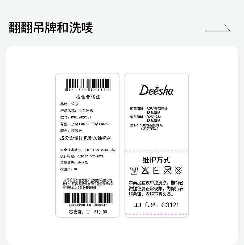 笛莎2024儿童渐变时尚泳衣
