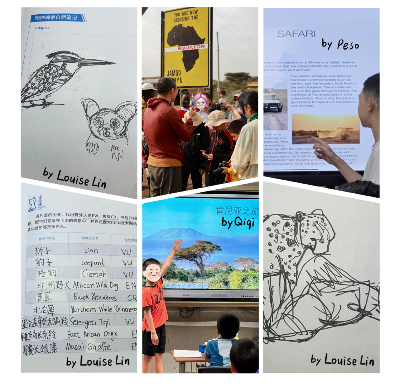 小朋友们用各自擅长的方式记录下了这次难忘的东非之旅,或拿起画笔,制作出特别的自然笔记,或拿起相机,拍摄到人与自然的“碰撞”,或在新的学期里将自己亲眼所见的精彩动物故事分享给老师同学~
