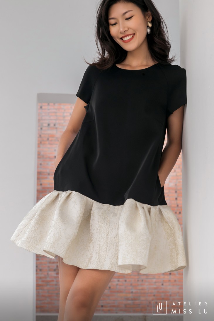 AtelierMissLu / Nicole-黑拼白蓬蓬下摆连身裙