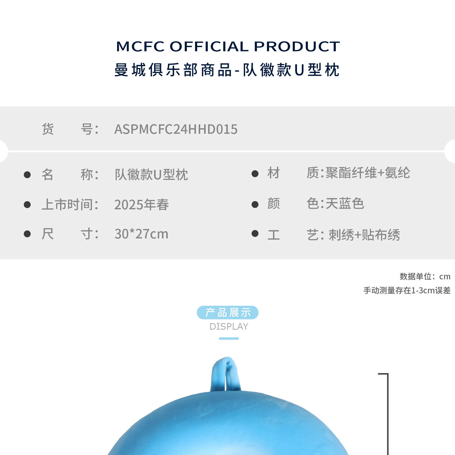 【官方正版】曼城俱乐部 | 队徽款天蓝U型枕旅行颈枕长途靠枕