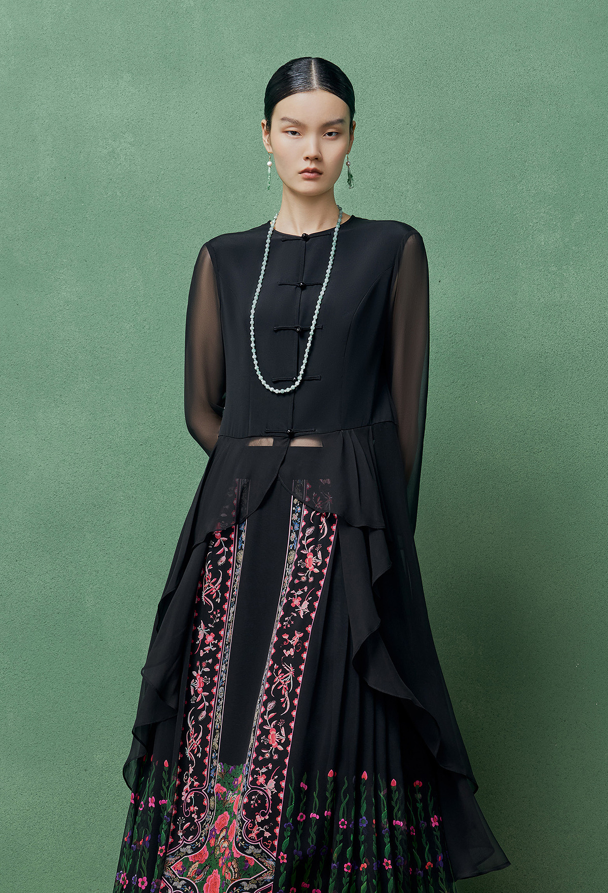 【林栖设计小店】桑蚕丝混纺衬衣拼真丝飞片新中式修身2025春夏新品上衣女1952027