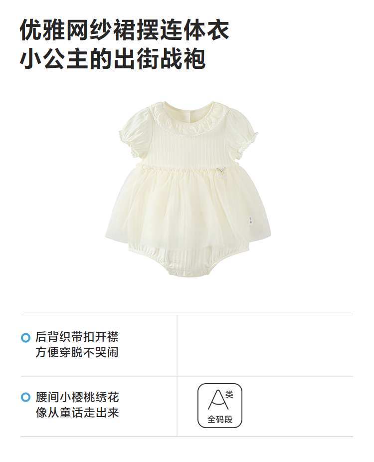 迷你巴拉巴拉婴儿连体衣柔软亲肤甜美可爱网纱宝宝裙子26夏新品