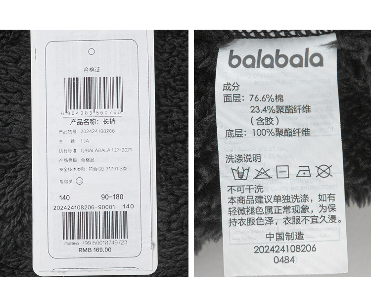 巴拉巴拉童装儿童裤子男童长裤女童秋冬款加绒潮