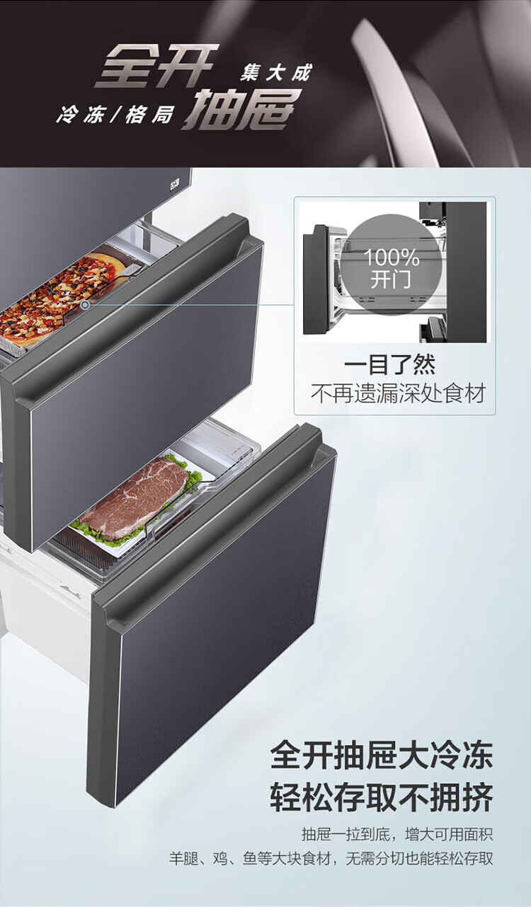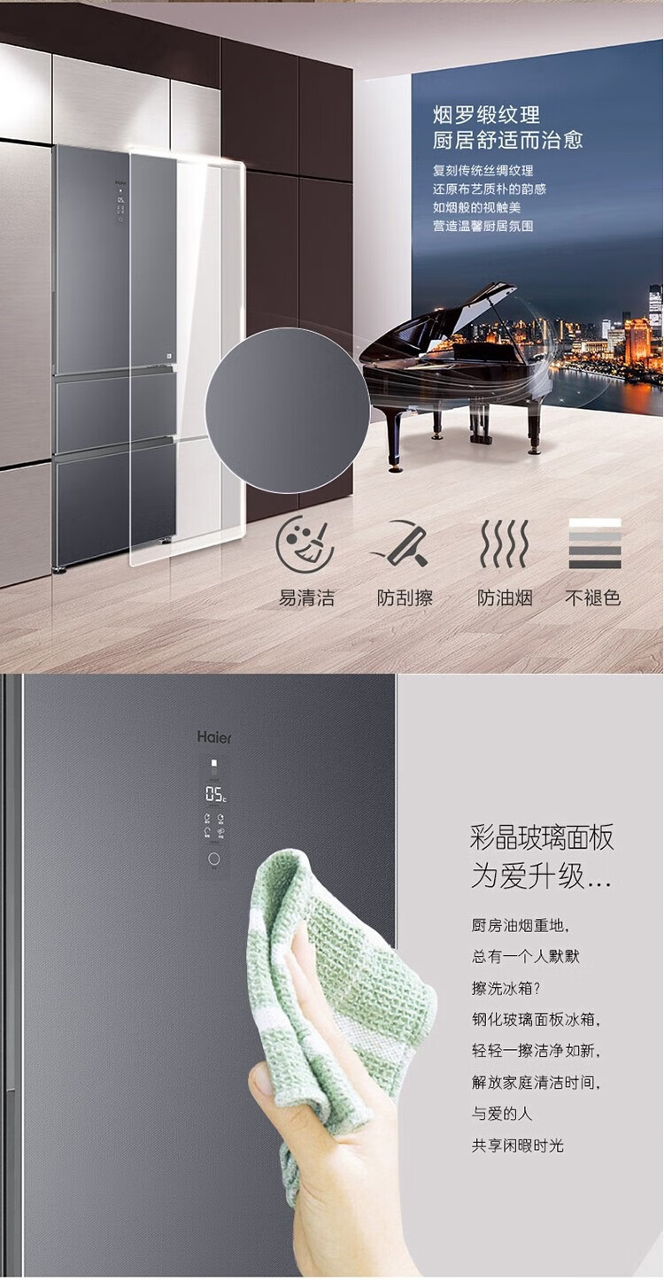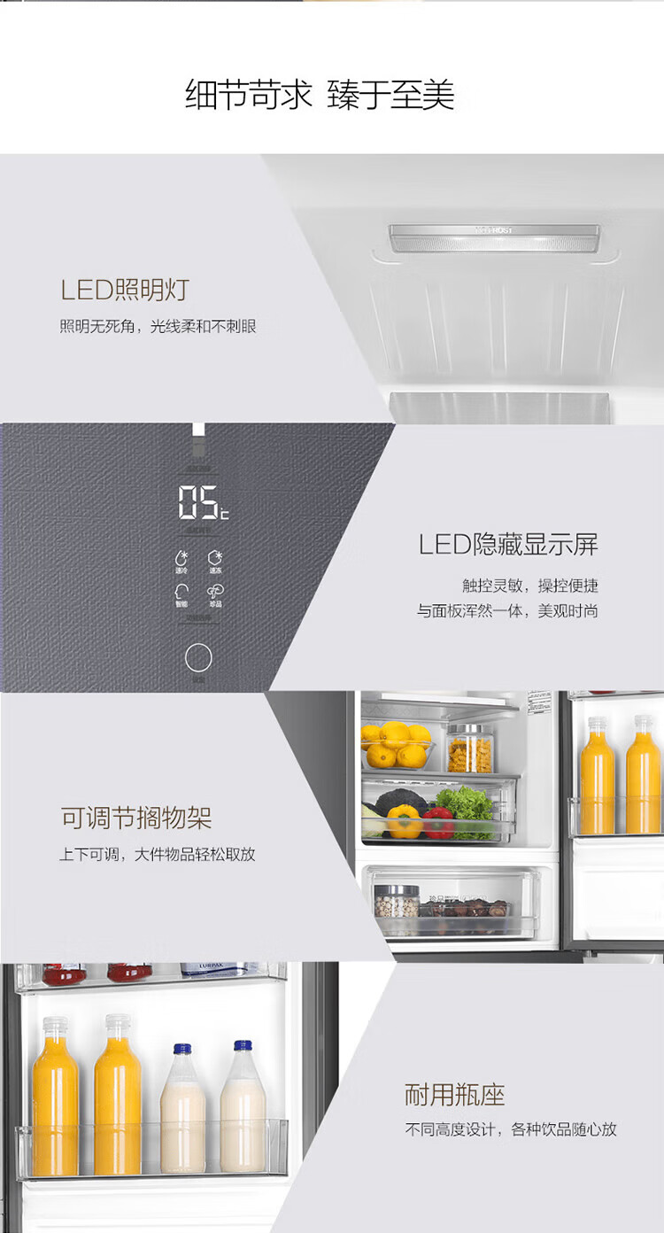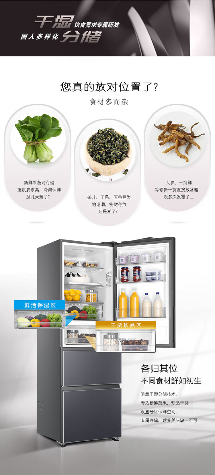 海尔(Haier)【一级能效旗舰新品】275升三开门抽屉式家用小户型大容量双变频风冷无霜节能静音电冰箱 275wlhi375n1+星蕴银彩晶面板 高性价比
