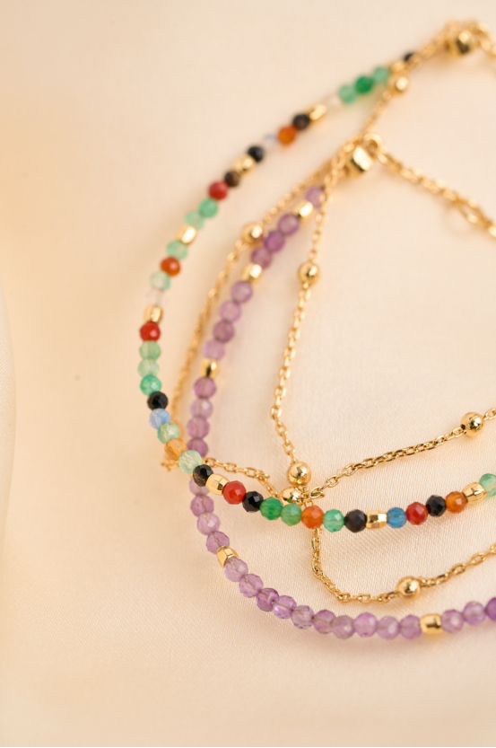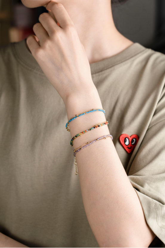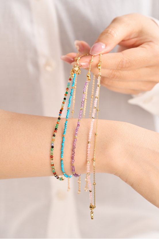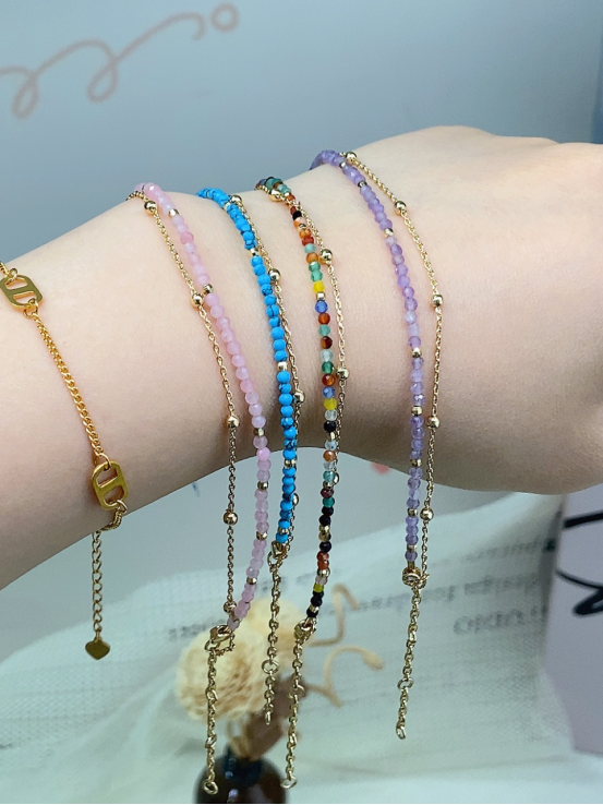 【颜色】紫水晶手链,粉水晶手链,绿松石手链,多宝石水晶手链