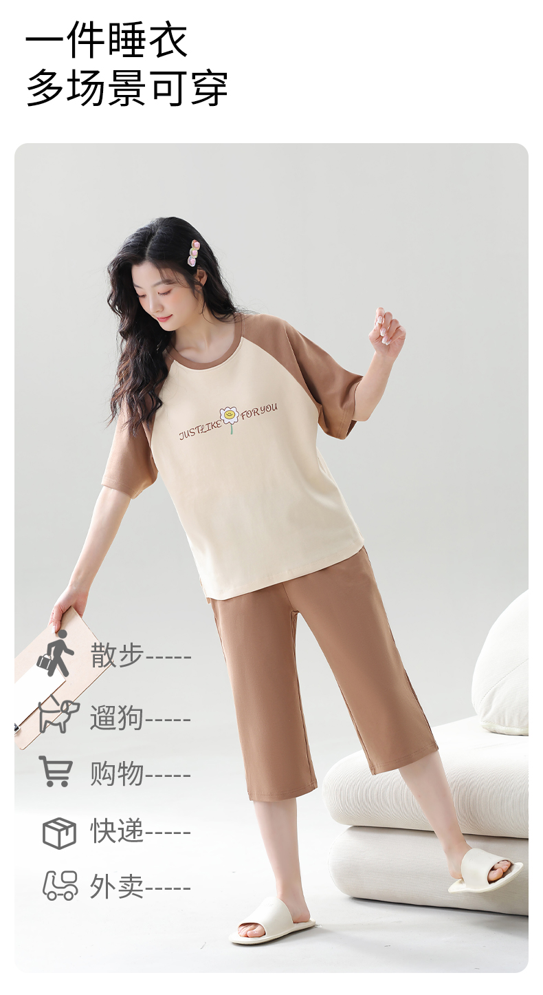 康妮雅女式短袖中裤套头套装